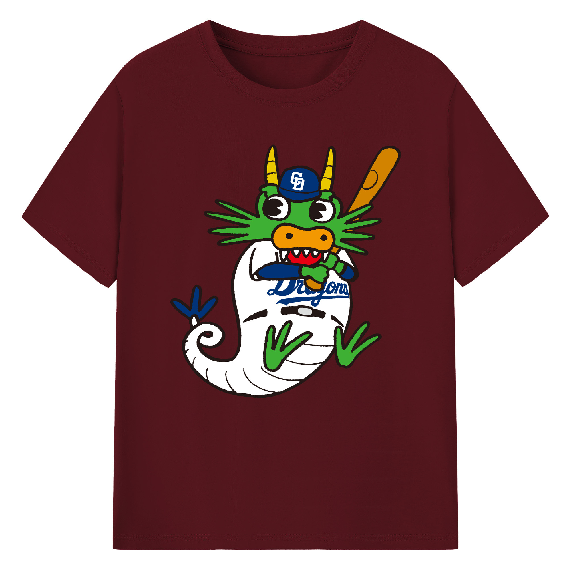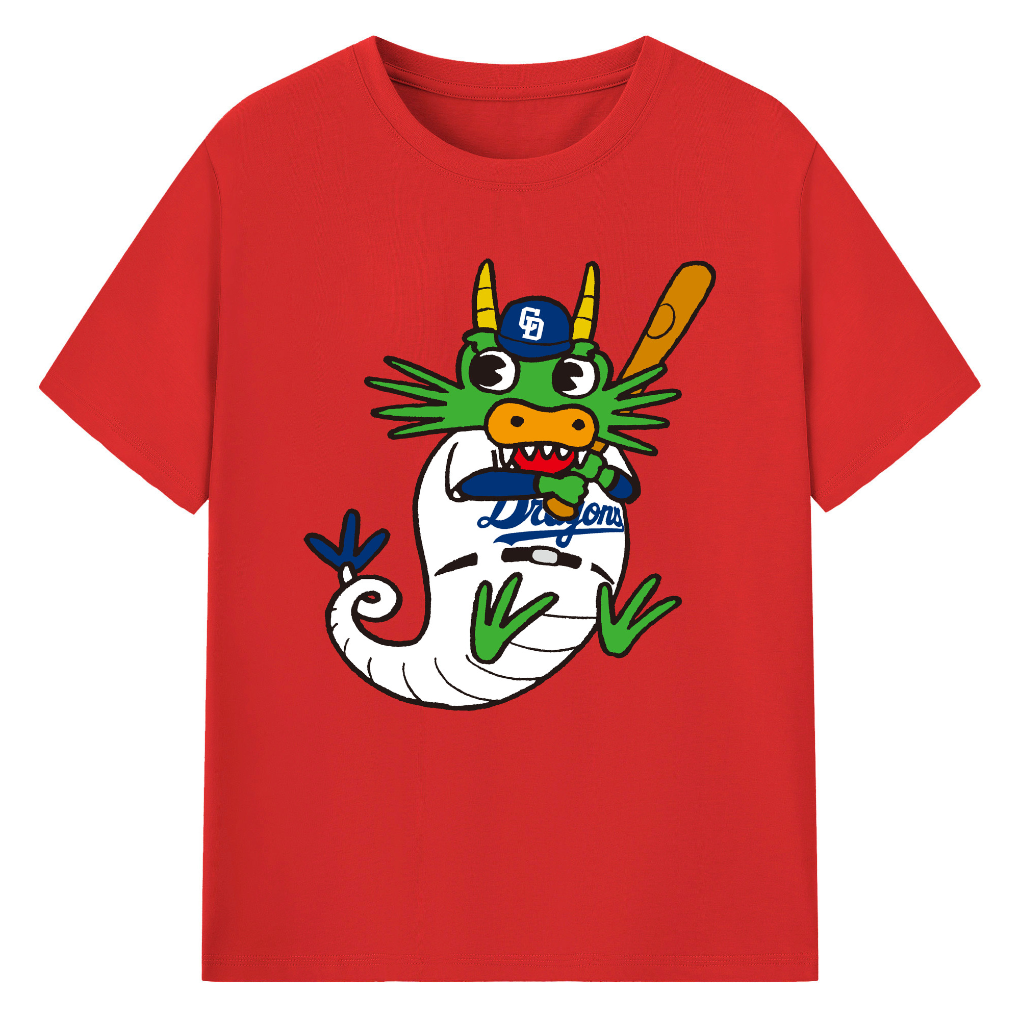 CHUNICHI DRAGONS MASCOT DOALA APPLICATION BEST STAND Logo - 綿100% 半袖Tシャツ ・ フロントプリント ・ 快適 通気性 ・ 日常使い 散歩 スポーツ用