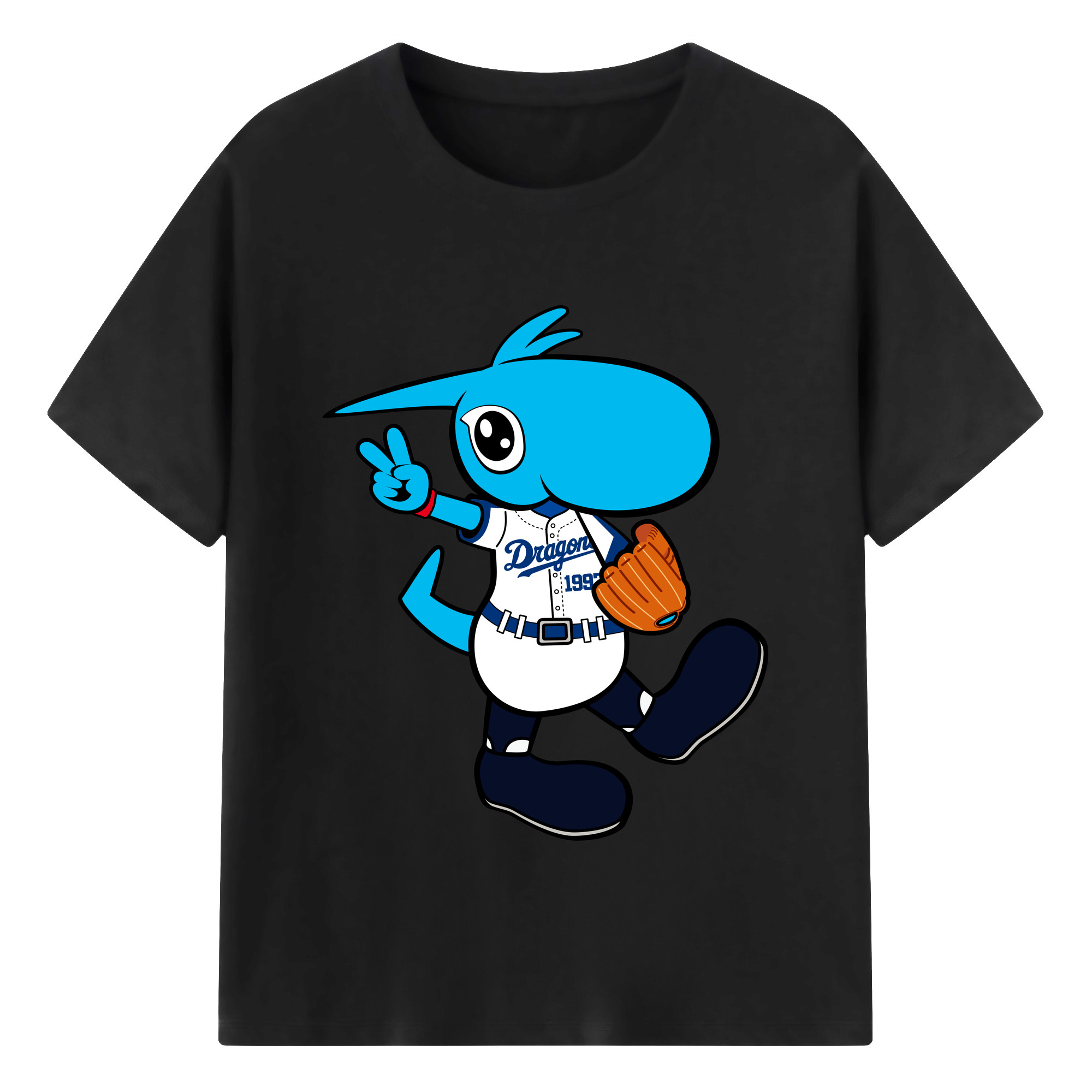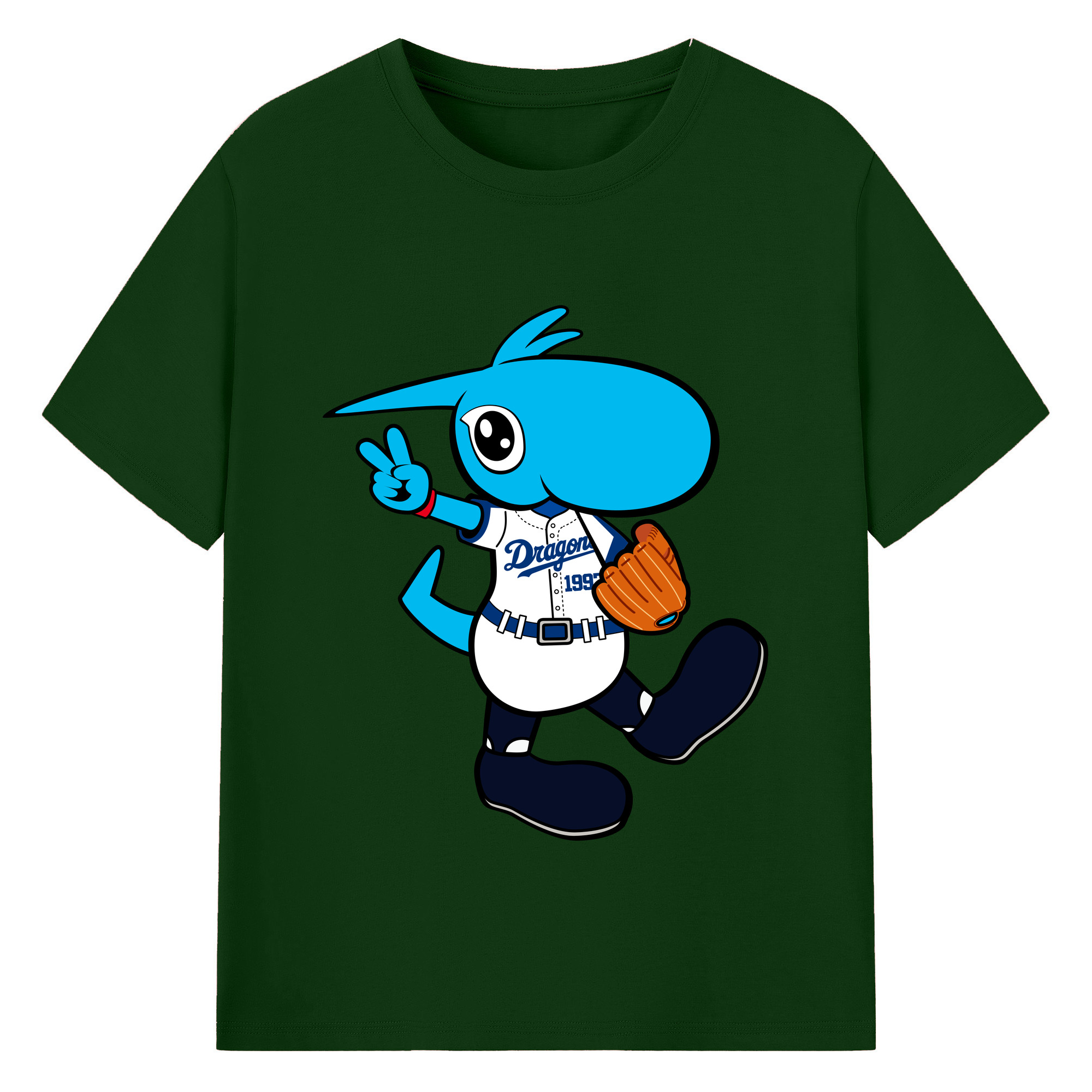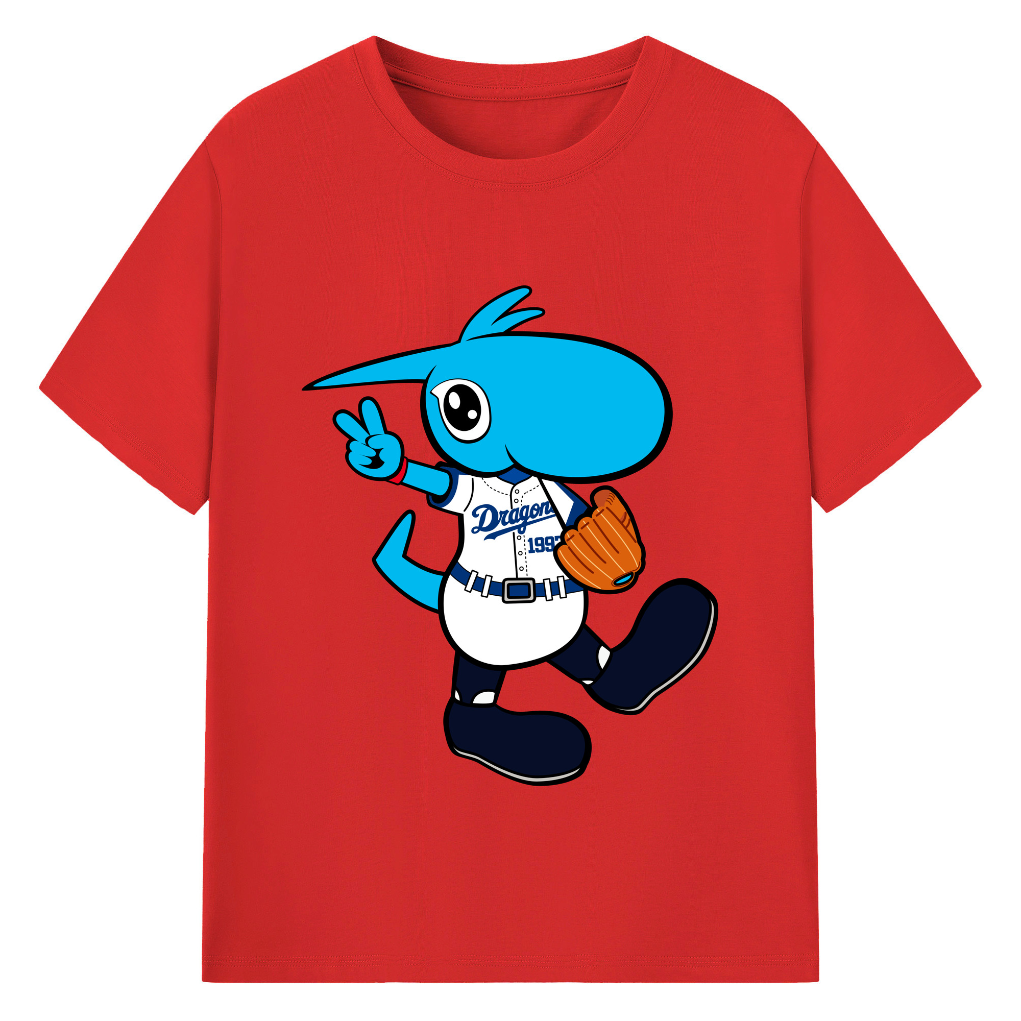 CHUNICHI DRAGONS MASCOT DOALA APPLICATION RUNNING Logo - 綿100% 半袖Tシャツ ・ フロントプリント ・ 快適 通気性 ・ 日常使い 散歩 スポーツ用