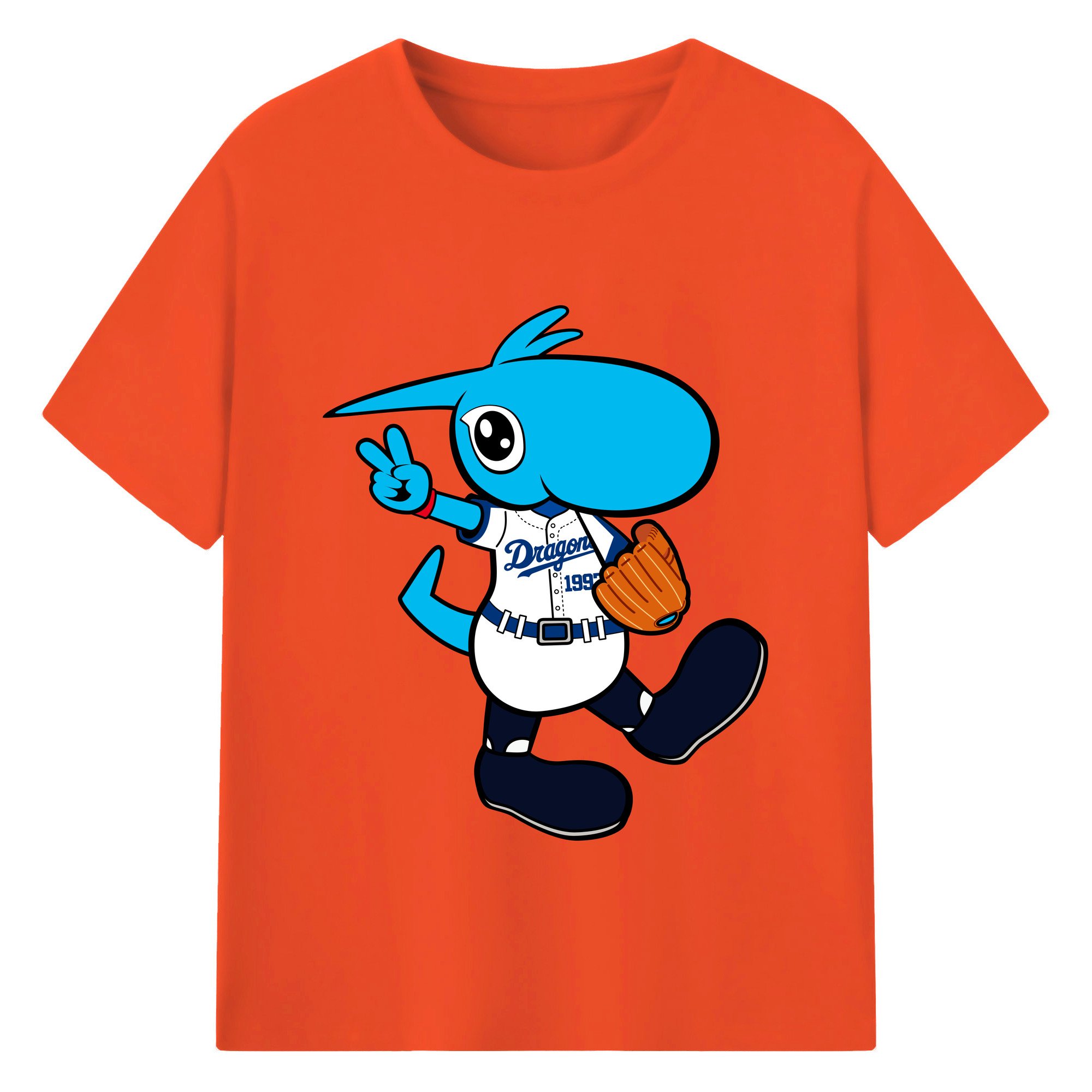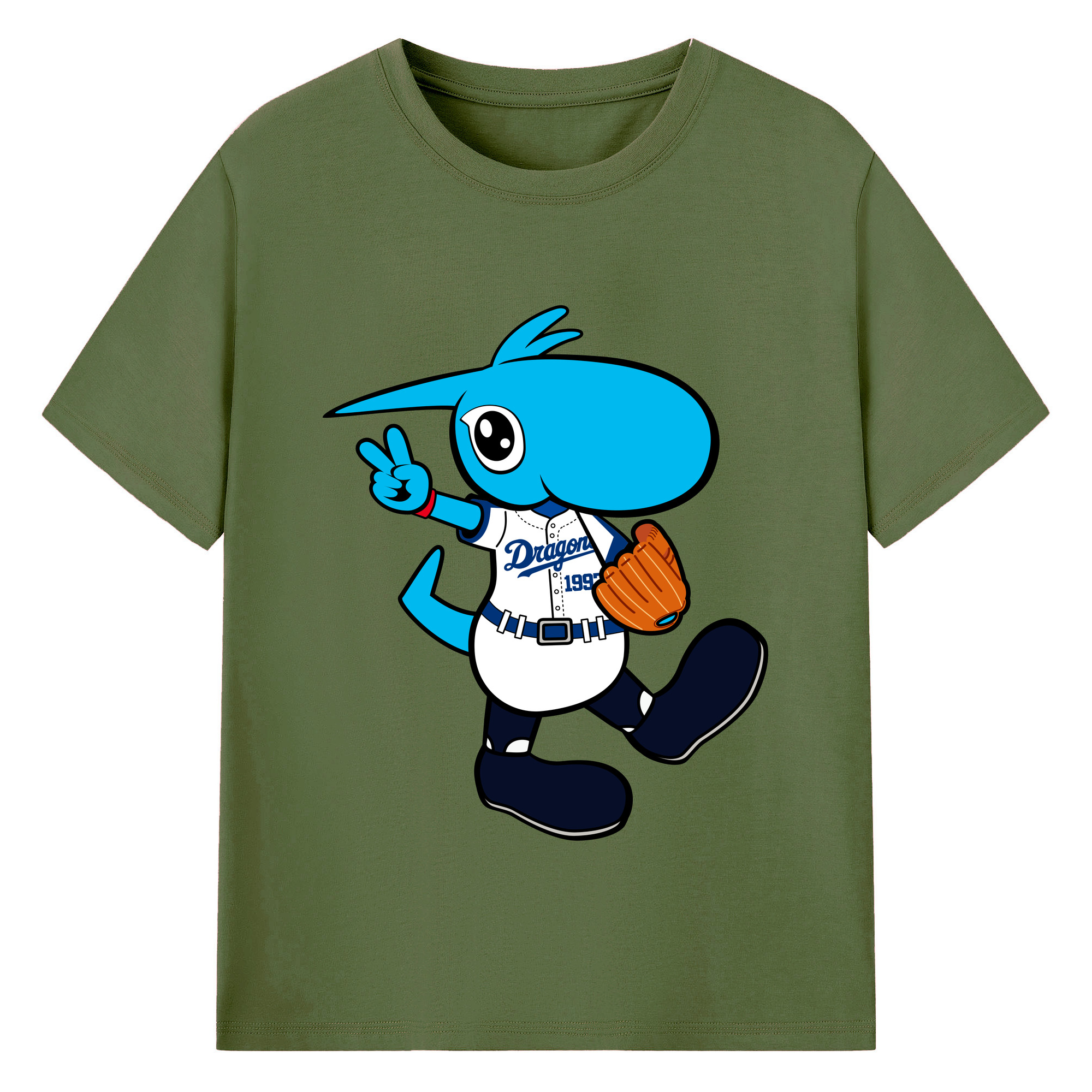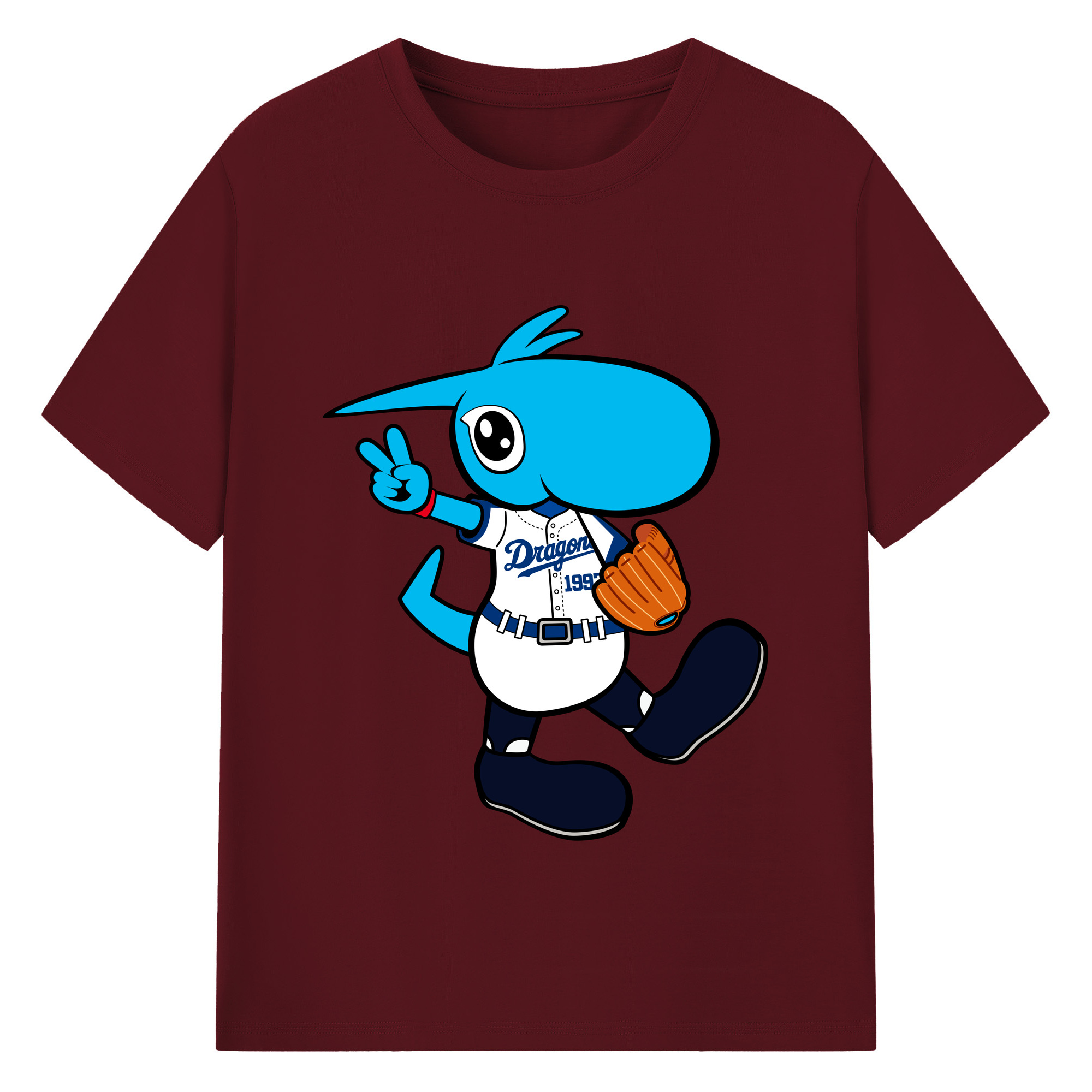 CHUNICHI DRAGONS MASCOT DOALA APPLICATION RUNNING Logo - 綿100% 半袖Tシャツ ・ フロントプリント ・ 快適 通気性 ・ 日常使い 散歩 スポーツ用