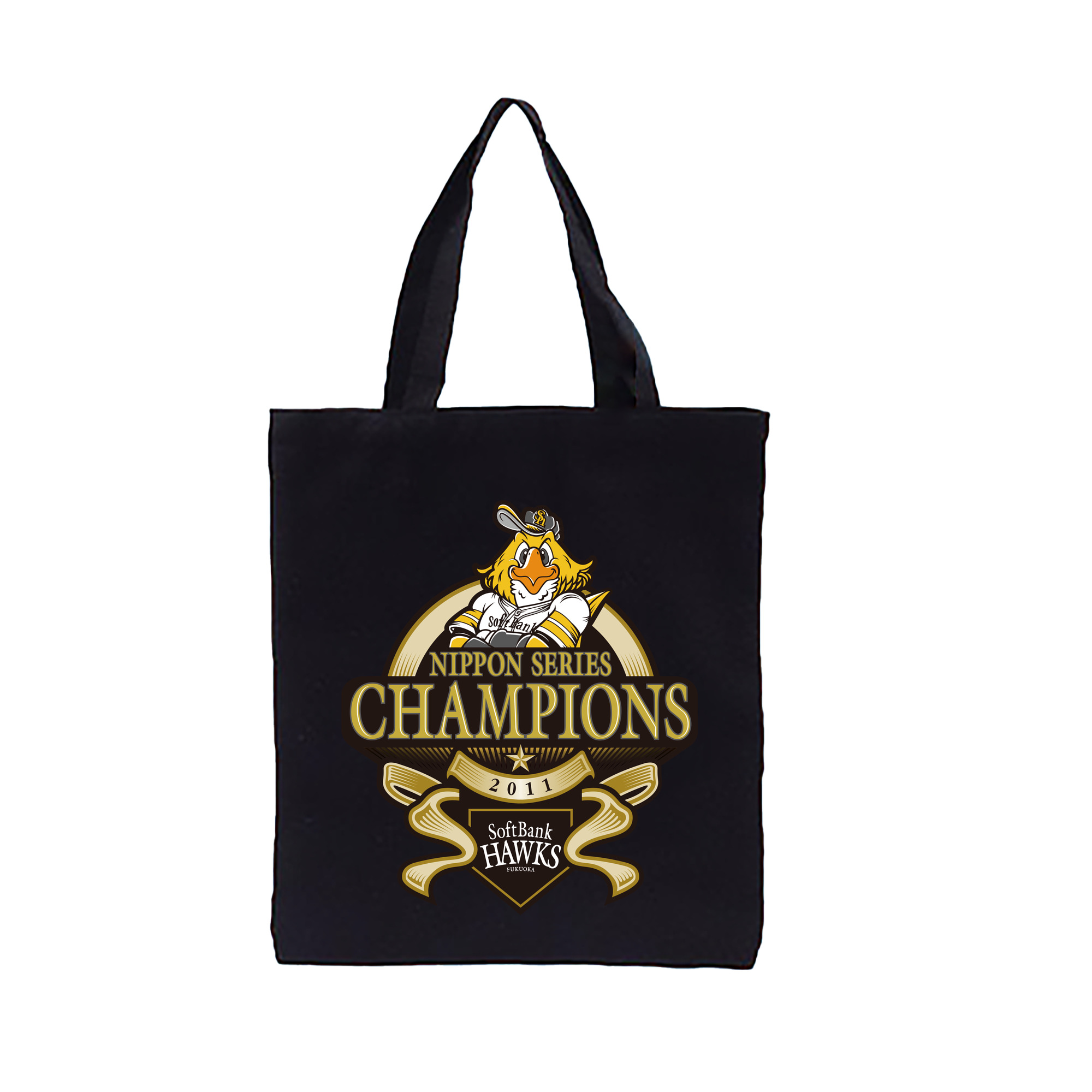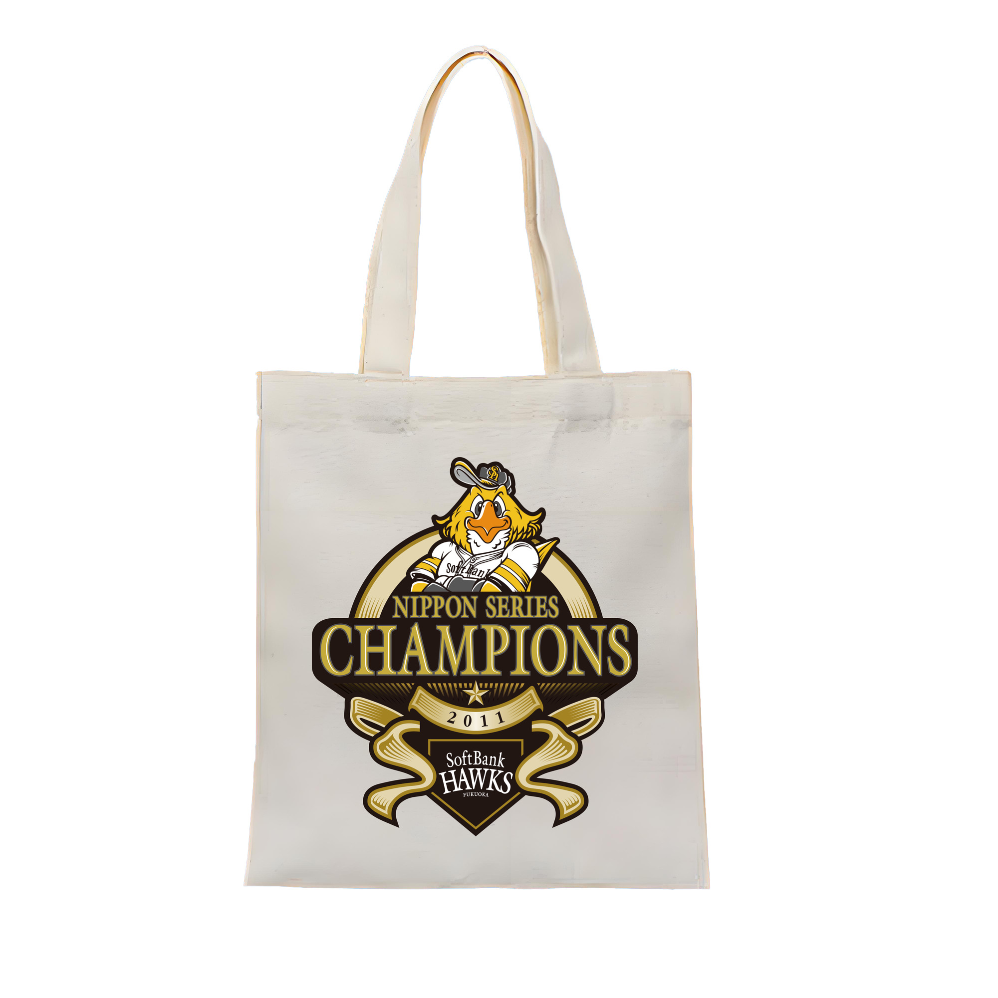 FUKUOKA SOFTBANK HAWKS 2011 NIPPON CHAMPIONS Logo - 縦型キャンバス手提げバッグ(トートバッグ) ・ キャンバス素材 ・ ショッピング用 ・ 軽量 丈夫 お手入れ簡単