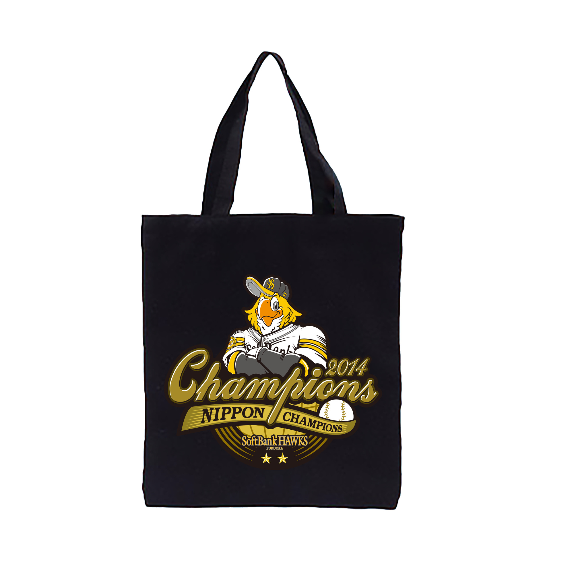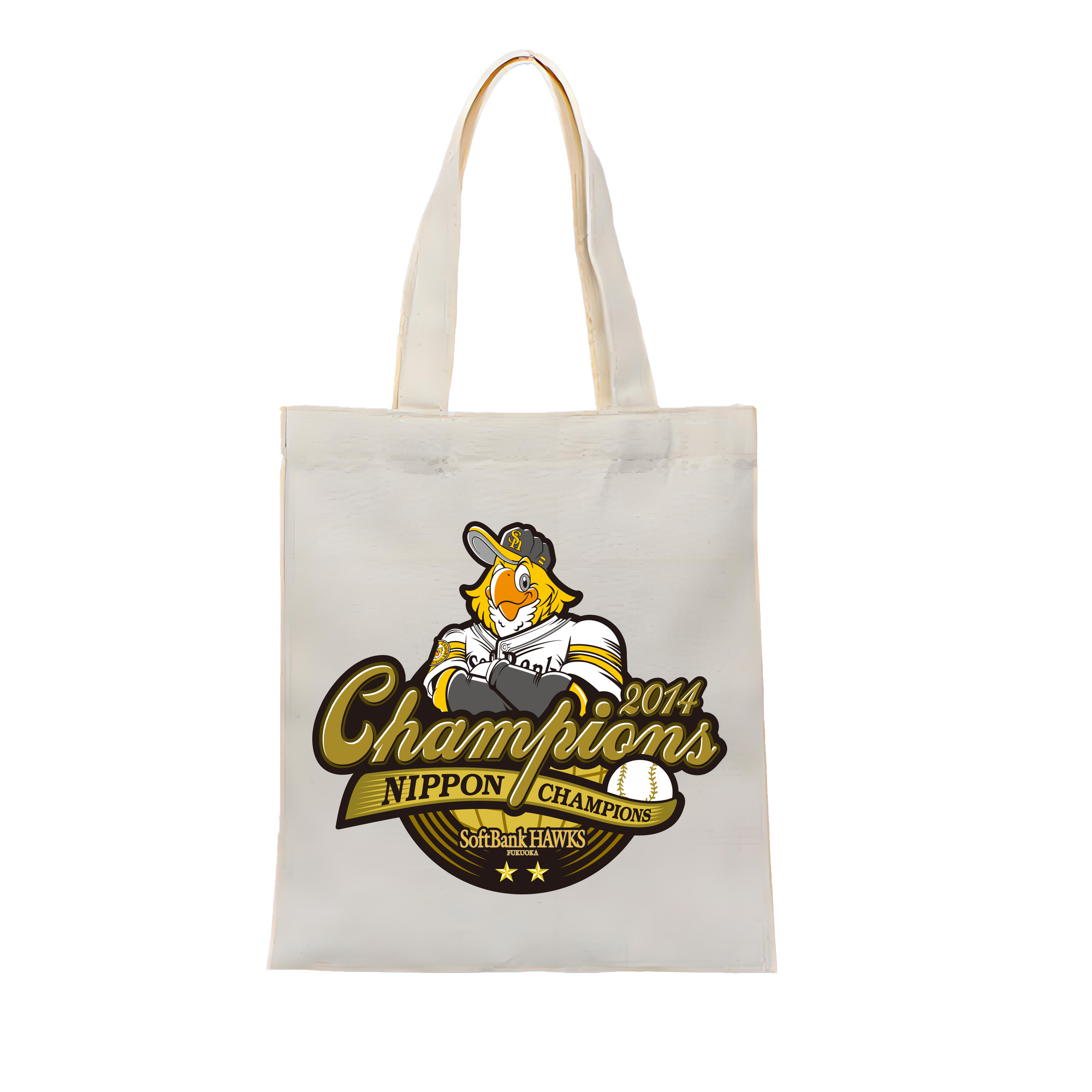 FUKUOKA SOFTBANK HAWKS 2014 NIPPON CHAMPIONS Logo - 縦型キャンバス手提げバッグ(トートバッグ) ・ キャンバス素材 ・ ショッピング用 ・ 軽量 丈夫 お手入れ簡単