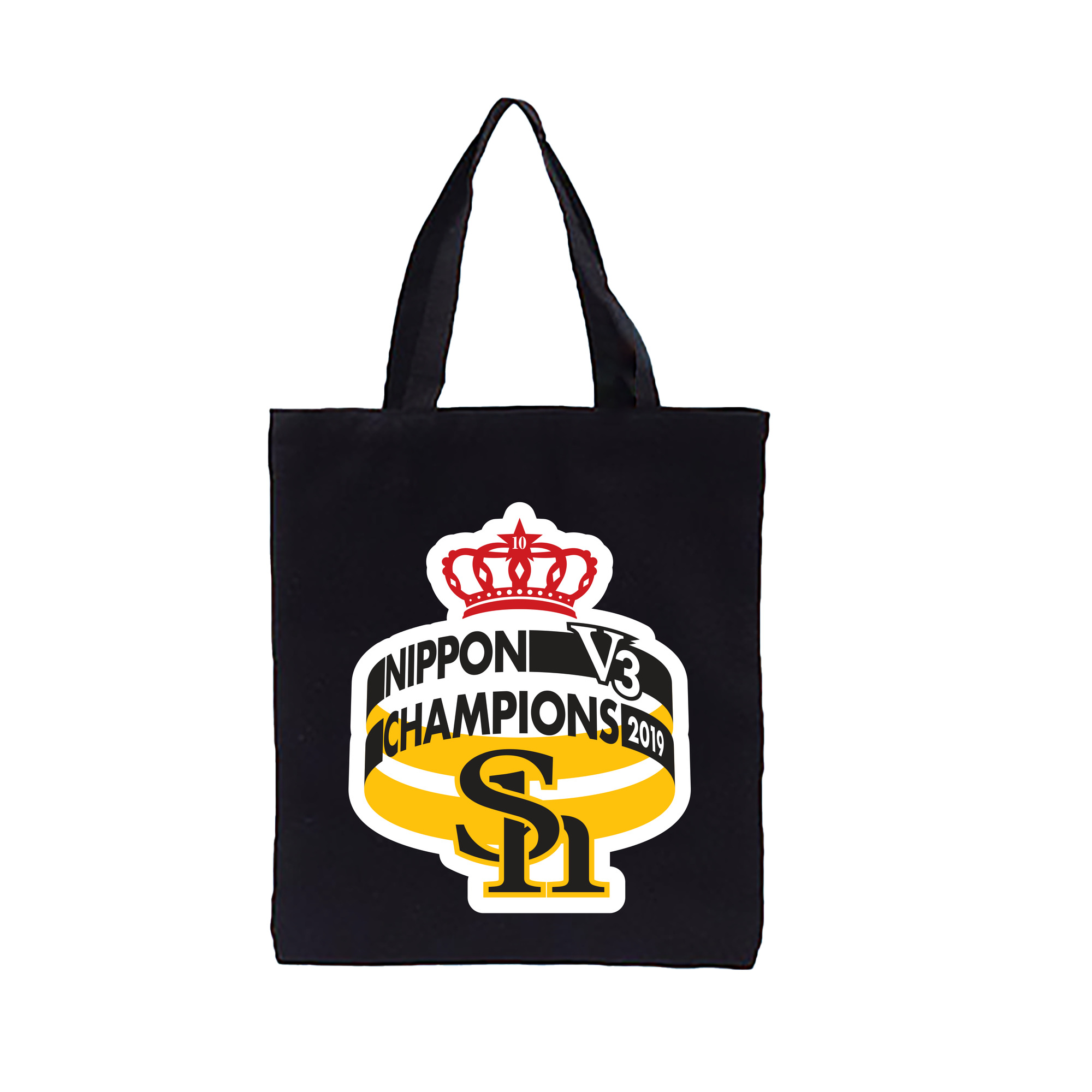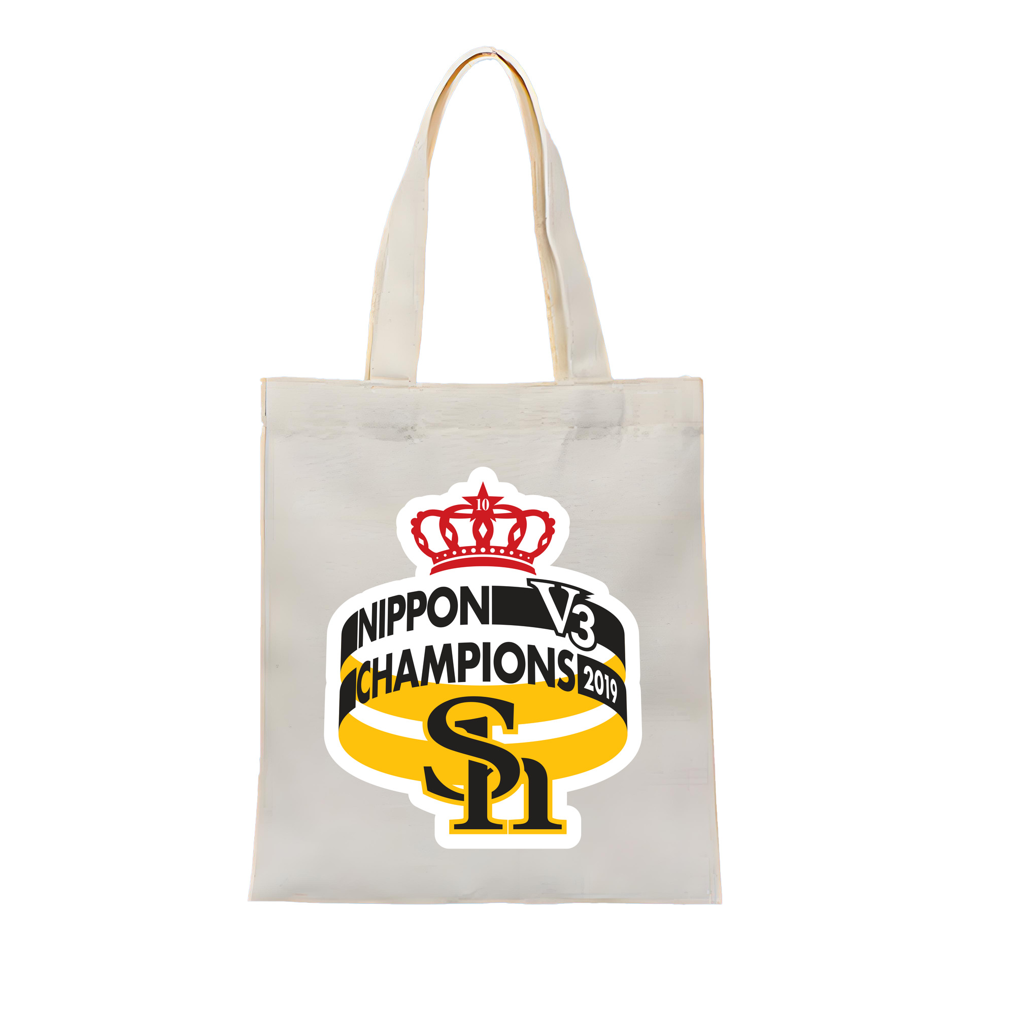 FUKUOKA SOFTBANK HAWKS 2019 NIPPON CHAMPIONS Logo - 縦型キャンバス手提げバッグ(トートバッグ) ・ キャンバス素材 ・ ショッピング用 ・ 軽量 丈夫 お手入れ簡単