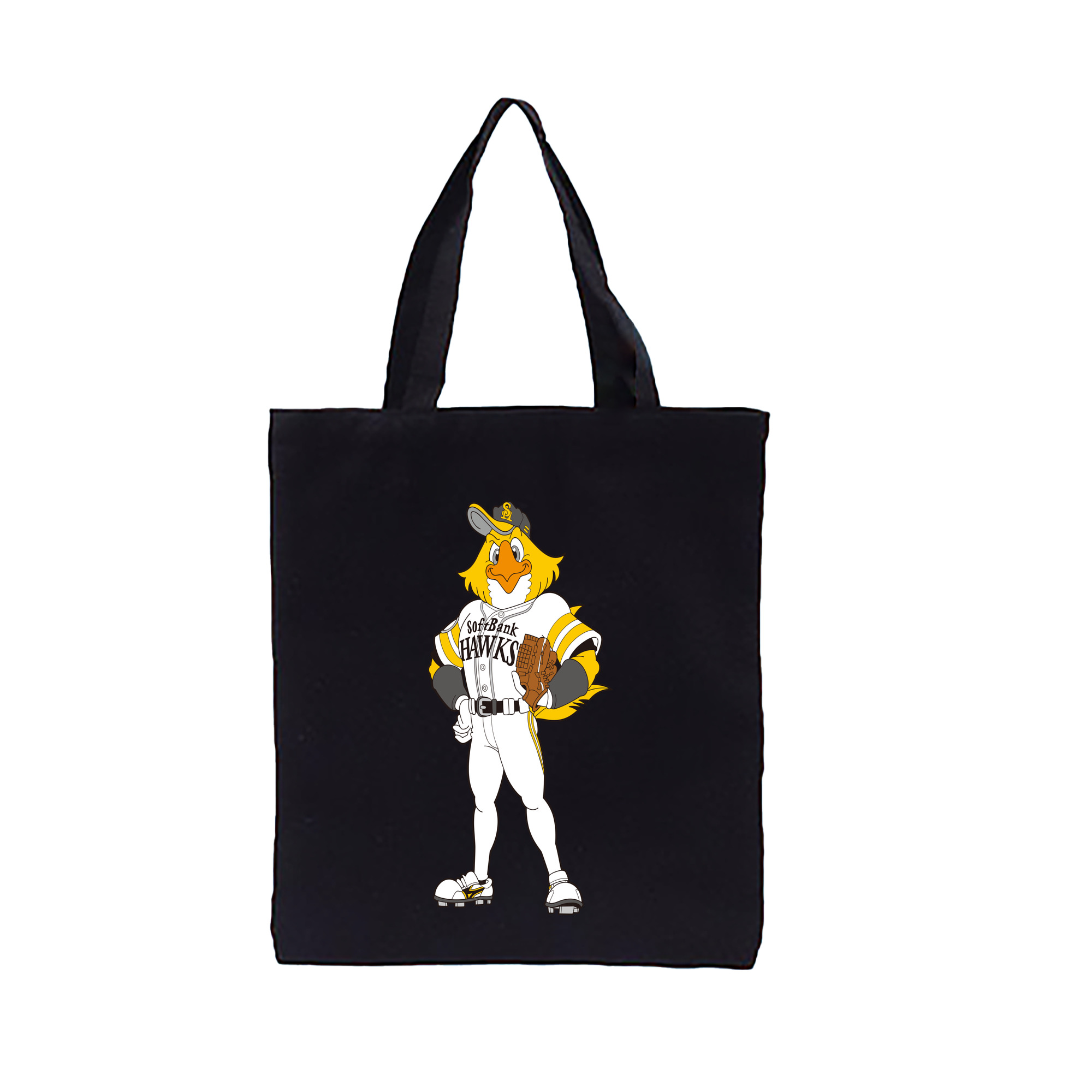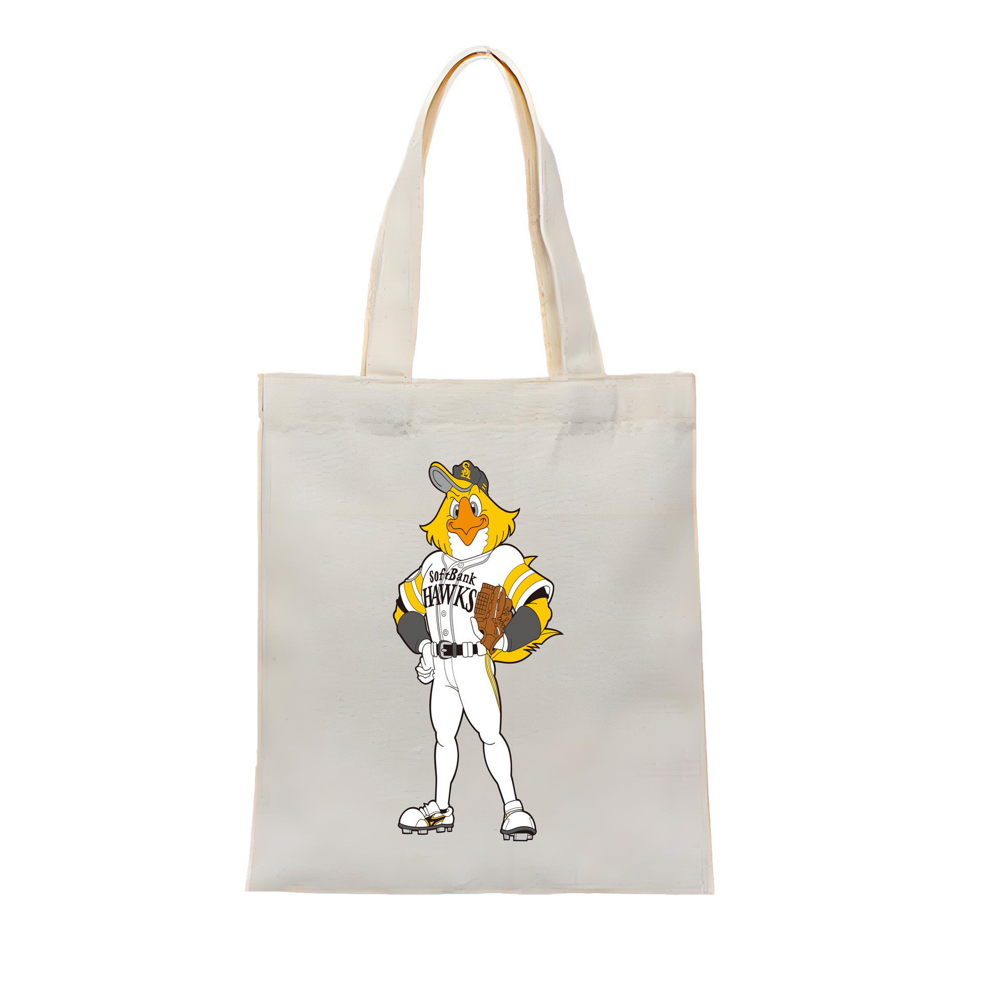 FUKUOKA SOFTBANK HAWKS MASCOT HARRY HAWK APPLICATION PITCHING STANDING Logo - 縦型キャンバス手提げバッグ(トートバッグ) ・ キャンバス素材 ・ ショッピング用 ・ 軽量 丈夫 お手入れ簡単