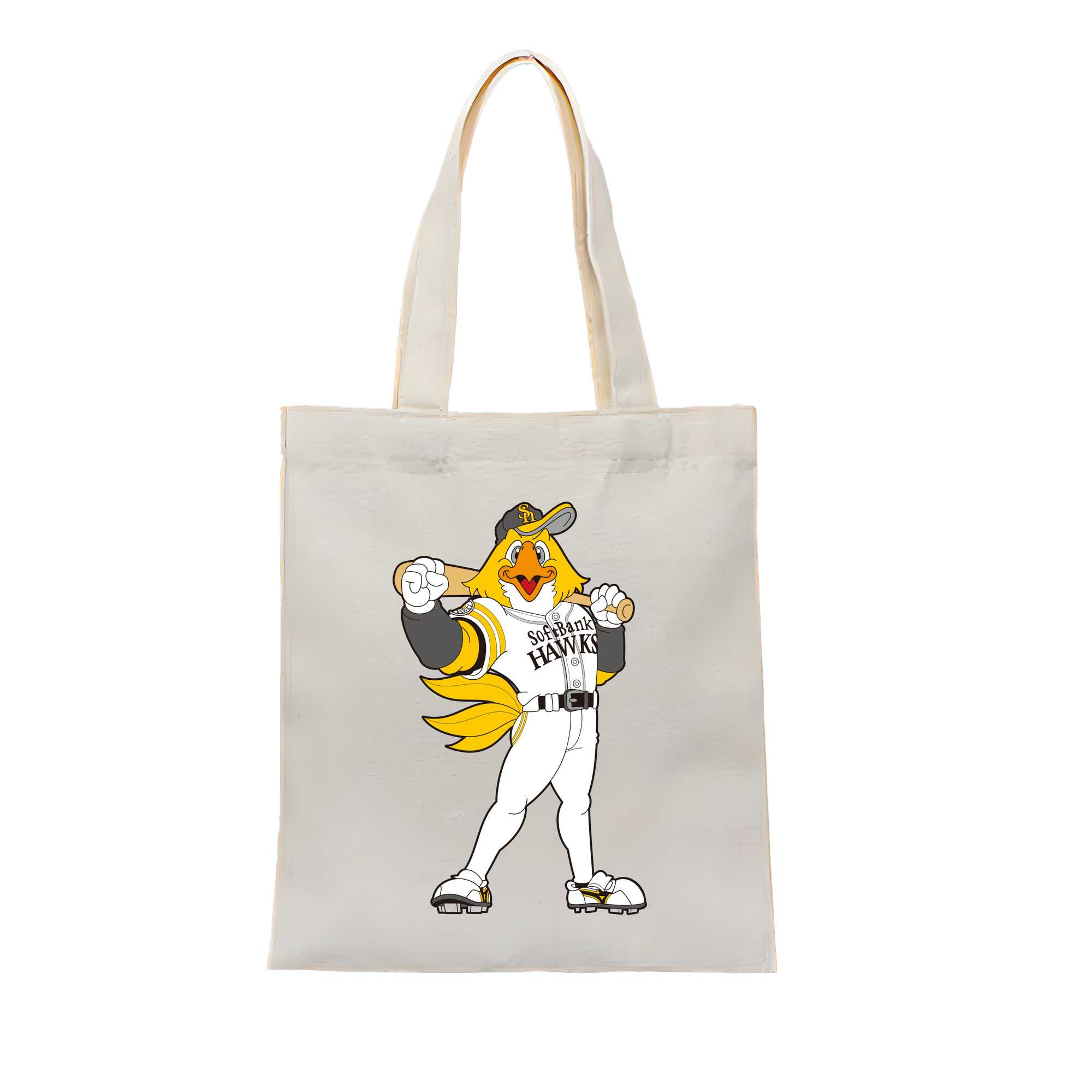 FUKUOKA SOFTBANK HAWKS MASCOT HARRY HAWK APPLICATION STANDING FIGHTING Logo - 縦型キャンバス手提げバッグ(トートバッグ) ・ キャンバス素材 ・ ショッピング用 ・ 軽量 丈夫 お手入れ簡単