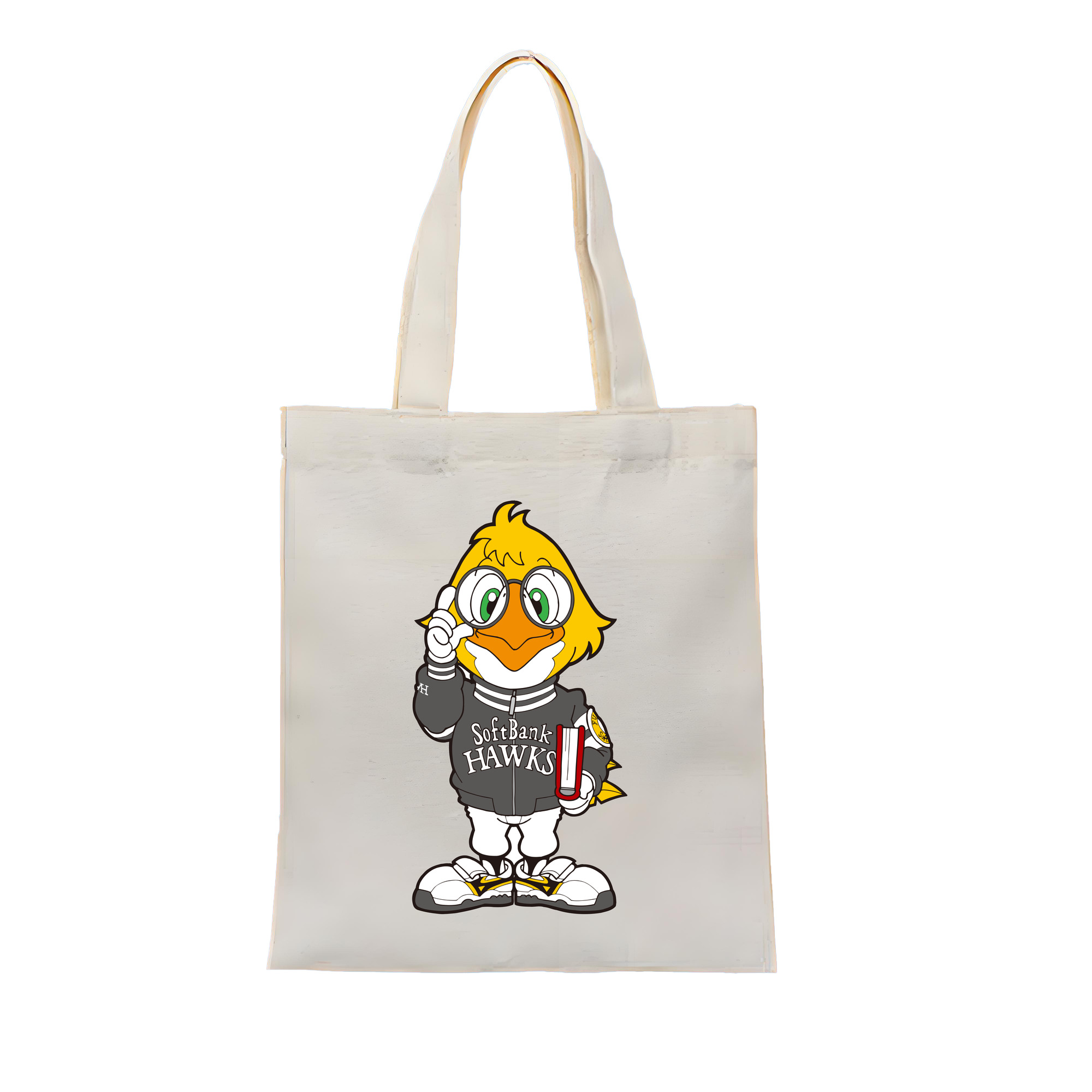 FUKUOKA SOFTBANK HAWKS MASCOT RICK HAWK Logo - 縦型キャンバス手提げバッグ(トートバッグ) ・ キャンバス素材 ・ ショッピング用 ・ 軽量 丈夫 お手入れ簡単