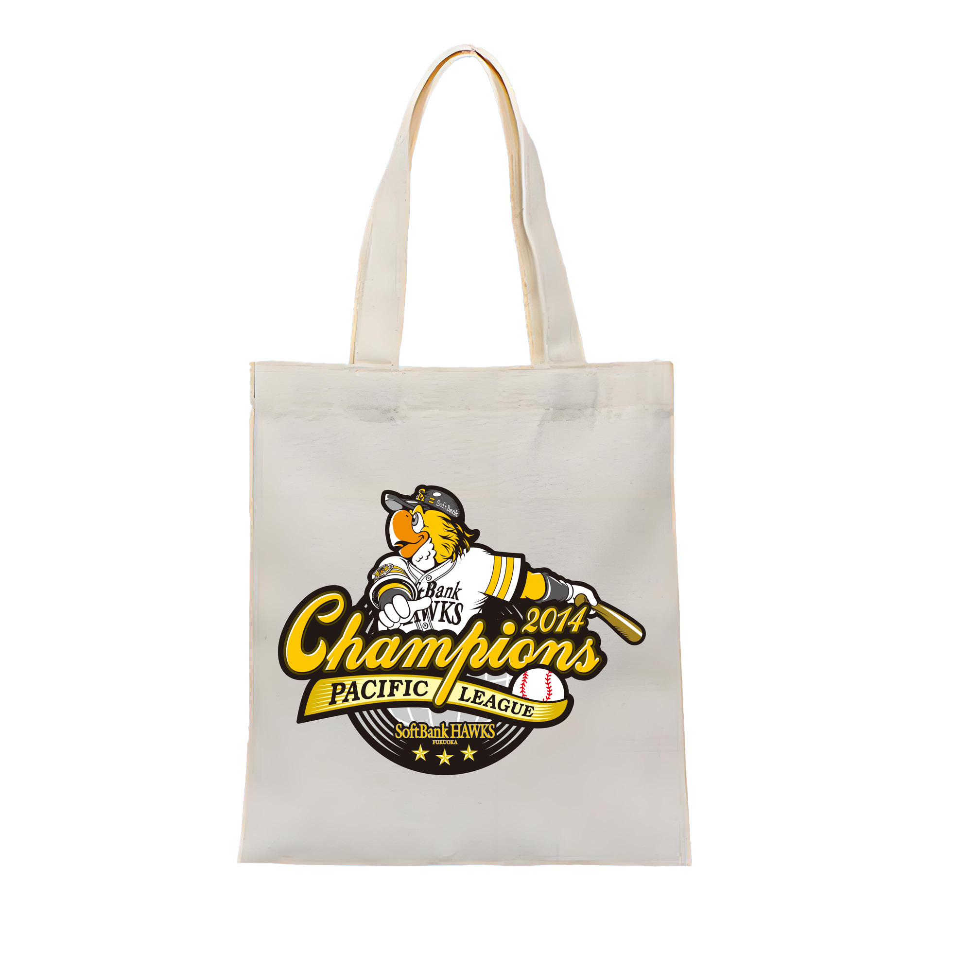FUKUOKA SOFTBANK HAWKS PACIFIC LEAGUE 2014 CHAMPIONS Logo - 縦型キャンバス手提げバッグ(トートバッグ) ・ キャンバス素材 ・ ショッピング用 ・ 軽量 丈夫 お手入れ簡単