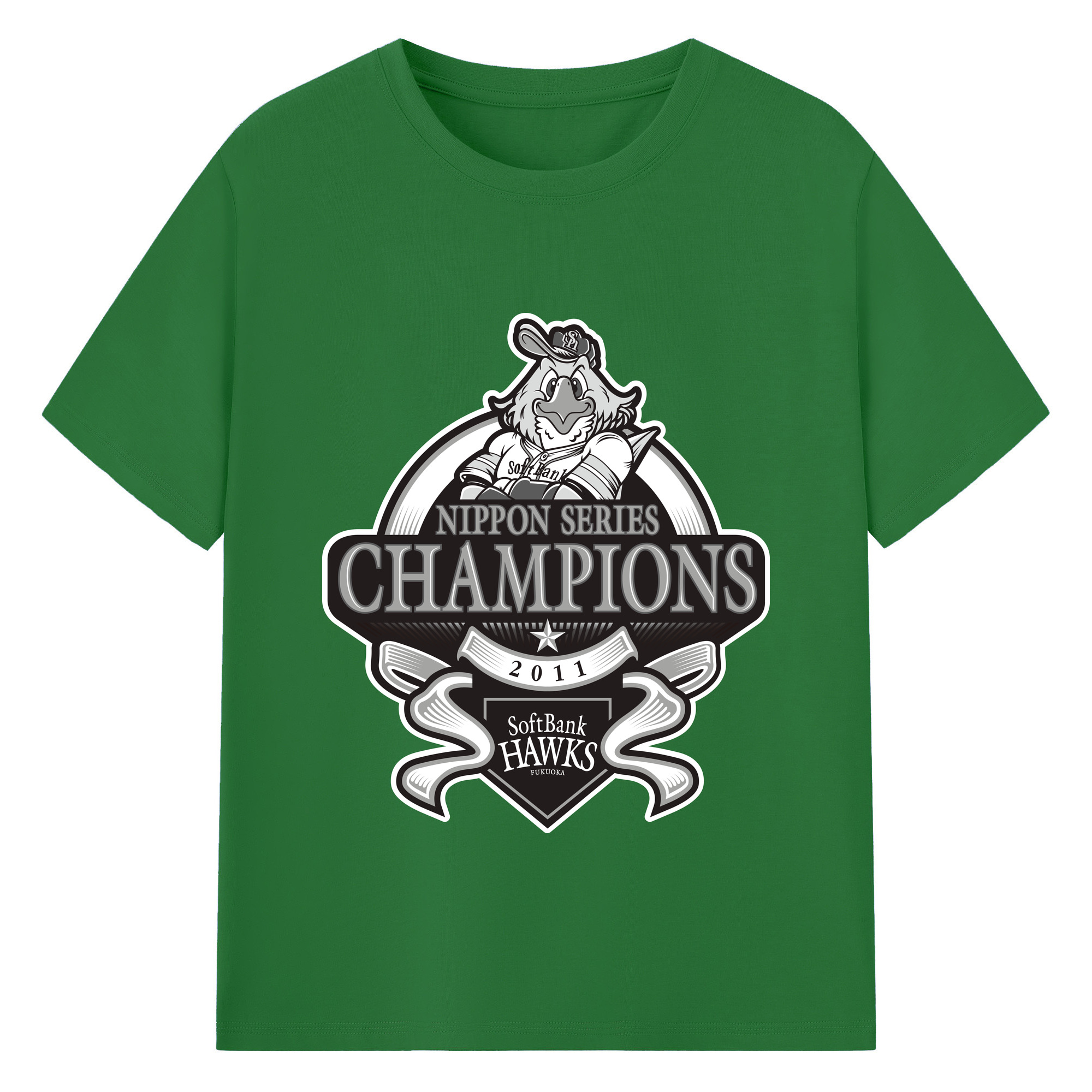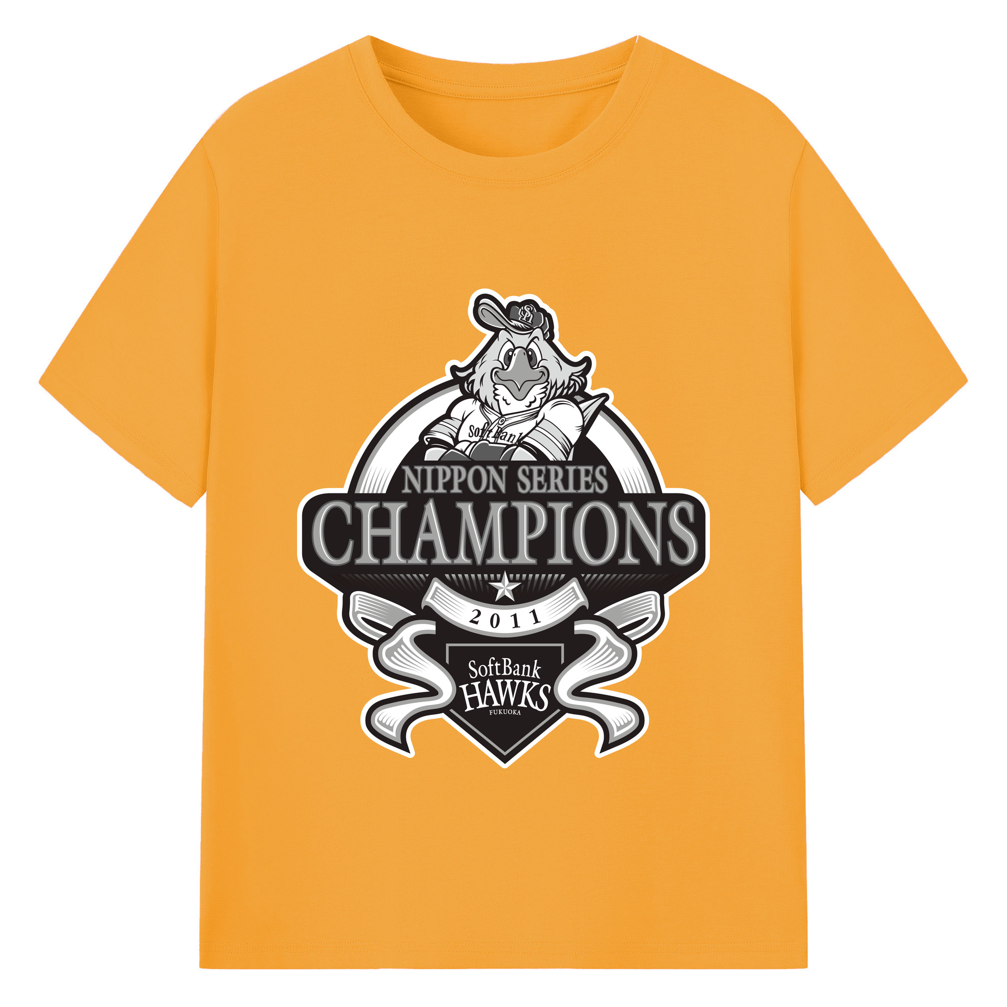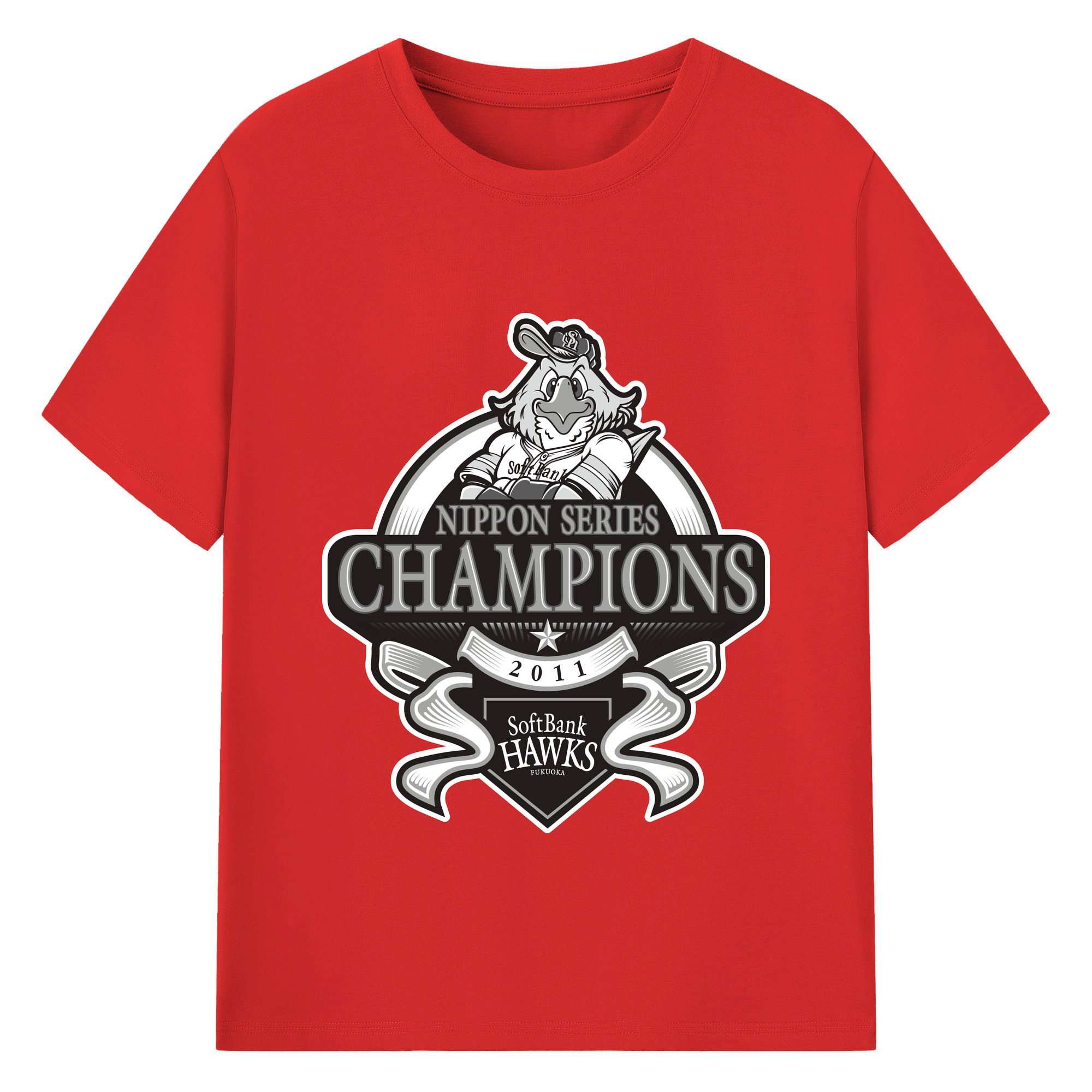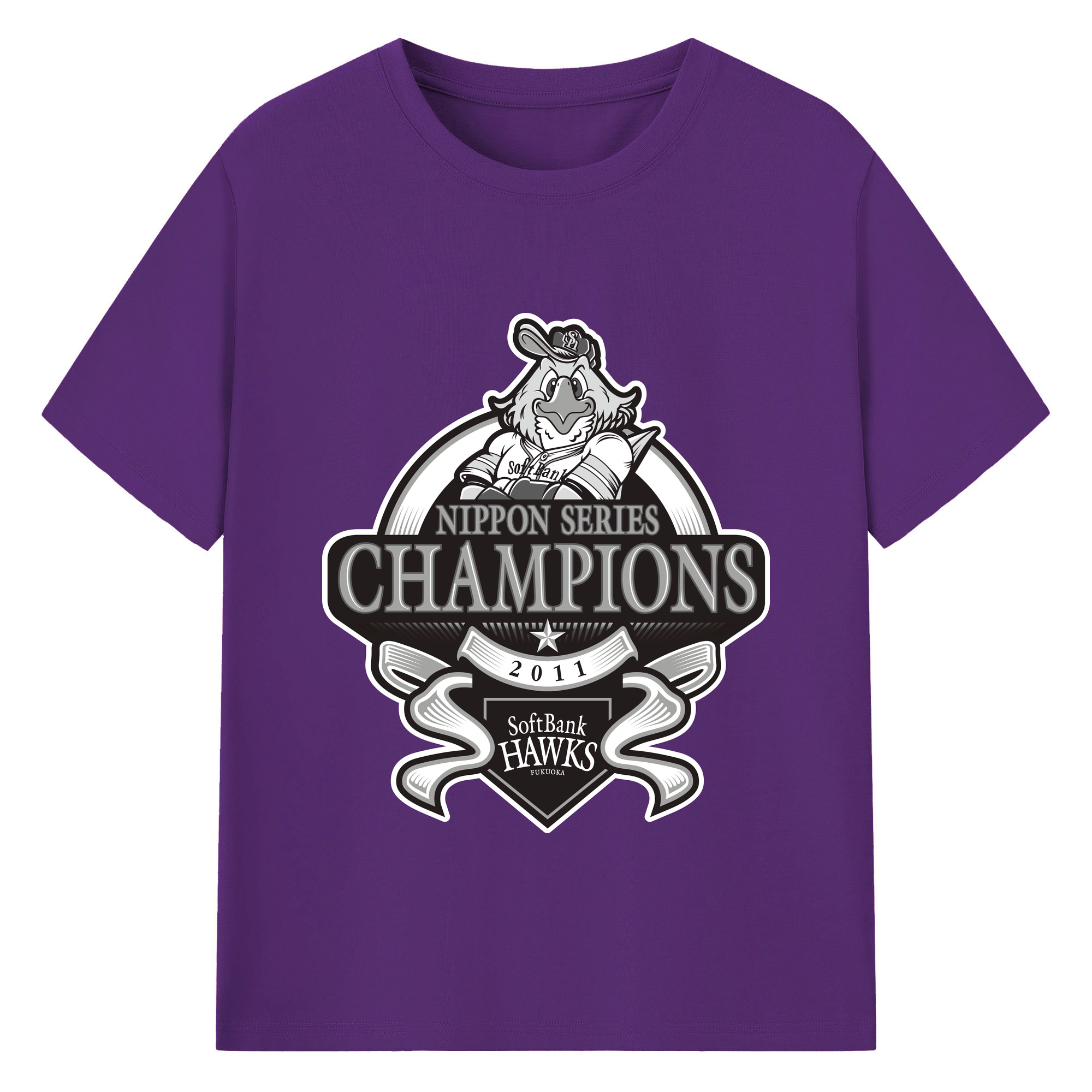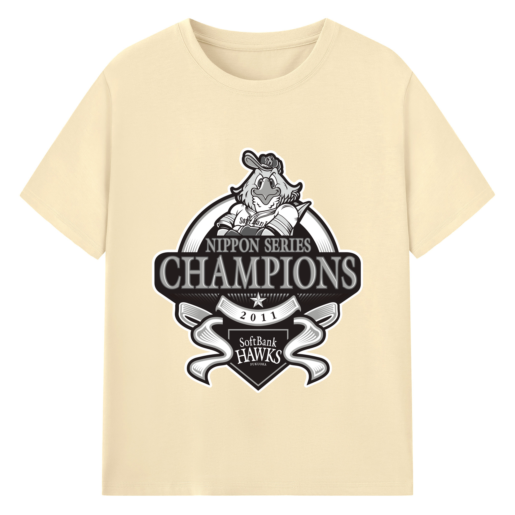 FUKUOKA SOFTBANK HAWKS 2011 NIPPON CHAMPIONS Black Logo - 綿100% 半袖Tシャツ ・ バックプリント ・ 快適 通気性 ・ 日常使い 散歩 スポーツ用