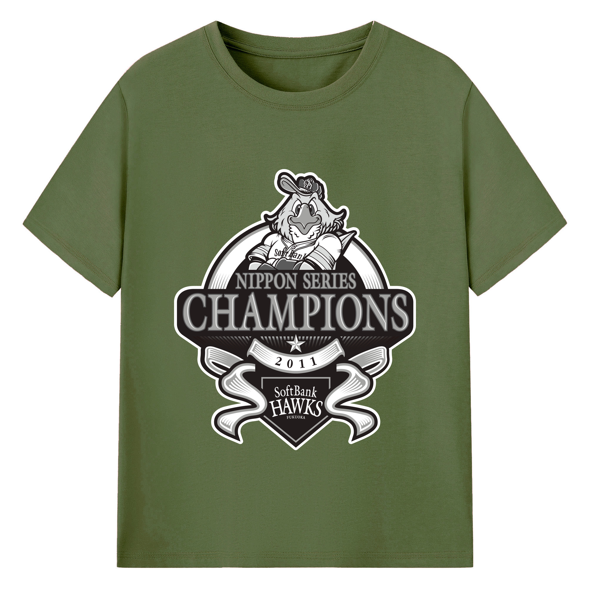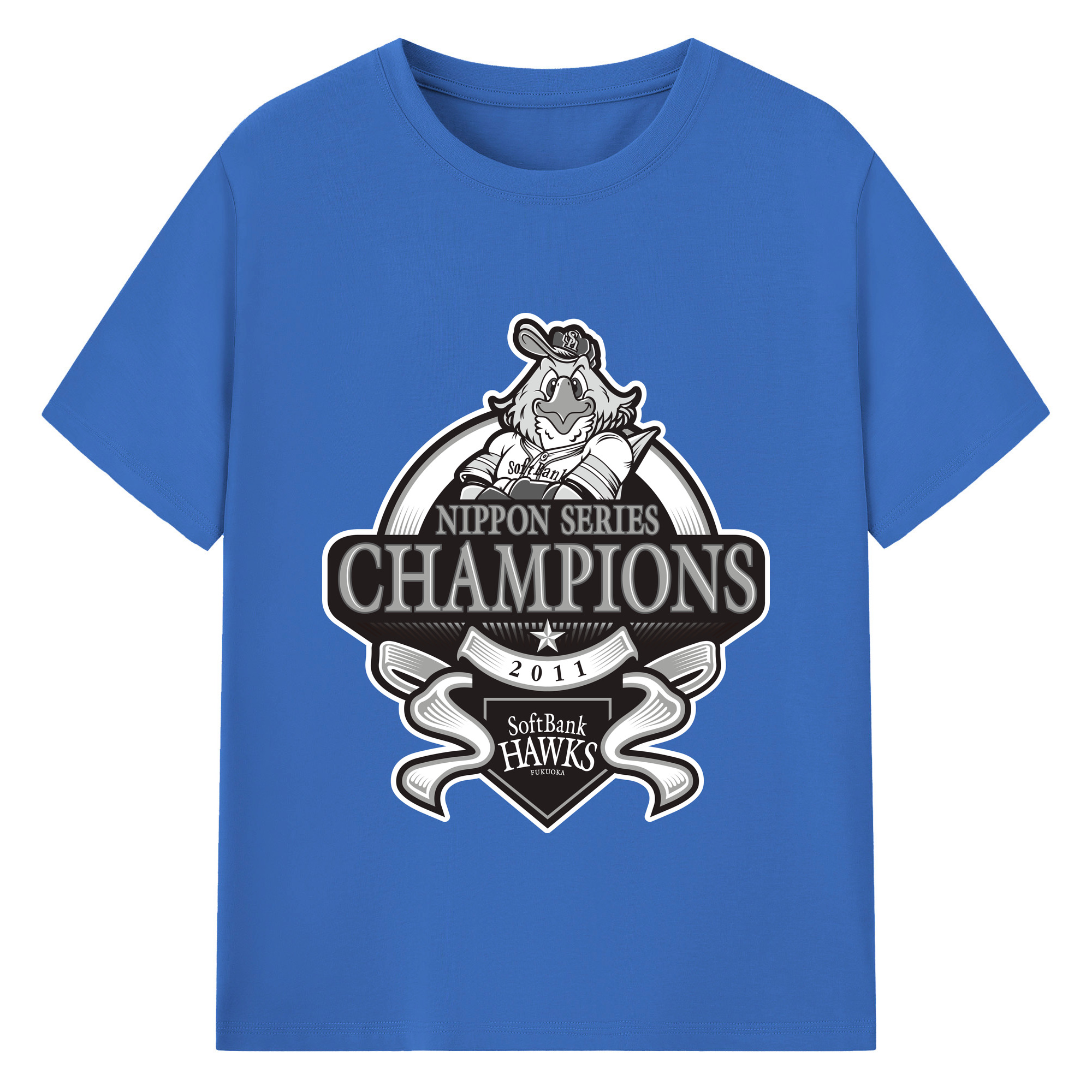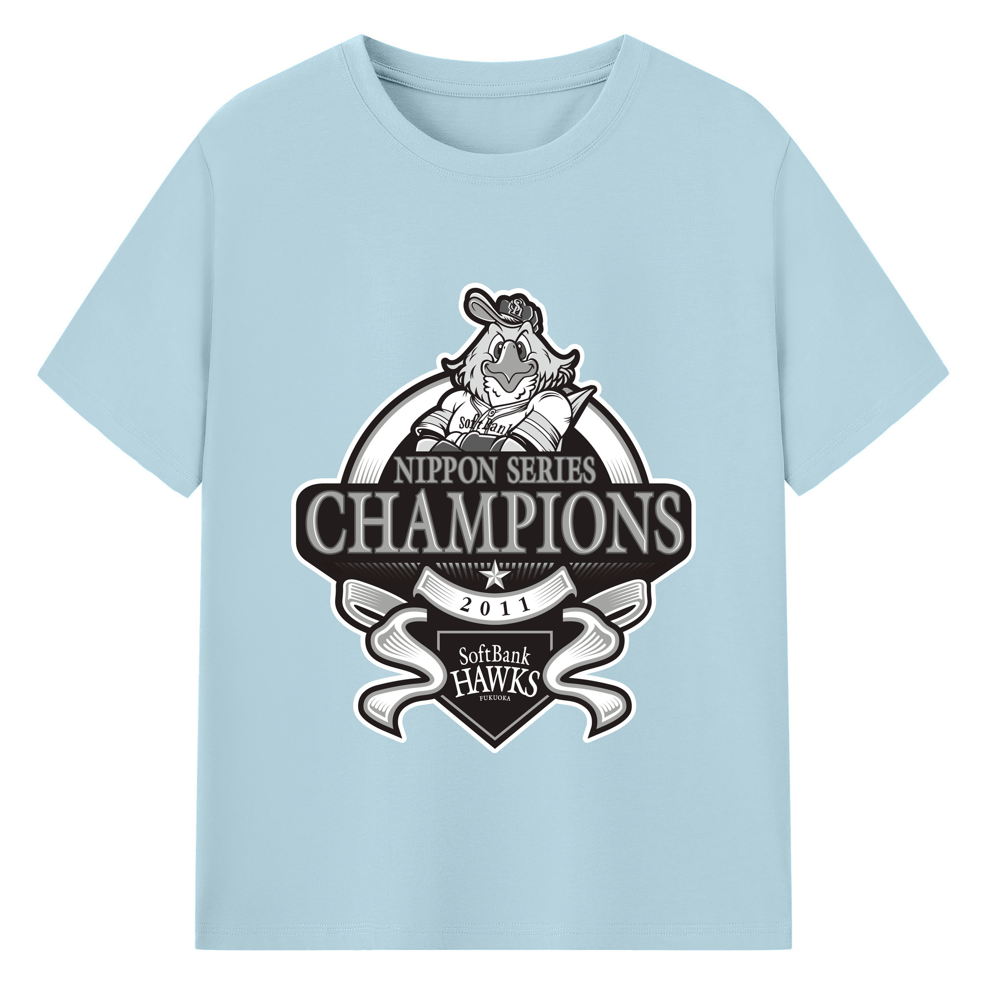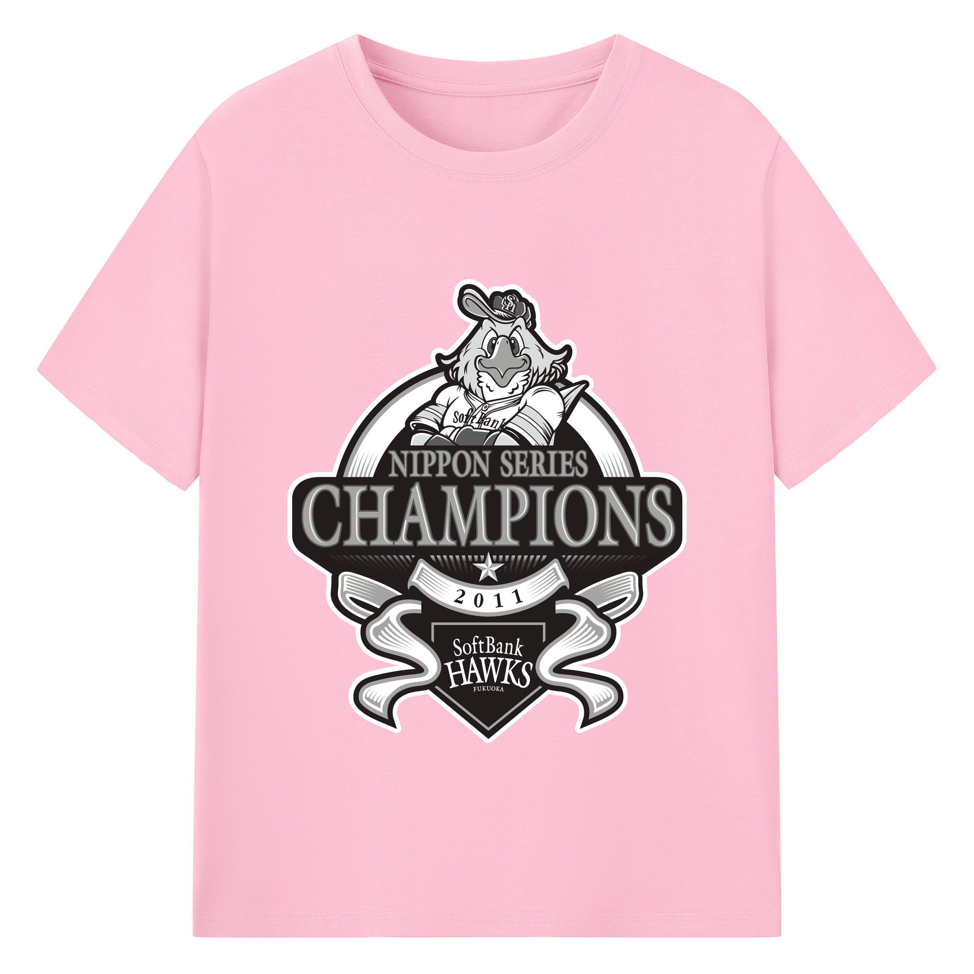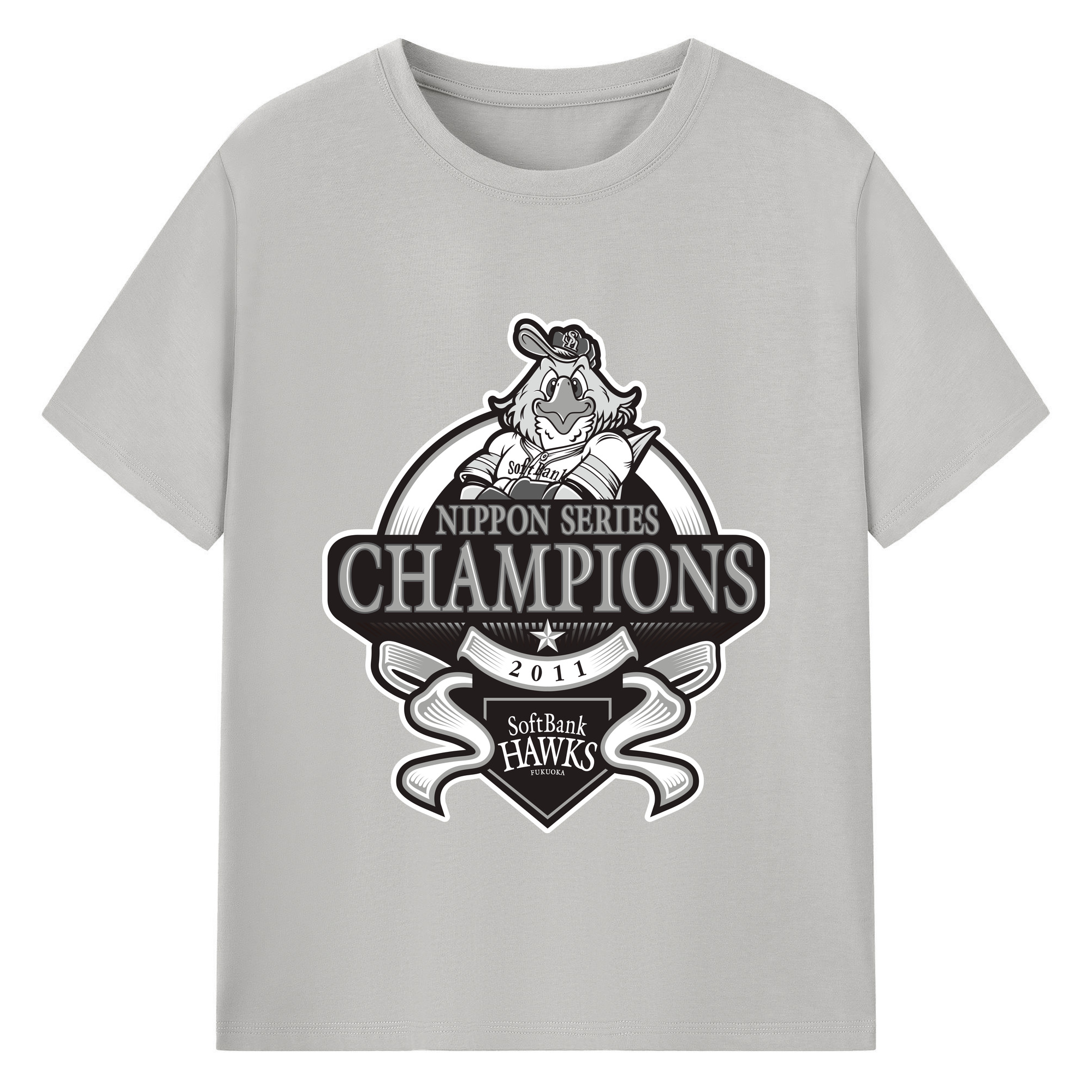 FUKUOKA SOFTBANK HAWKS 2011 NIPPON CHAMPIONS Black Logo - 綿100% 半袖Tシャツ ・ バックプリント ・ 快適 通気性 ・ 日常使い 散歩 スポーツ用