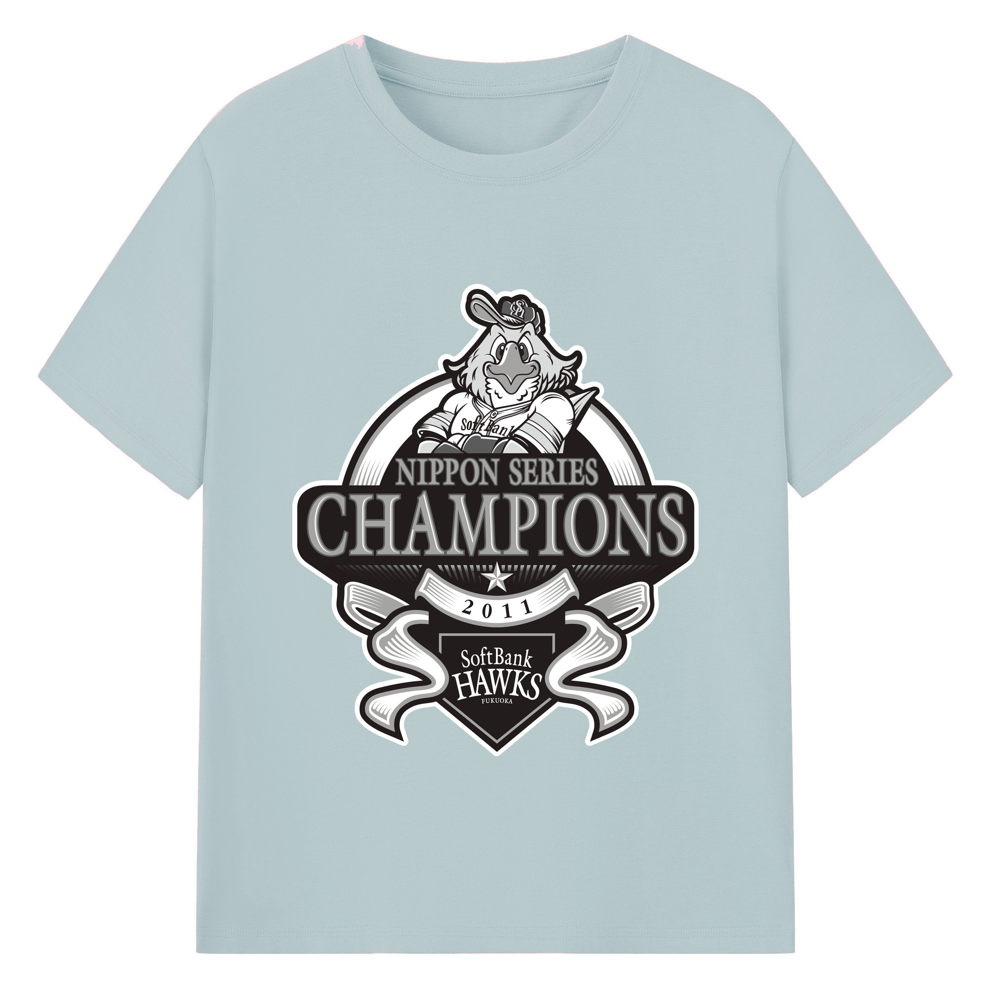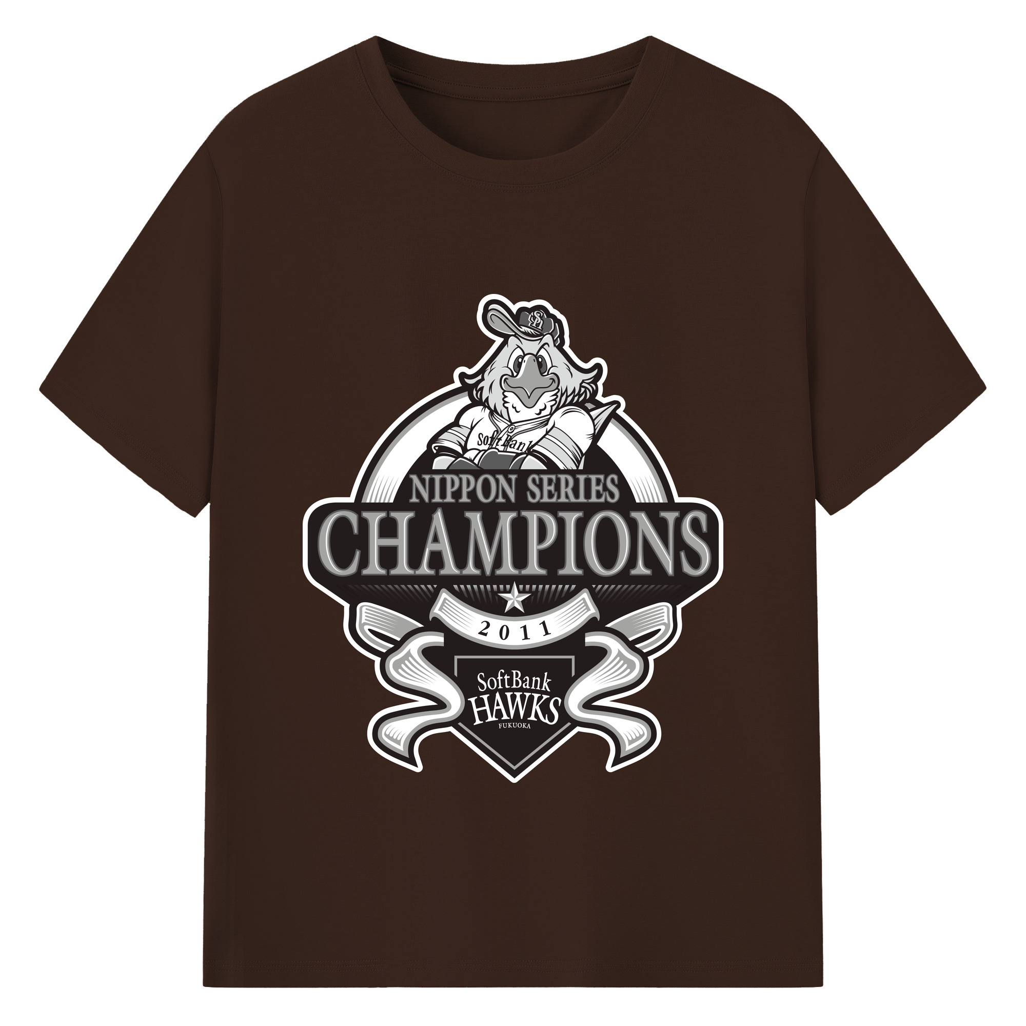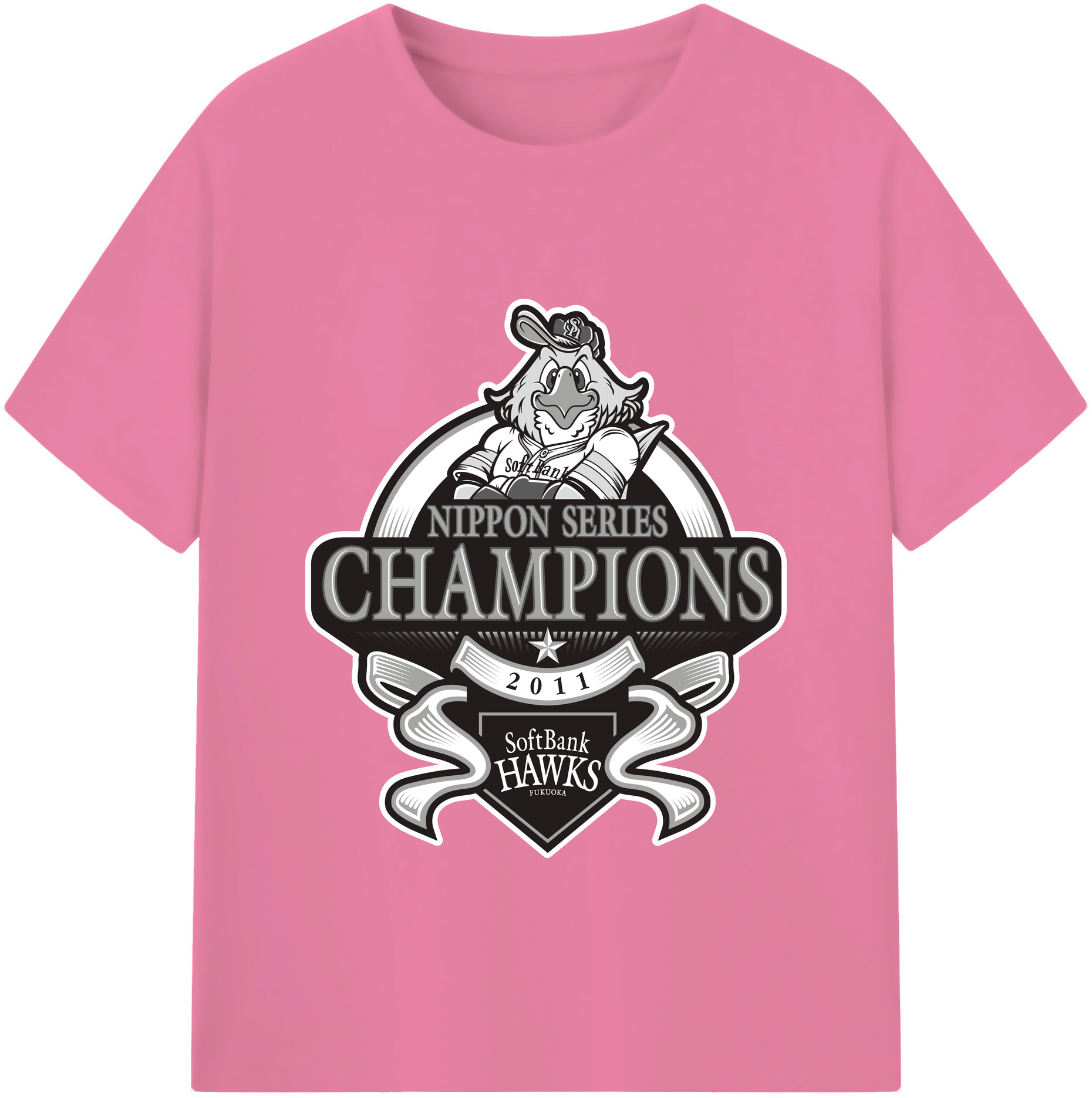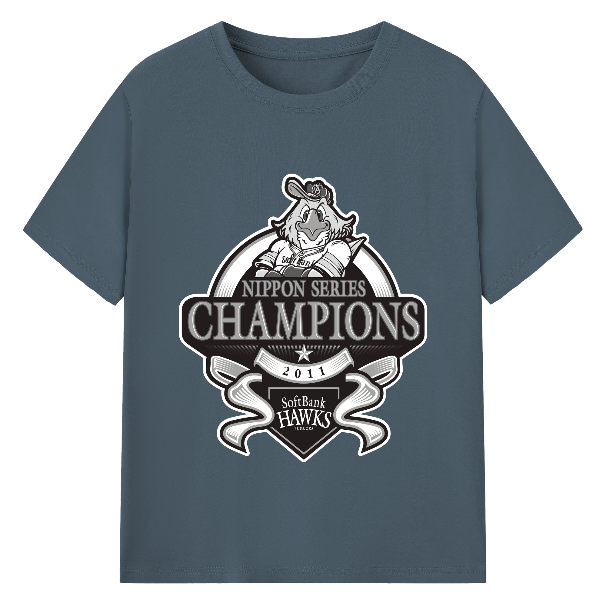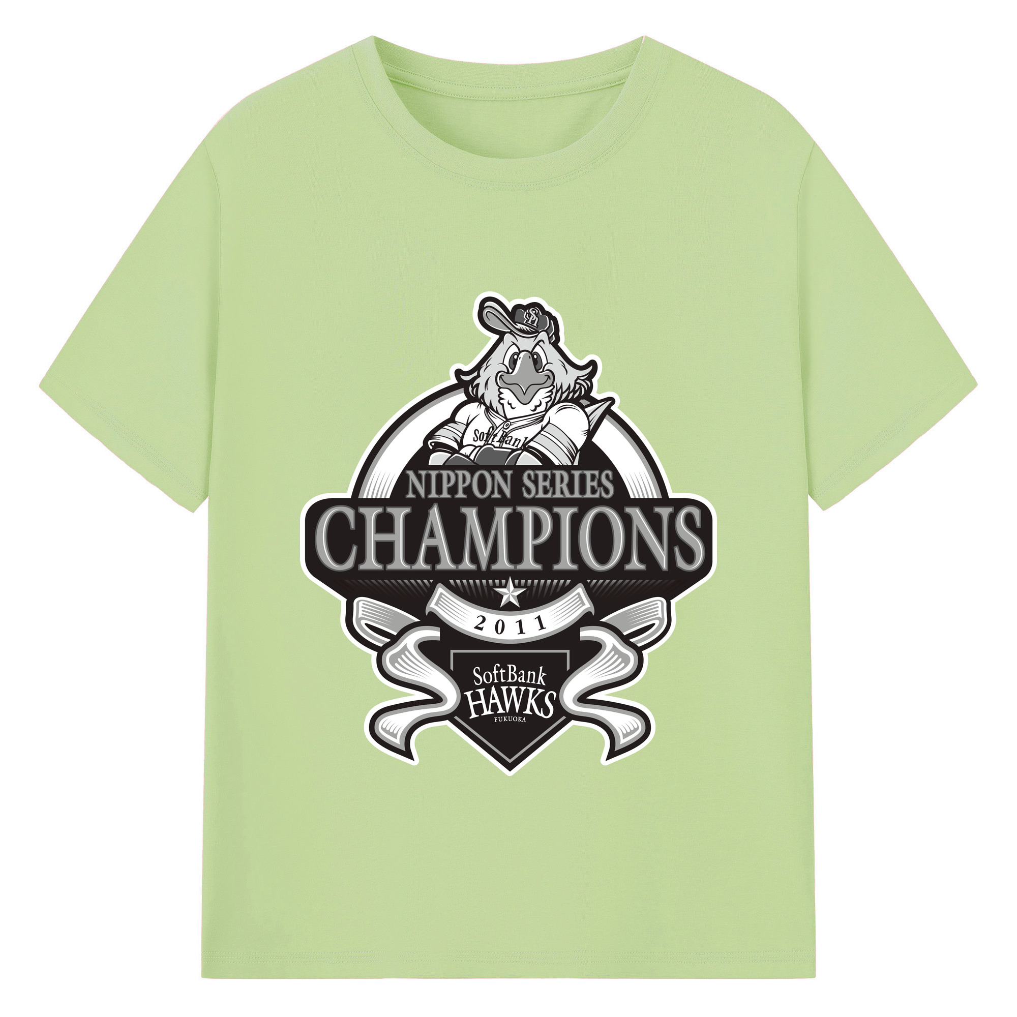FUKUOKA SOFTBANK HAWKS 2011 NIPPON CHAMPIONS Black Logo - 綿100% 半袖Tシャツ ・ バックプリント ・ 快適 通気性 ・ 日常使い 散歩 スポーツ用