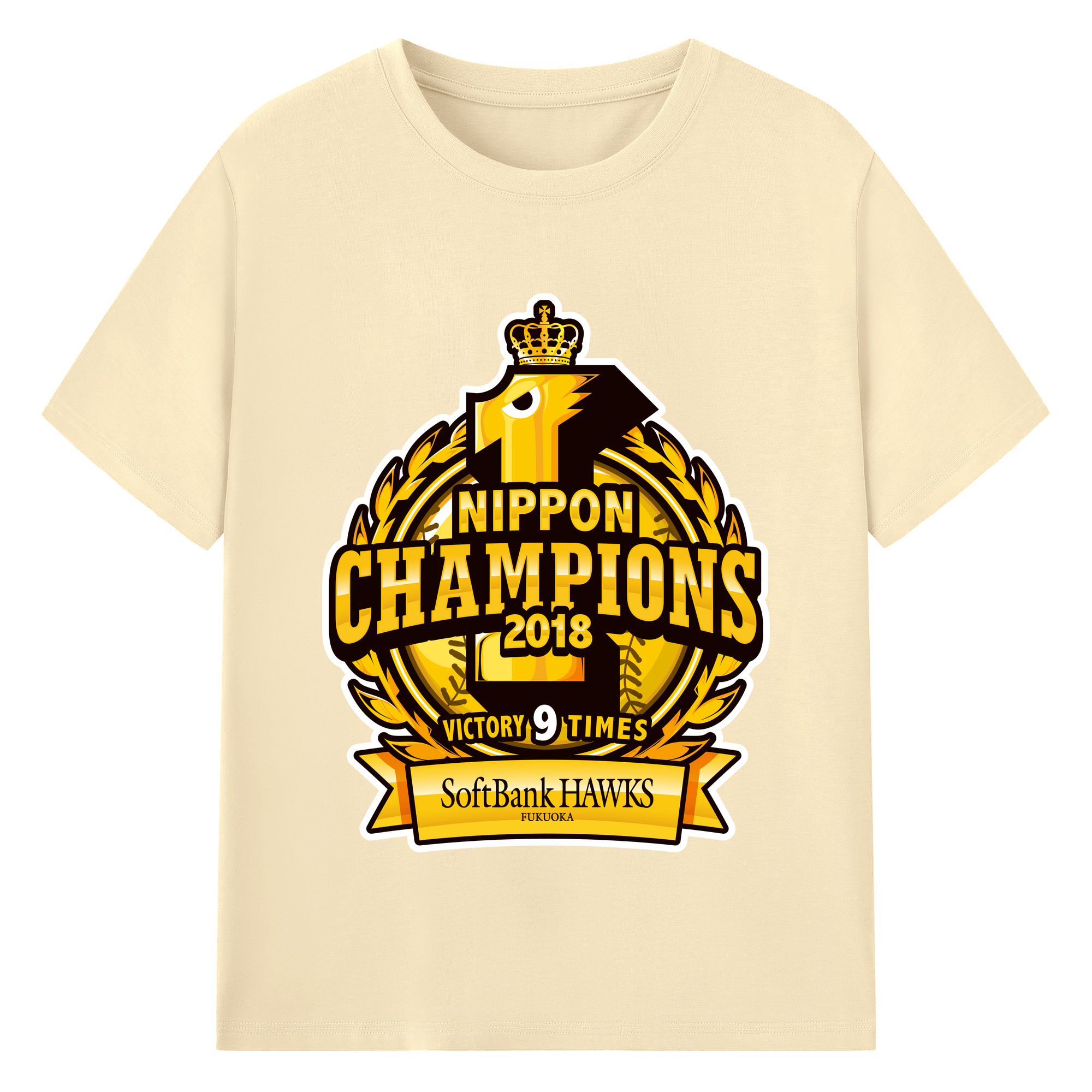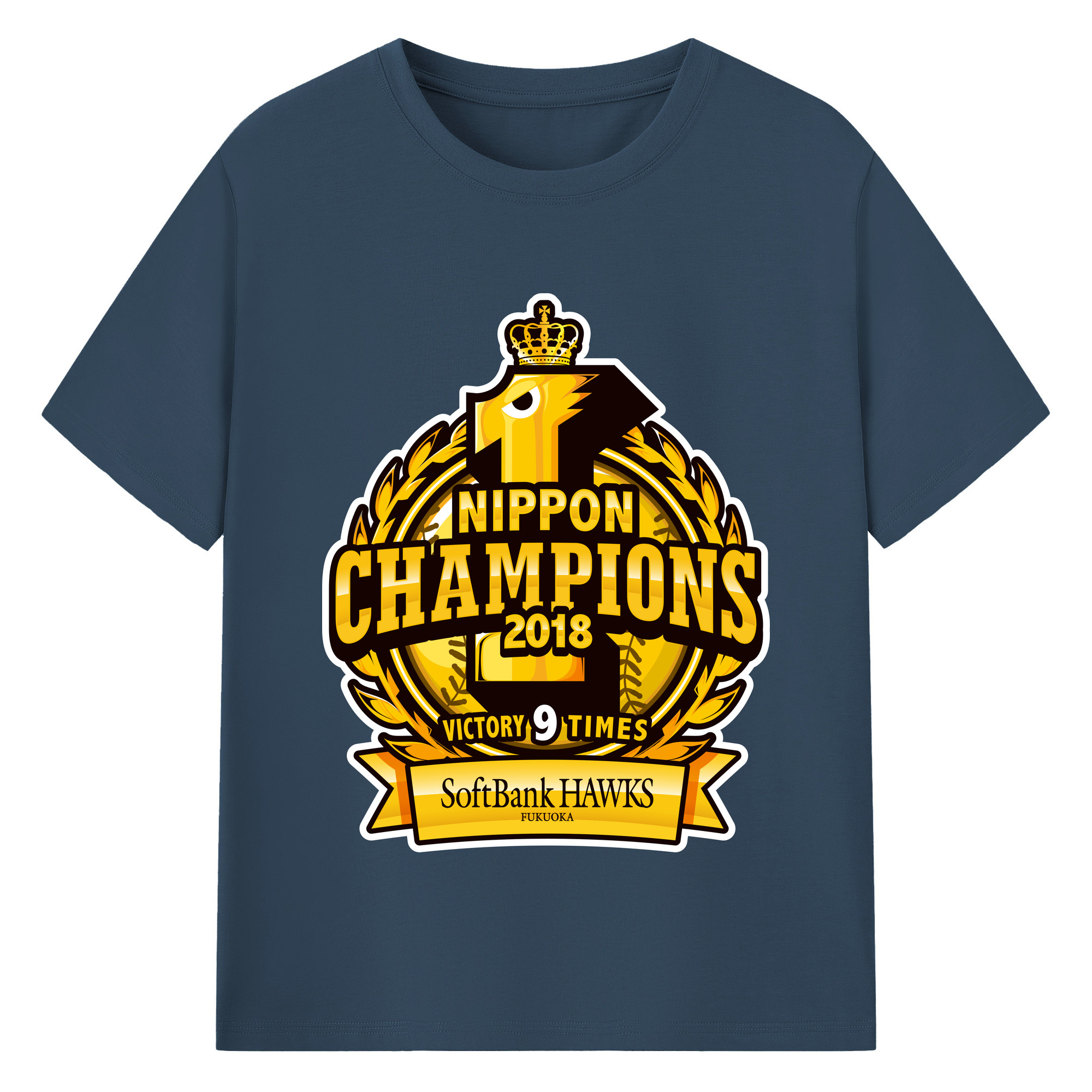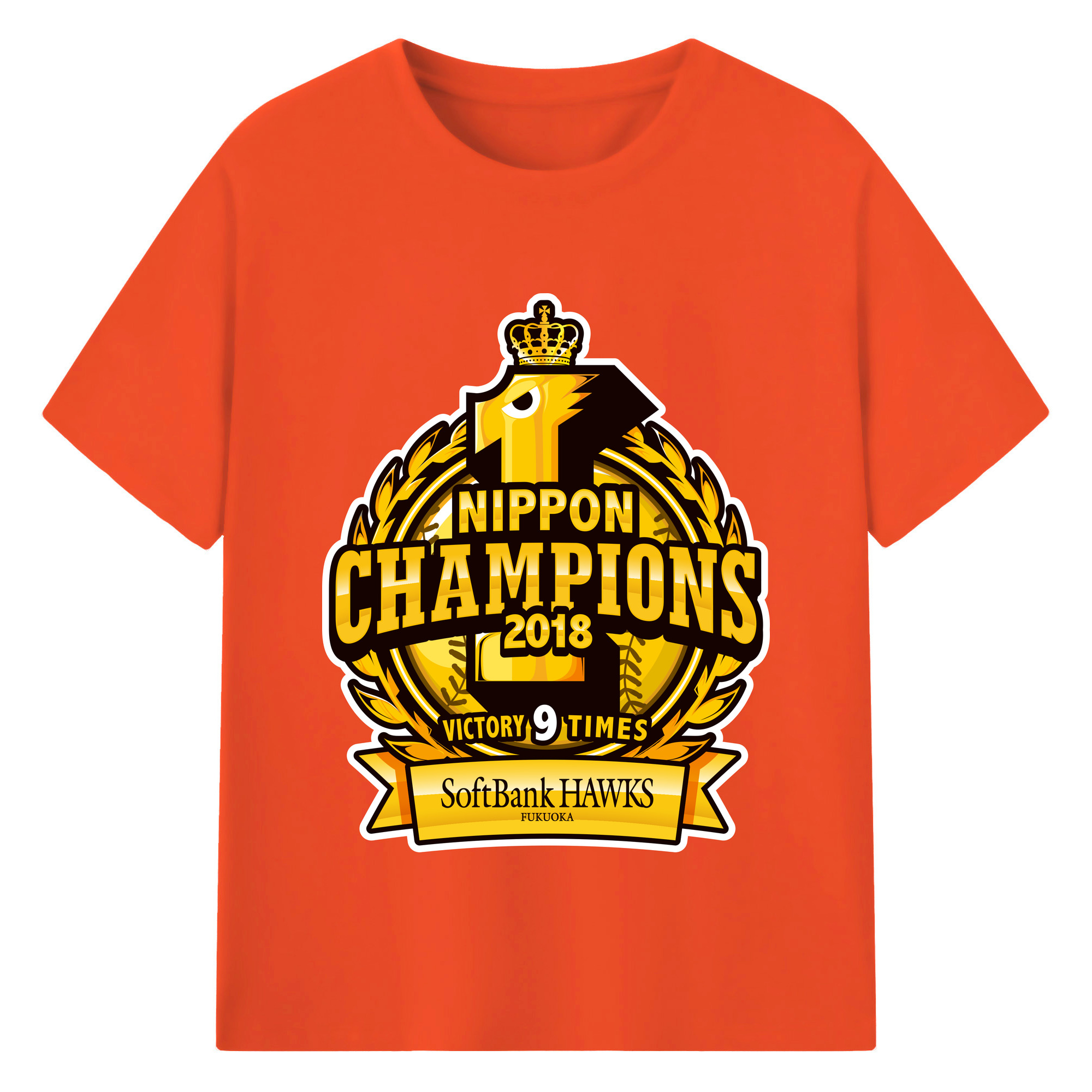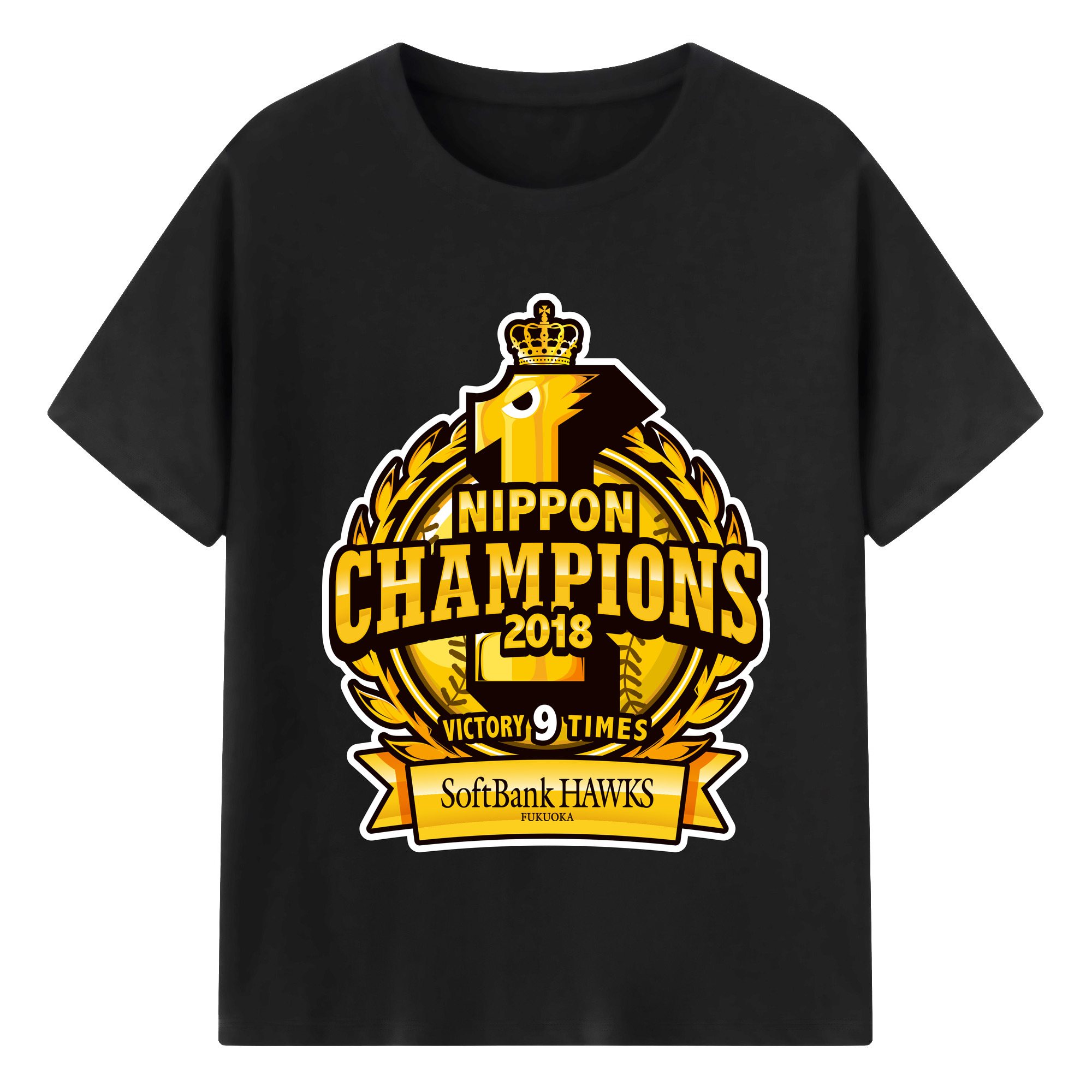 FUKUOKA SOFTBANK HAWKS 2018 NIPPON CHAMPIONS Logo - 綿100% 半袖Tシャツ ・ バックプリント ・ 快適 通気性 ・ 日常使い 散歩 スポーツ用