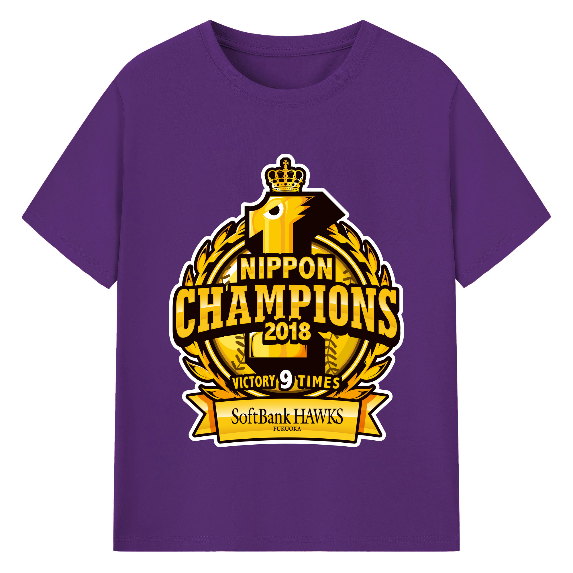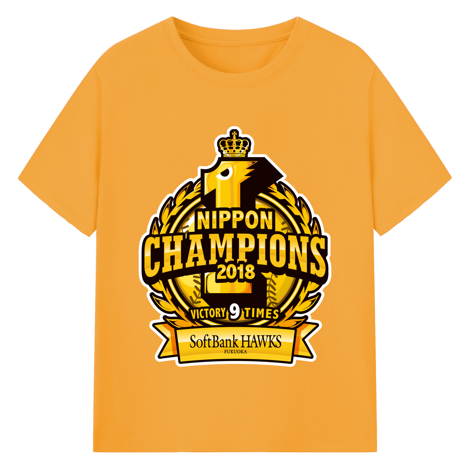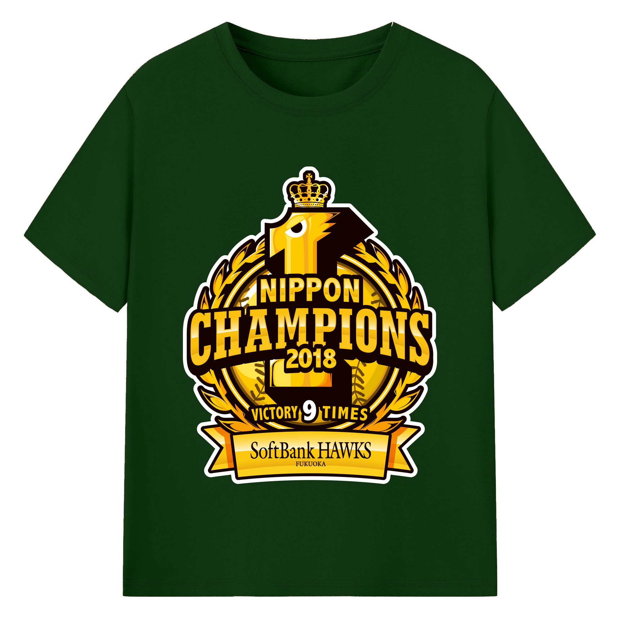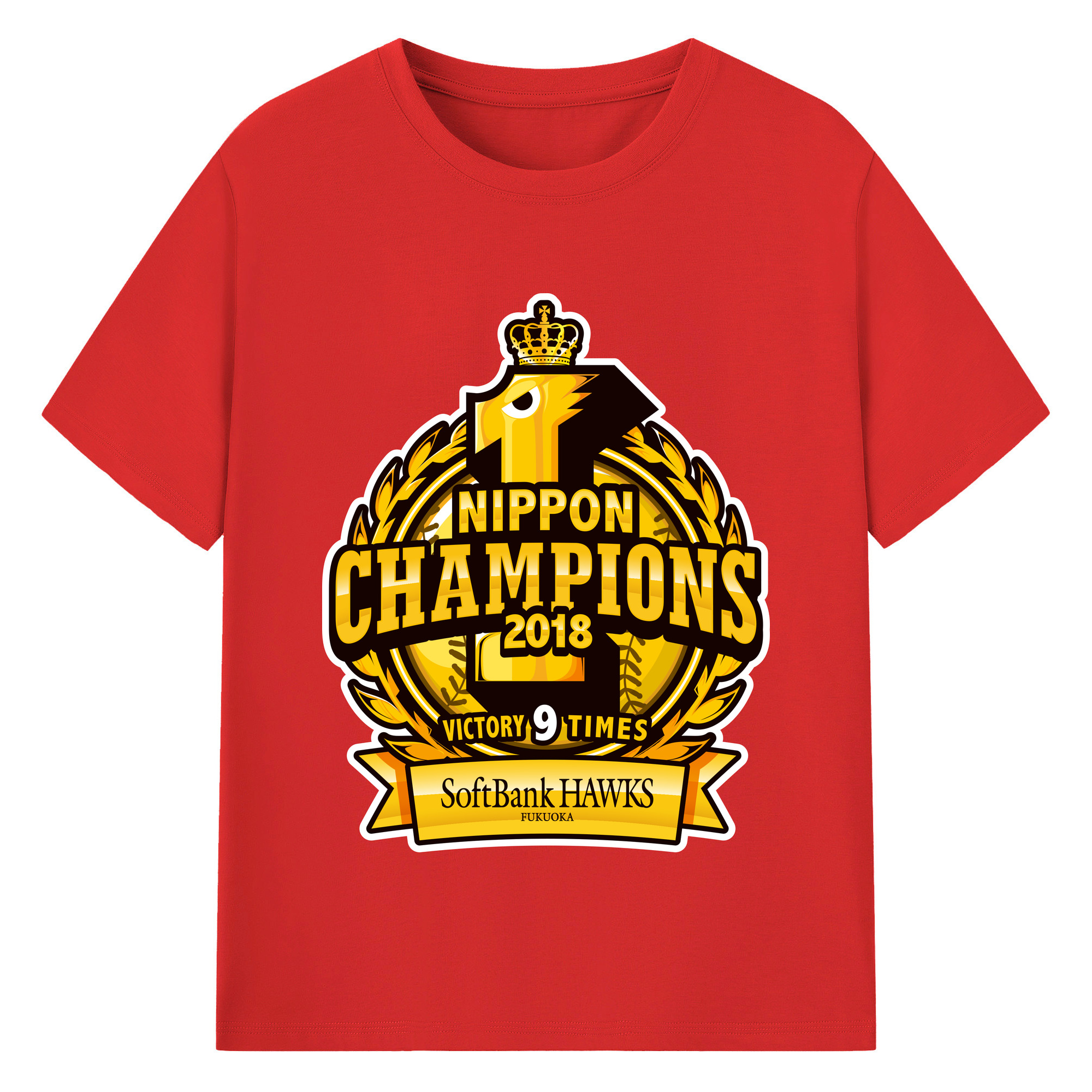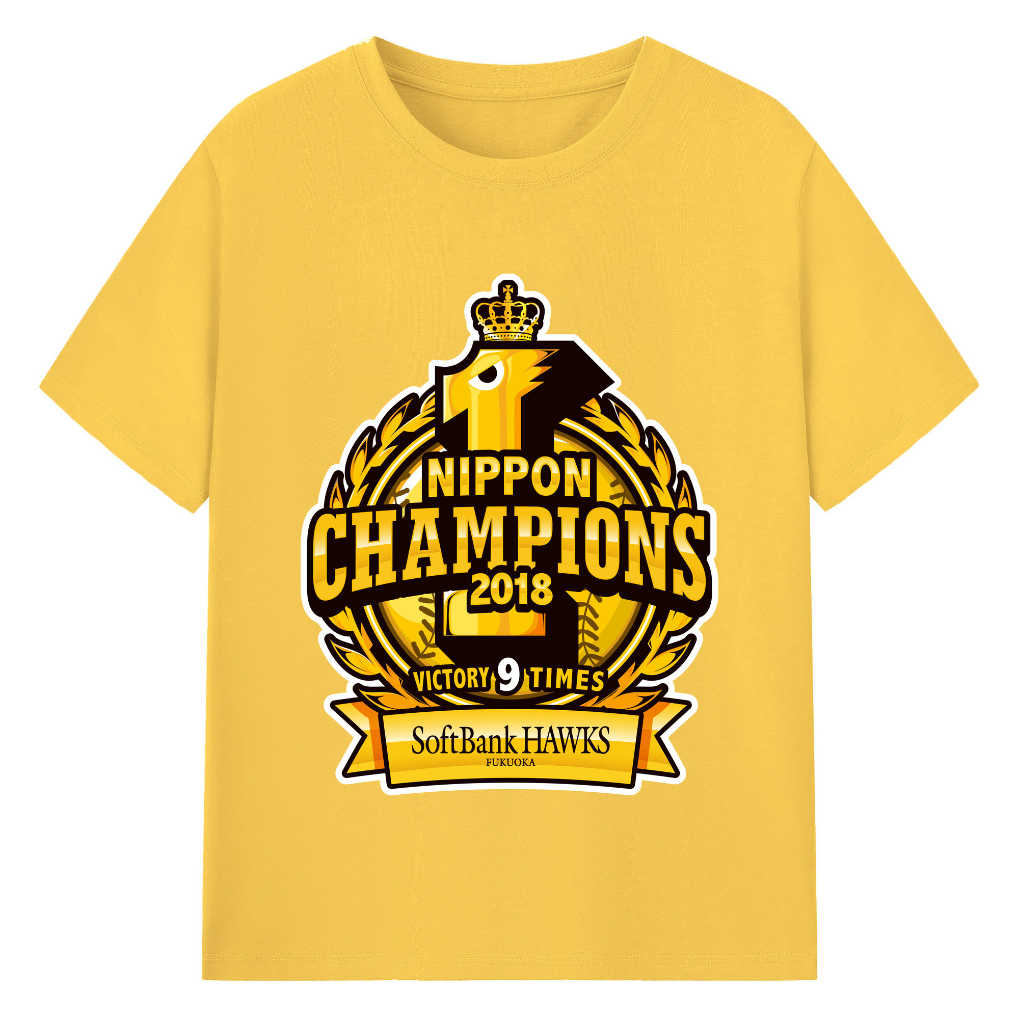 FUKUOKA SOFTBANK HAWKS 2018 NIPPON CHAMPIONS Logo - 綿100% 半袖Tシャツ ・ バックプリント ・ 快適 通気性 ・ 日常使い 散歩 スポーツ用