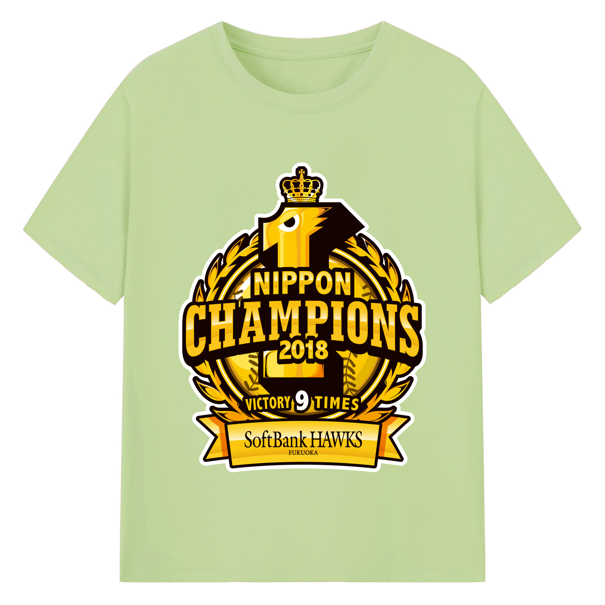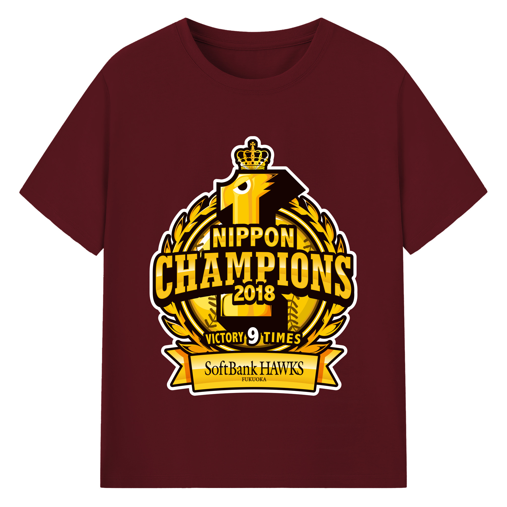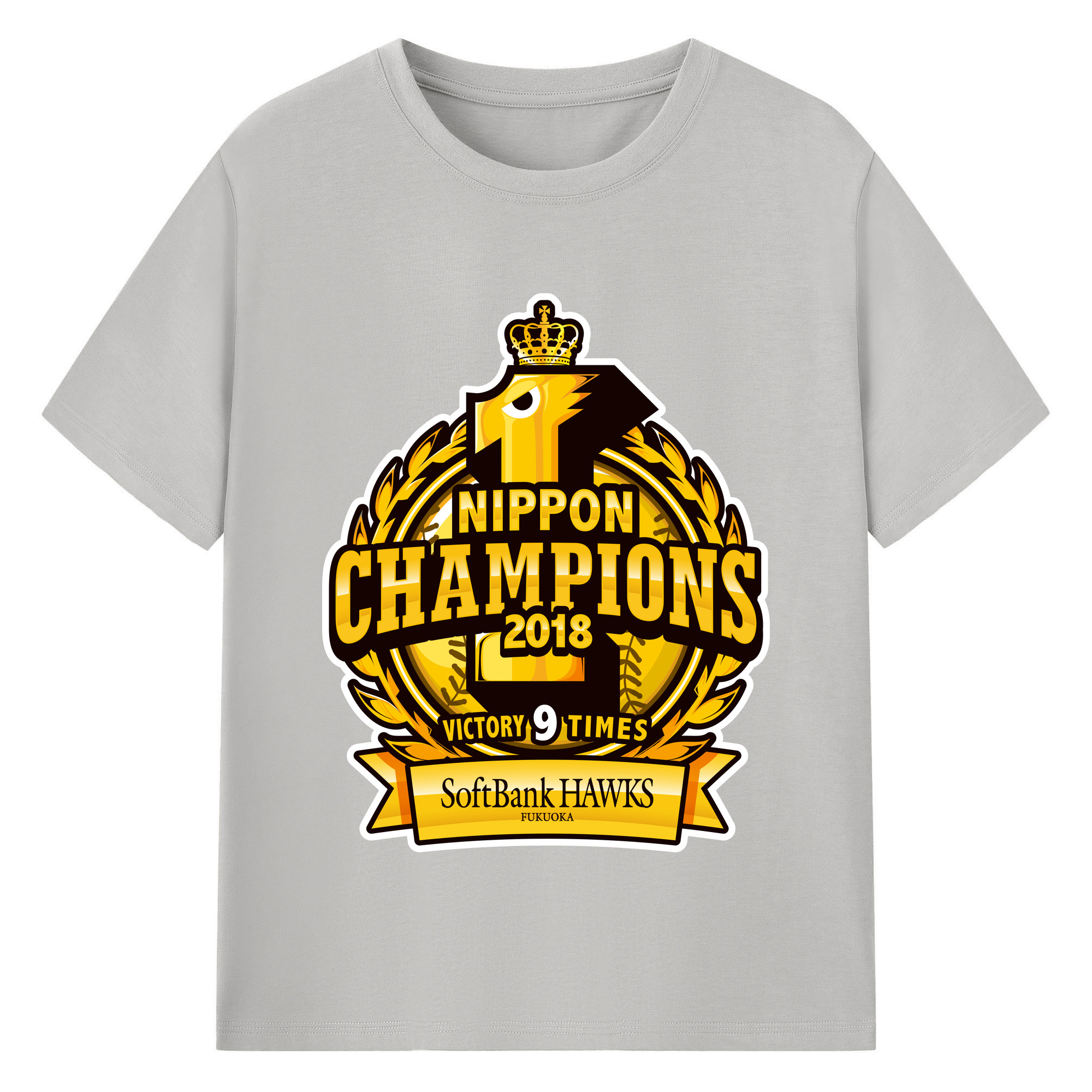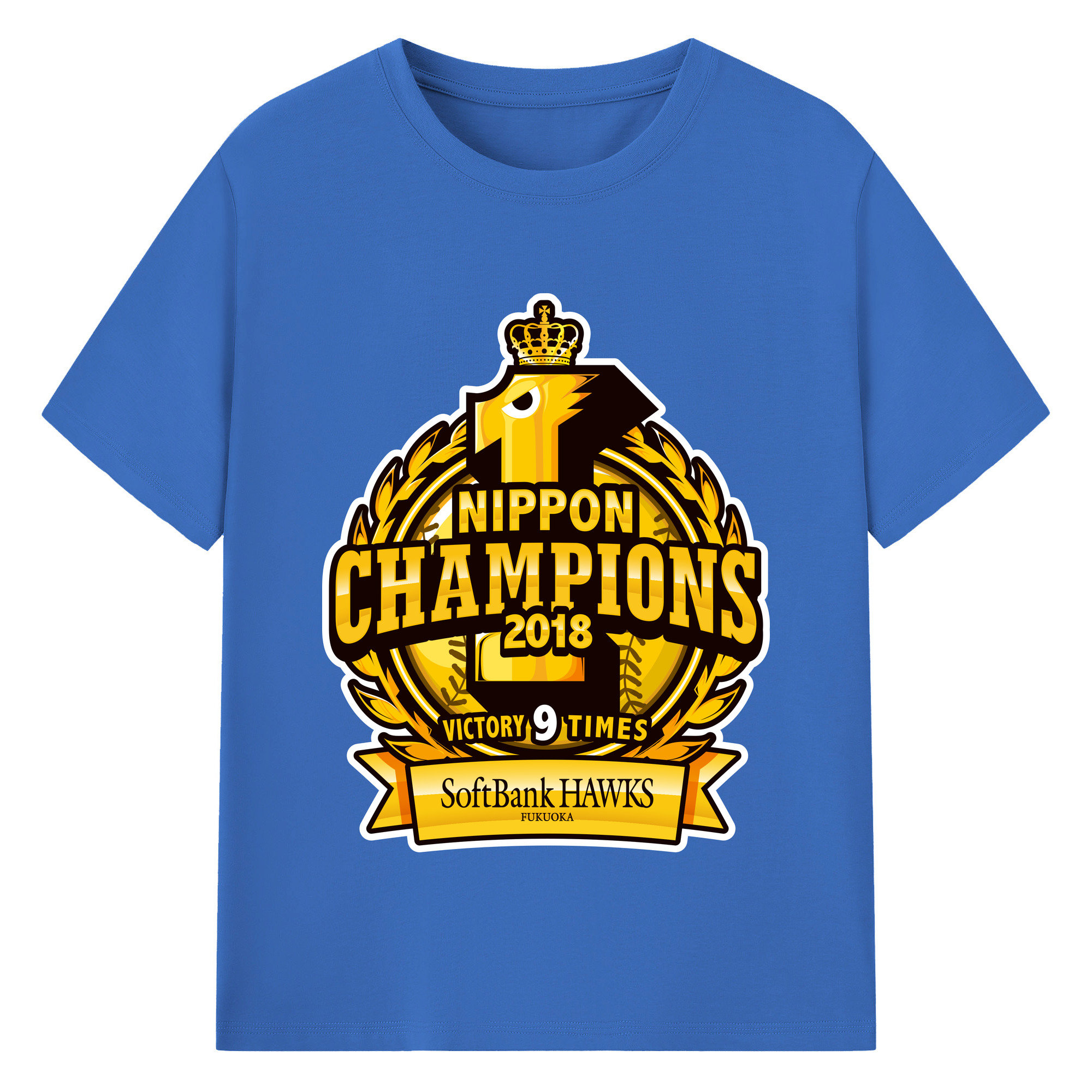 FUKUOKA SOFTBANK HAWKS 2018 NIPPON CHAMPIONS Logo - 綿100% 半袖Tシャツ ・ バックプリント ・ 快適 通気性 ・ 日常使い 散歩 スポーツ用