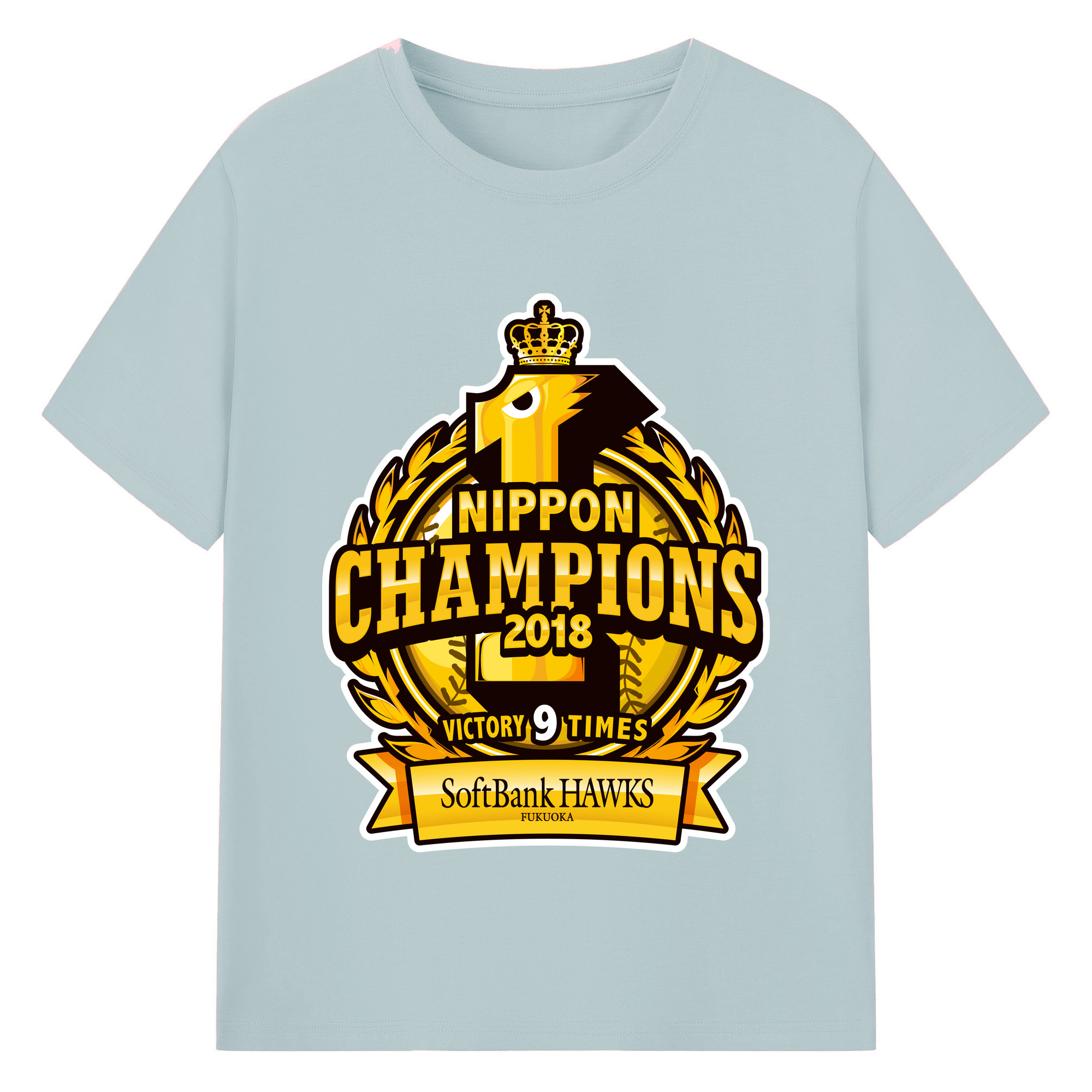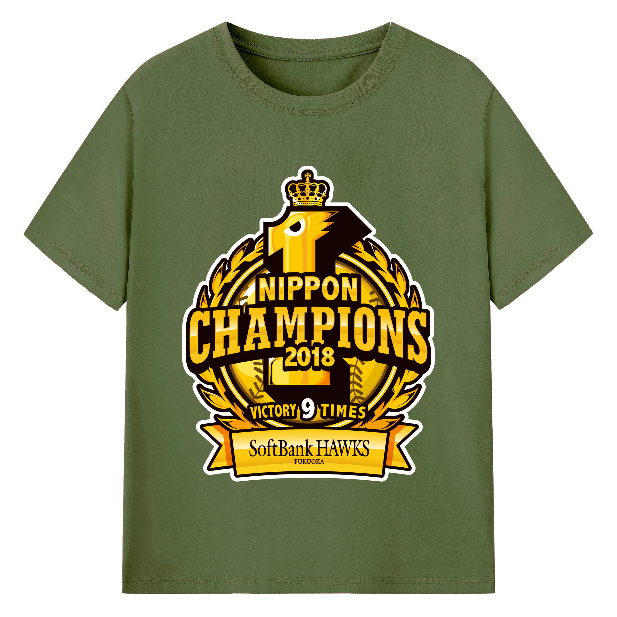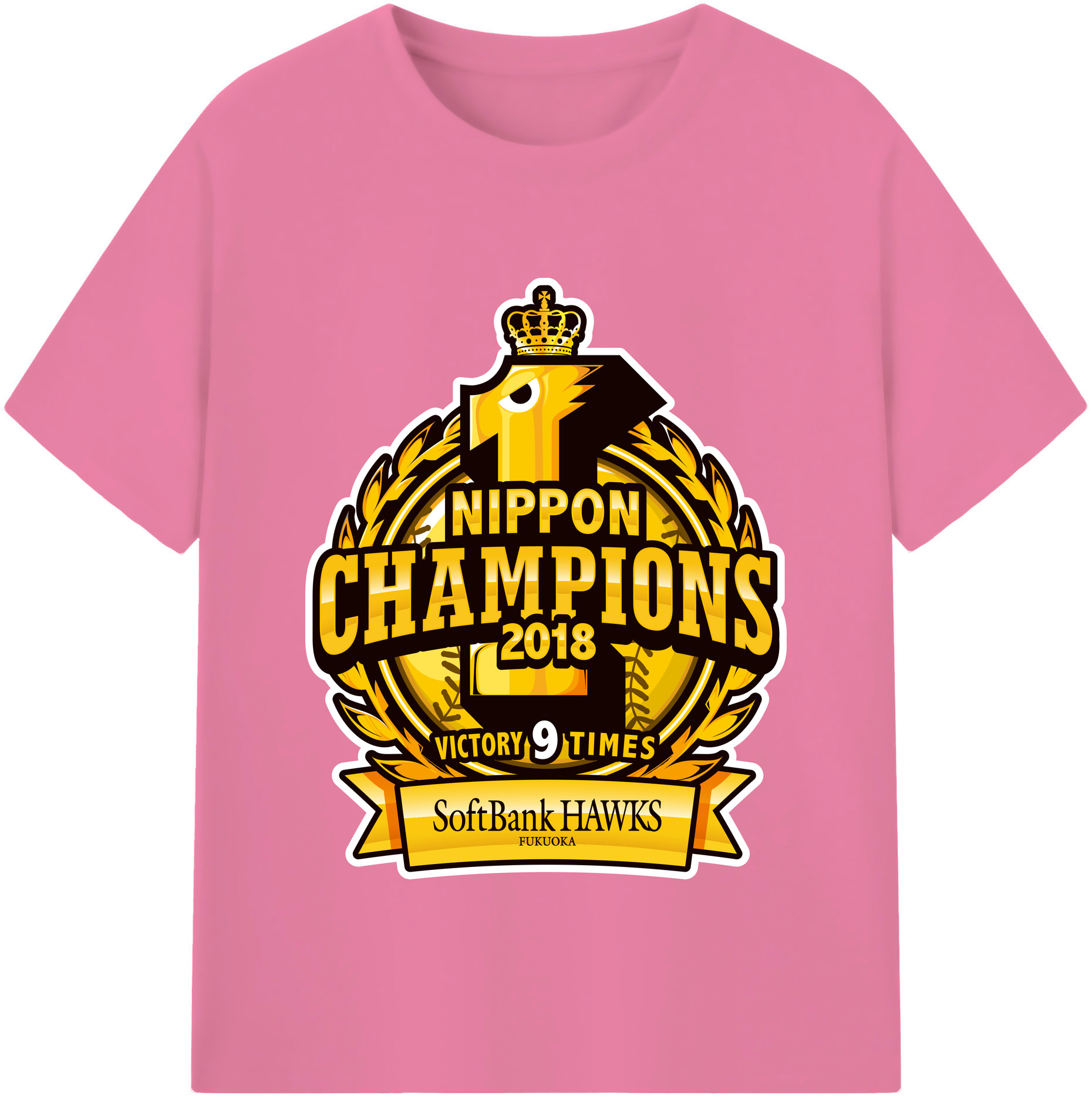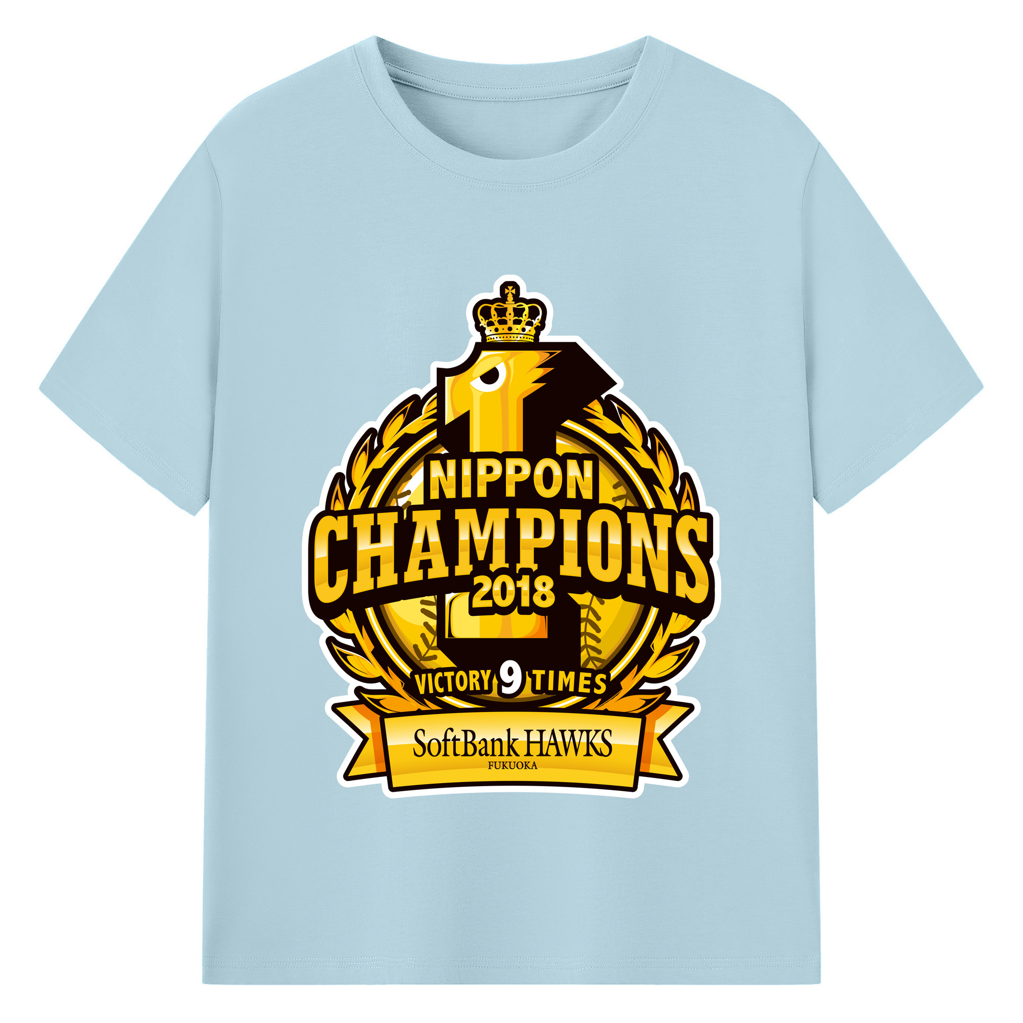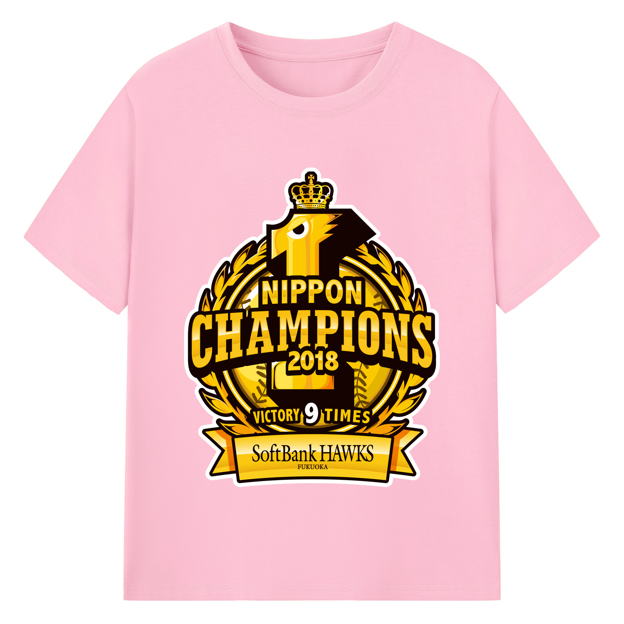 FUKUOKA SOFTBANK HAWKS 2018 NIPPON CHAMPIONS Logo - 綿100% 半袖Tシャツ ・ バックプリント ・ 快適 通気性 ・ 日常使い 散歩 スポーツ用