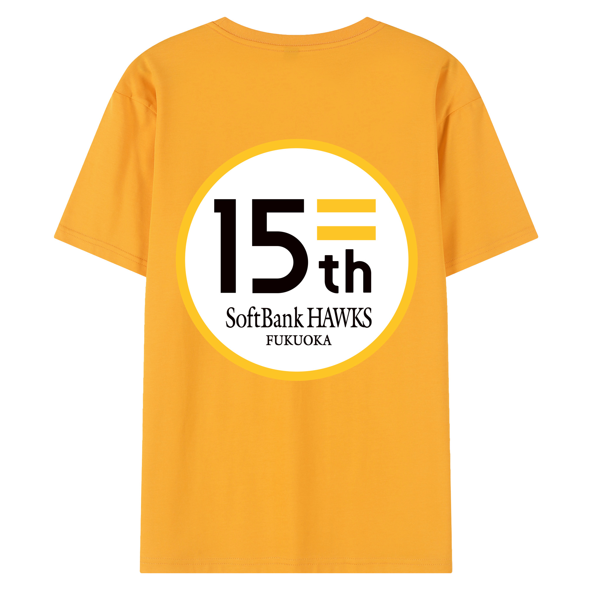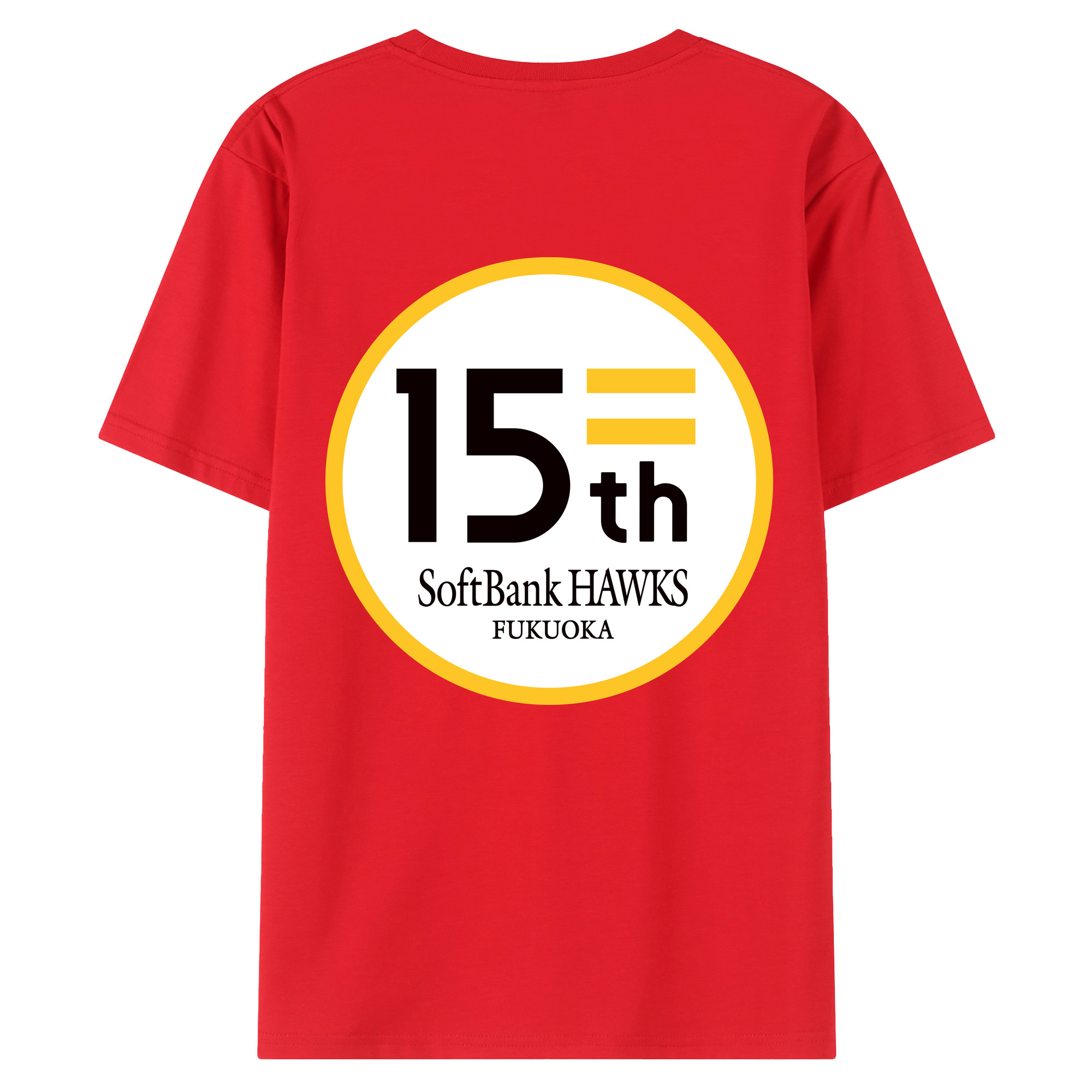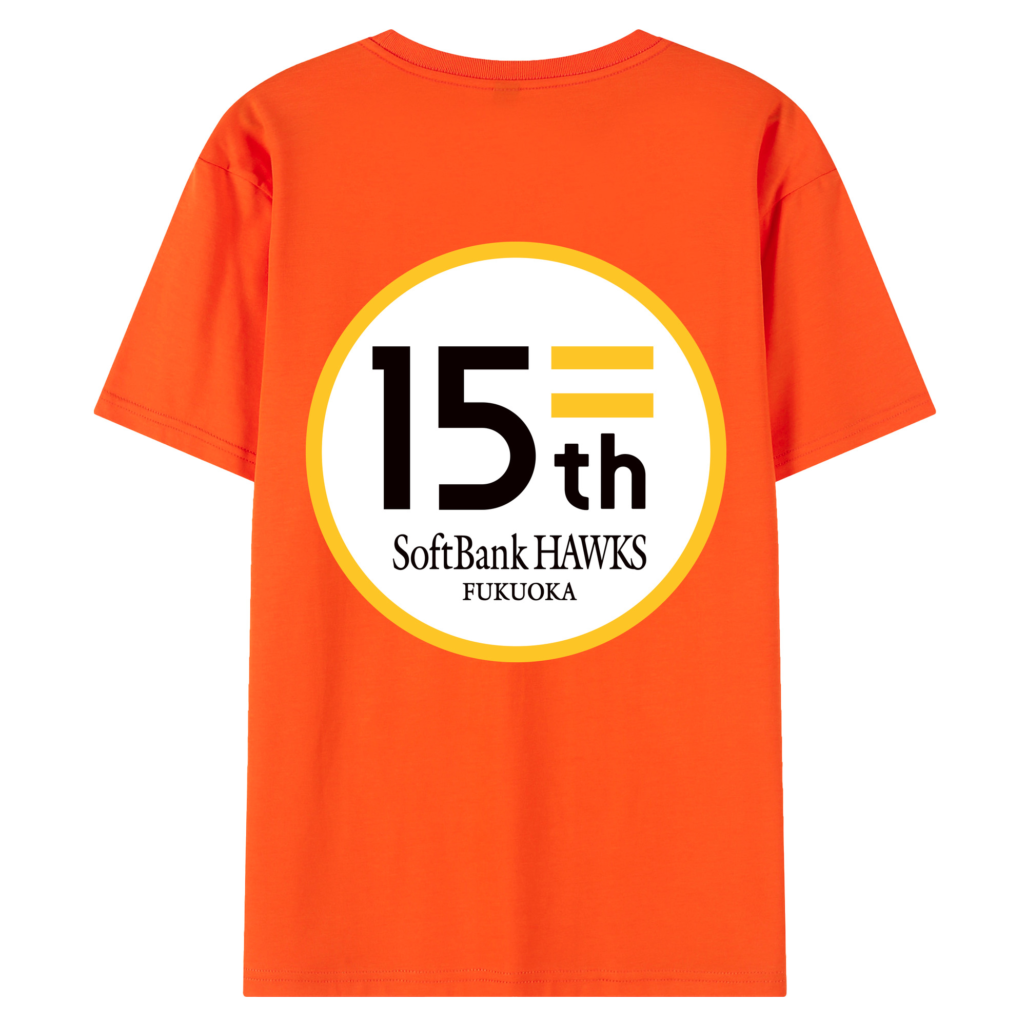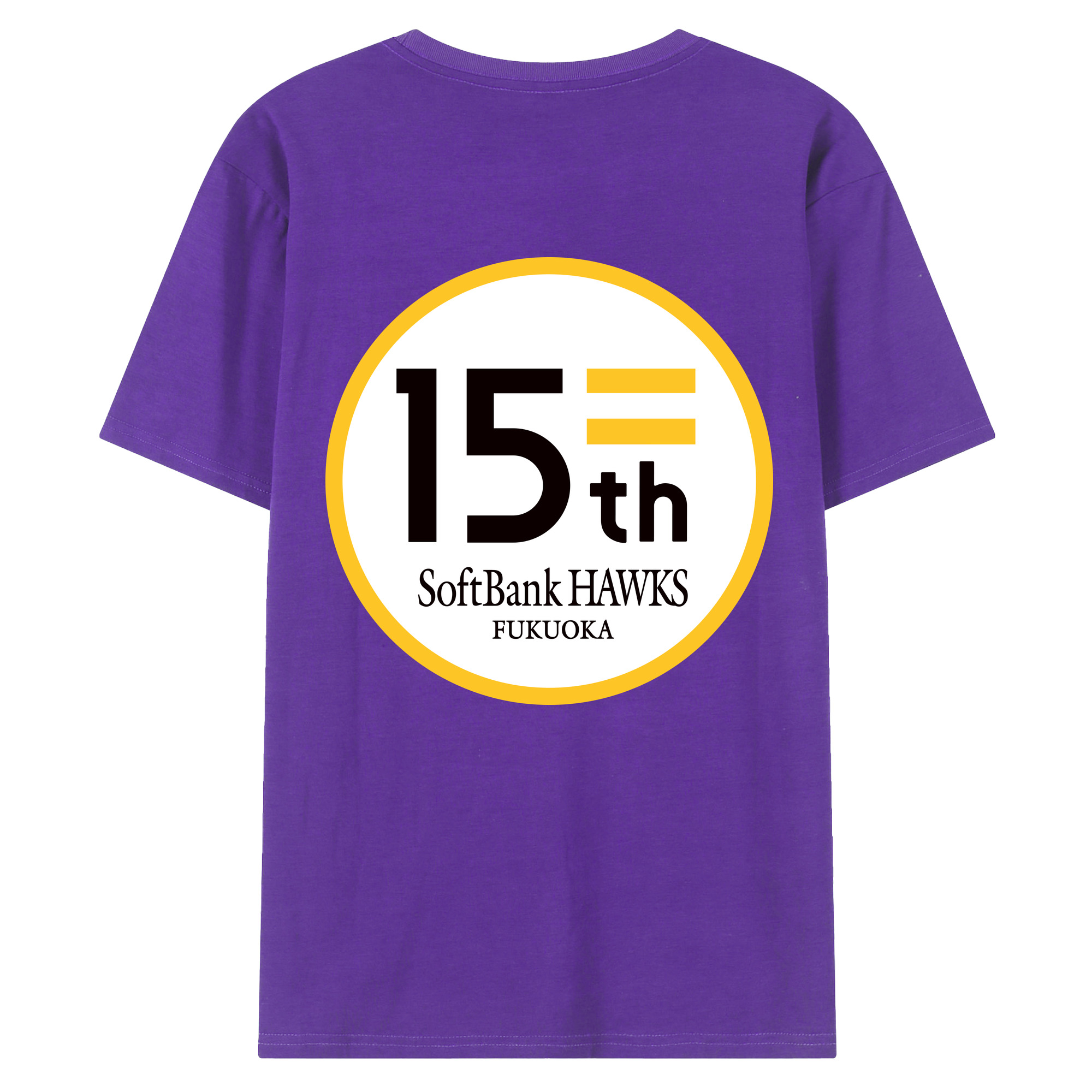 FUKUOKA SOFTBANK HAWKS 15TH ANNIVERSARY Logo - 綿100% 半袖Tシャツ ・ バックプリント ・ 快適 通気性 ・ 日常使い 散歩 スポーツ用