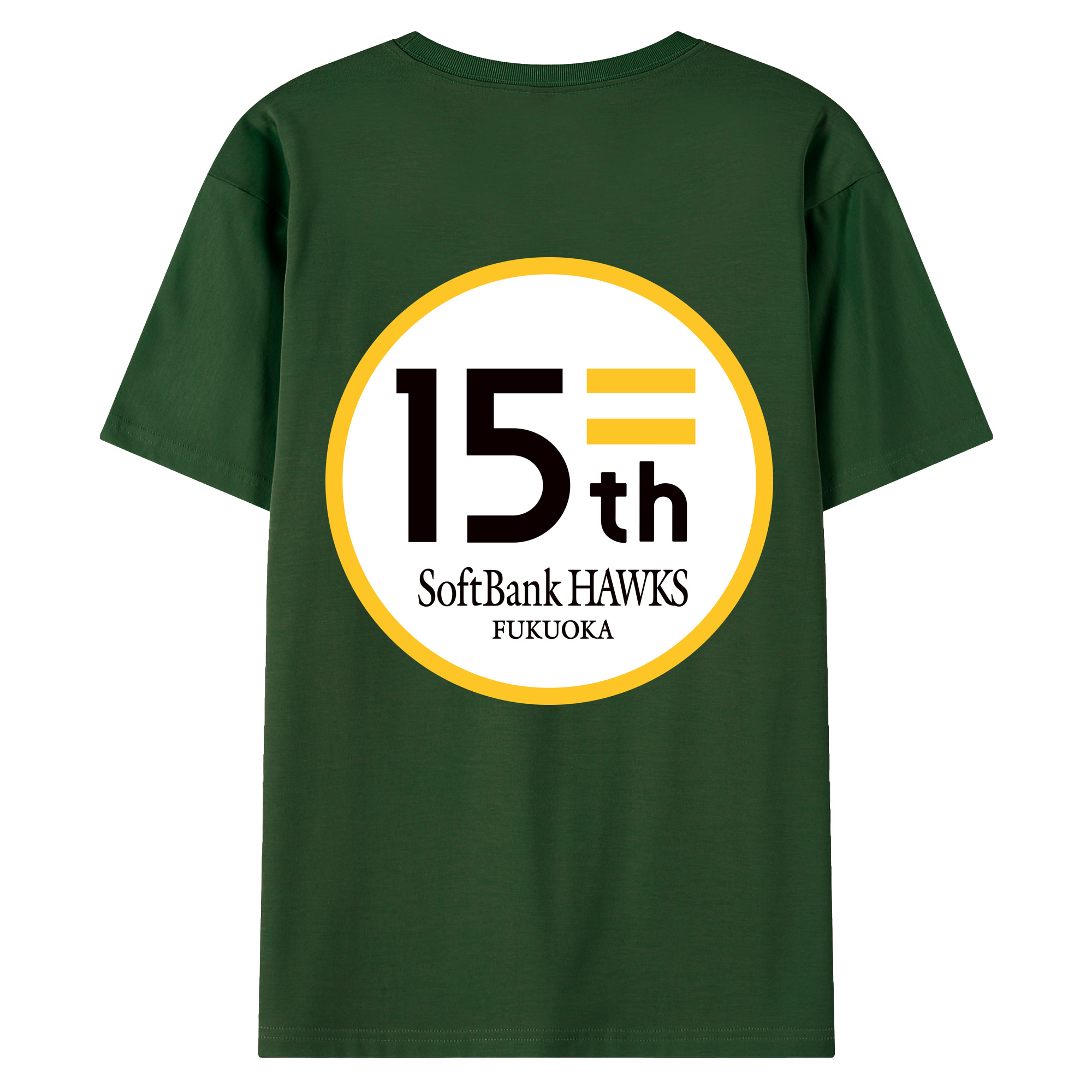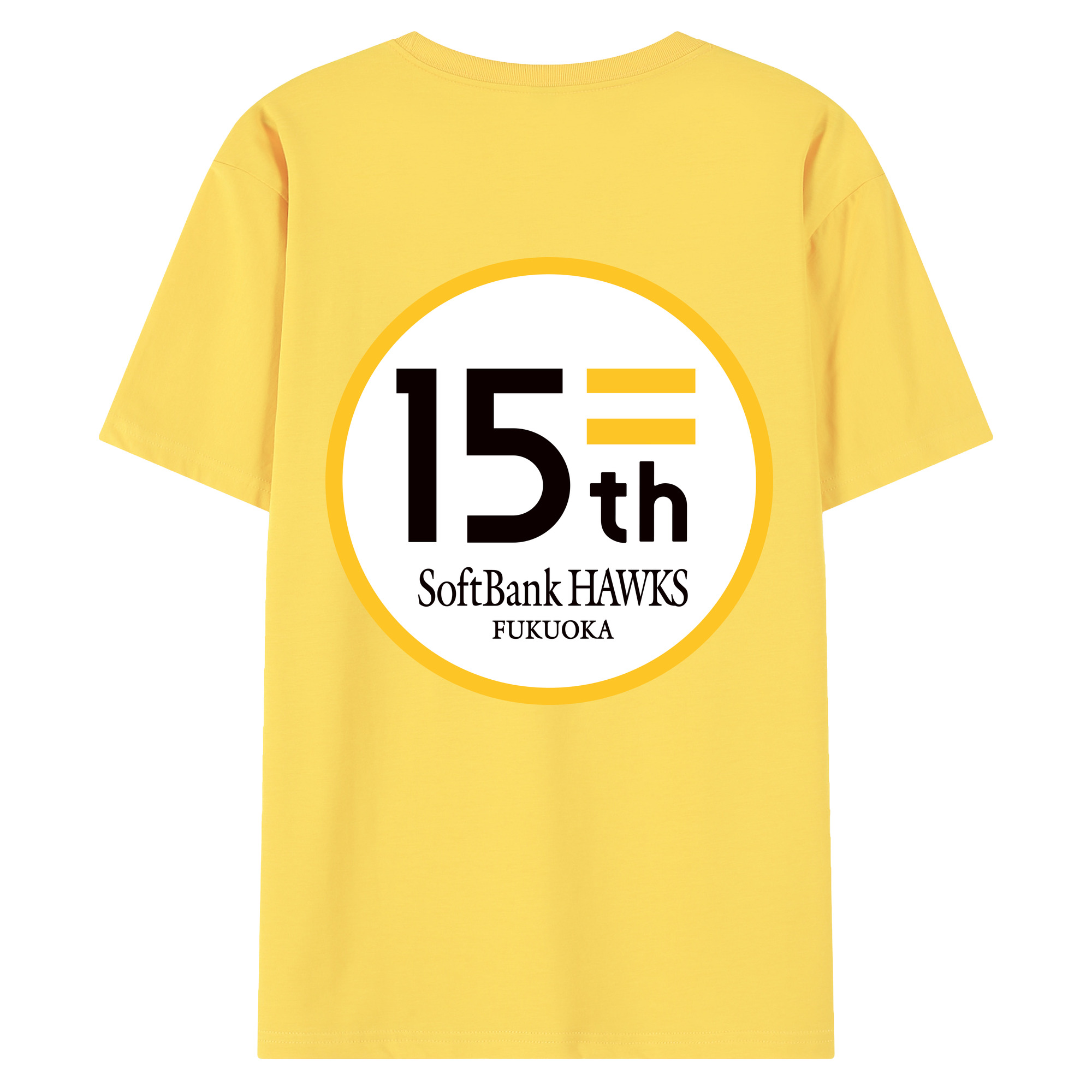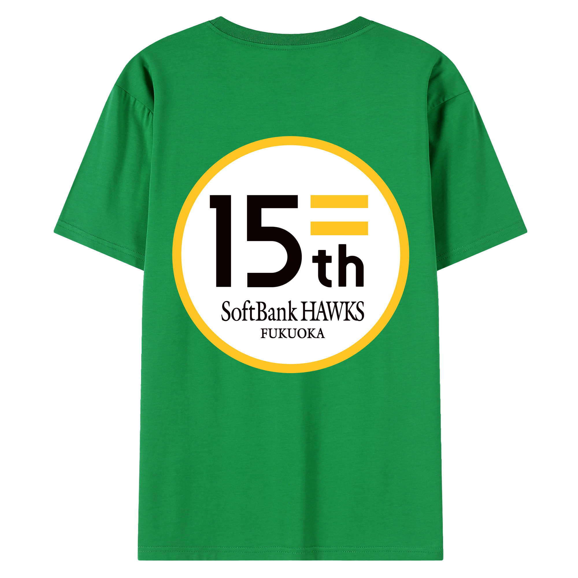 FUKUOKA SOFTBANK HAWKS 15TH ANNIVERSARY Logo - 綿100% 半袖Tシャツ ・ バックプリント ・ 快適 通気性 ・ 日常使い 散歩 スポーツ用