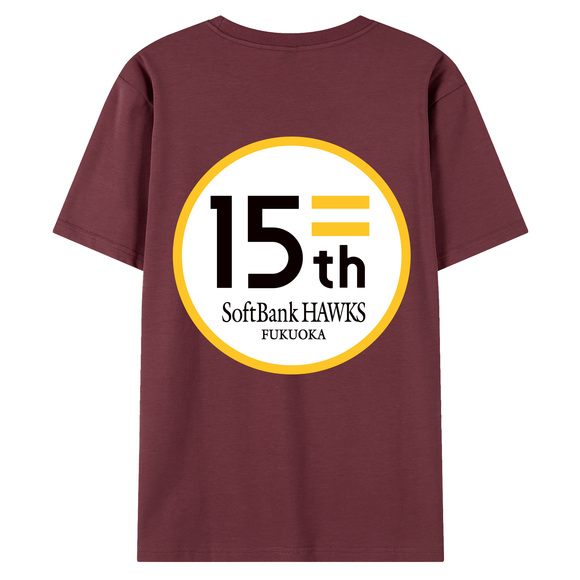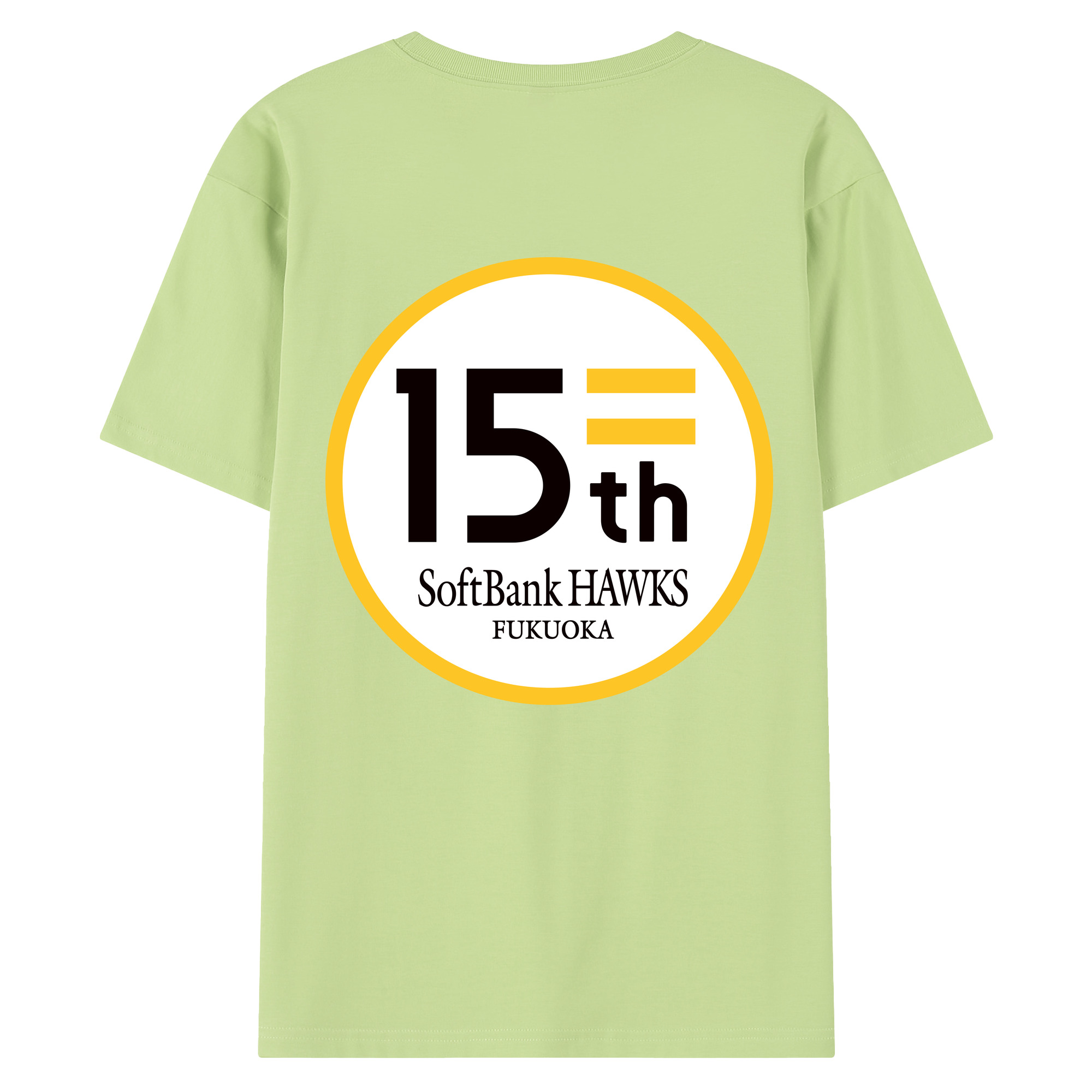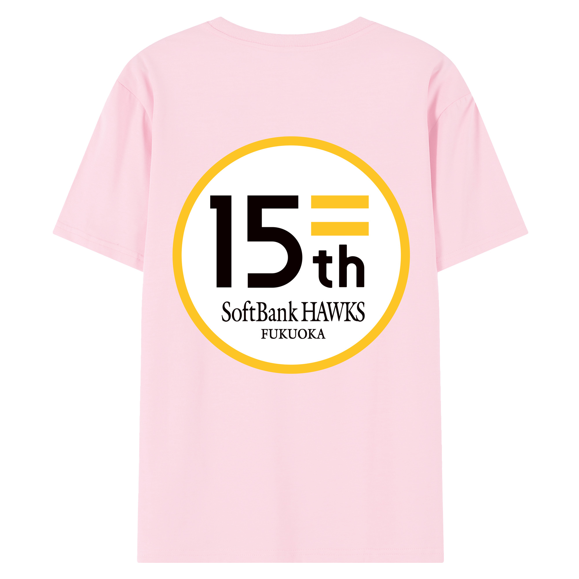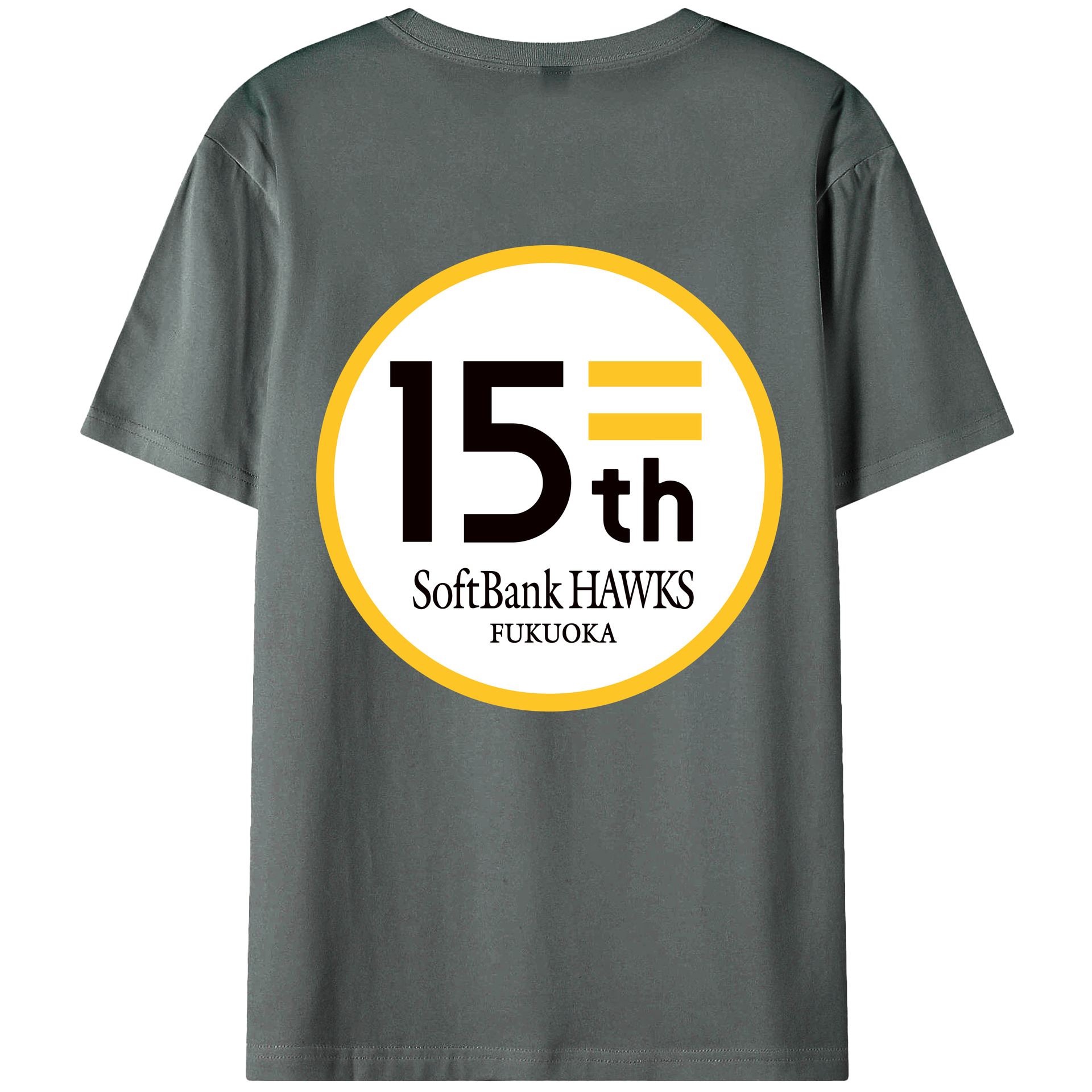 FUKUOKA SOFTBANK HAWKS 15TH ANNIVERSARY Logo - 綿100% 半袖Tシャツ ・ バックプリント ・ 快適 通気性 ・ 日常使い 散歩 スポーツ用