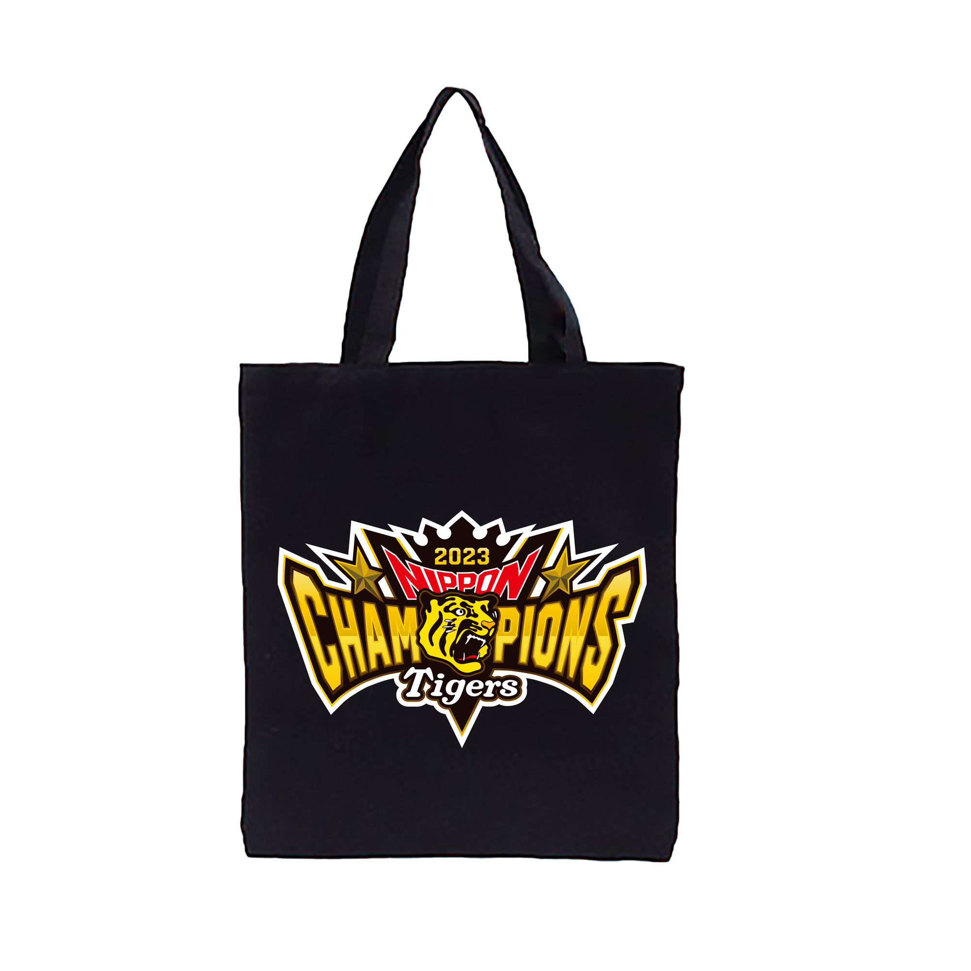 HANSHIN TIGERS 2023 NIPPON CHAMPIONS ORIGINAL EMBLEM APPLICATION BACKGROUND Logo - 縦型キャンバス手提げバッグ(トートバッグ) ・ キャンバス素材 ・ ショッピング用 ・ 軽量 丈夫 お手入れ簡単
