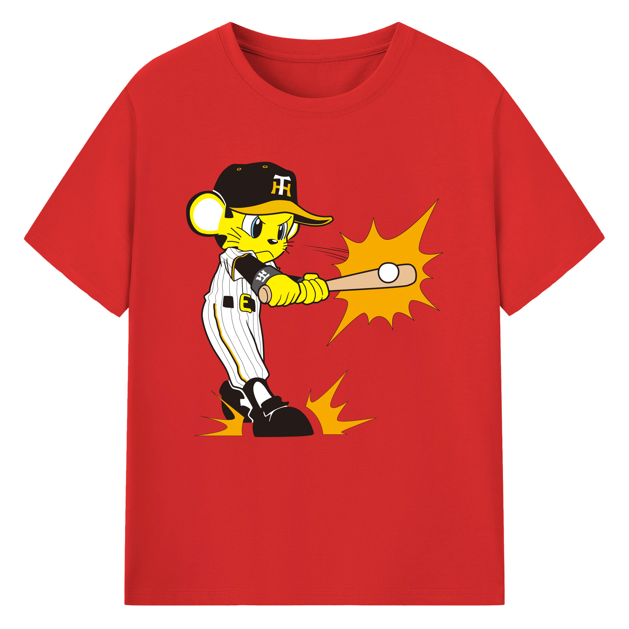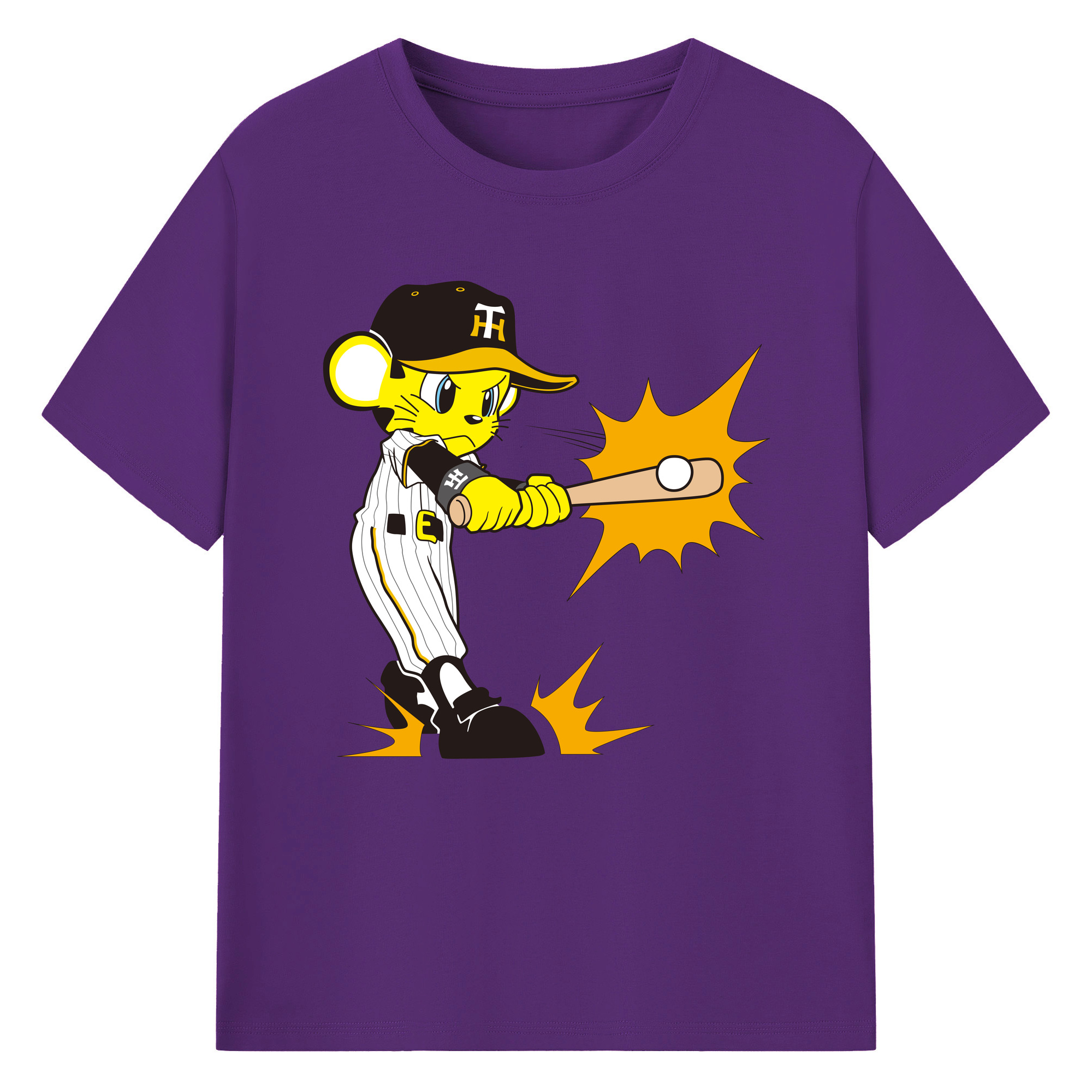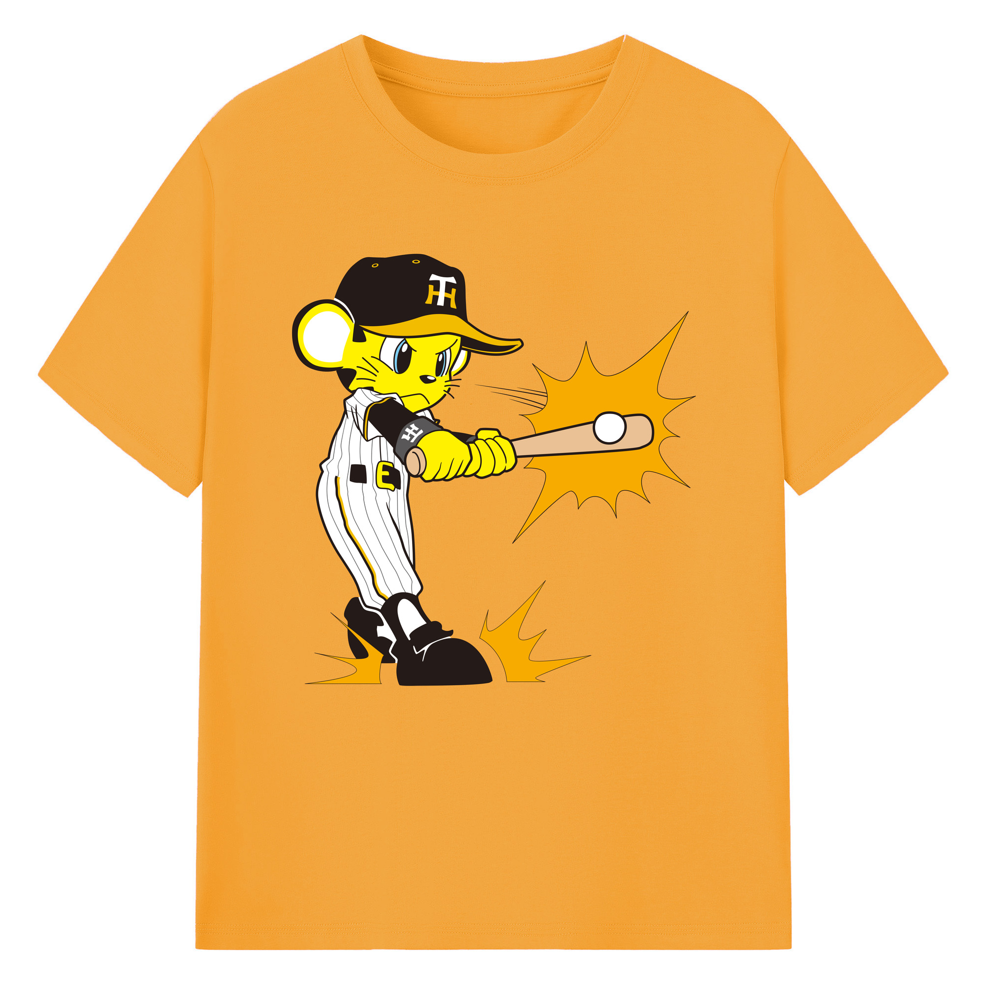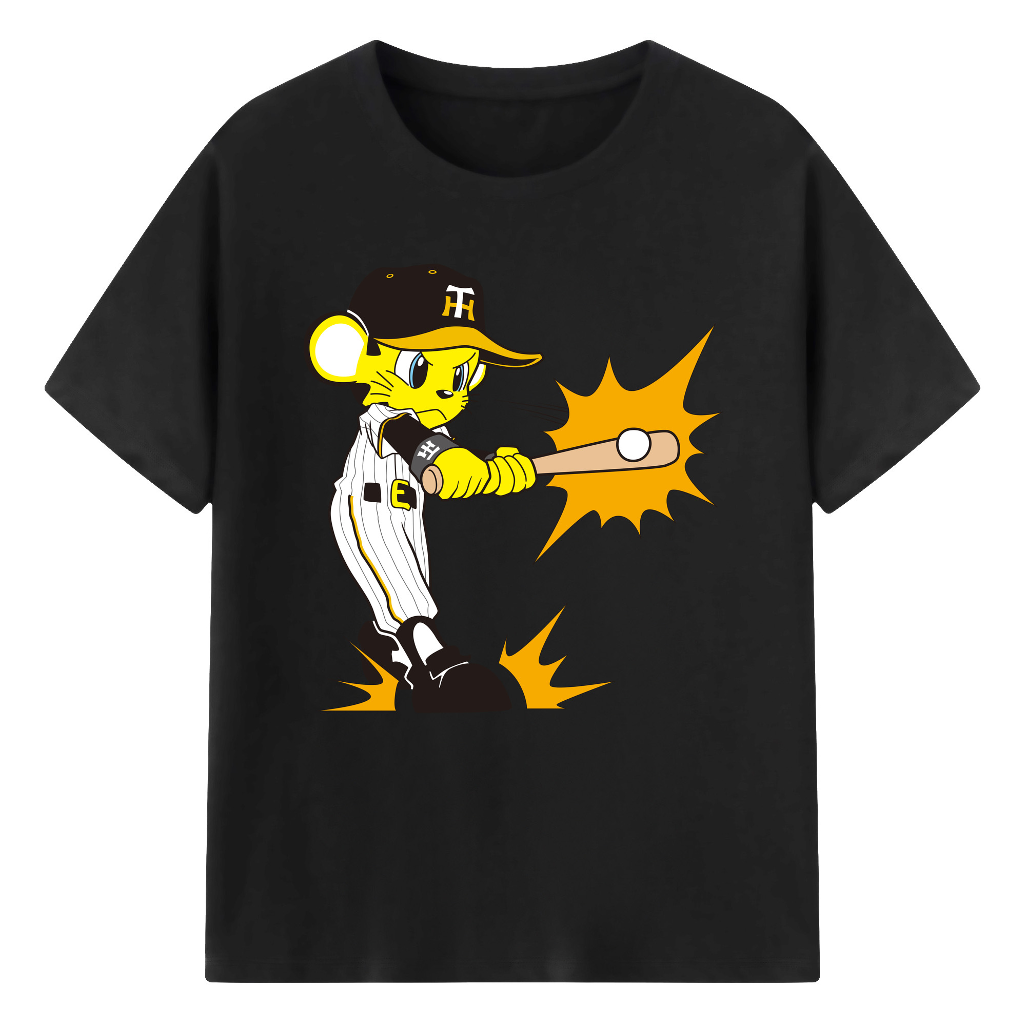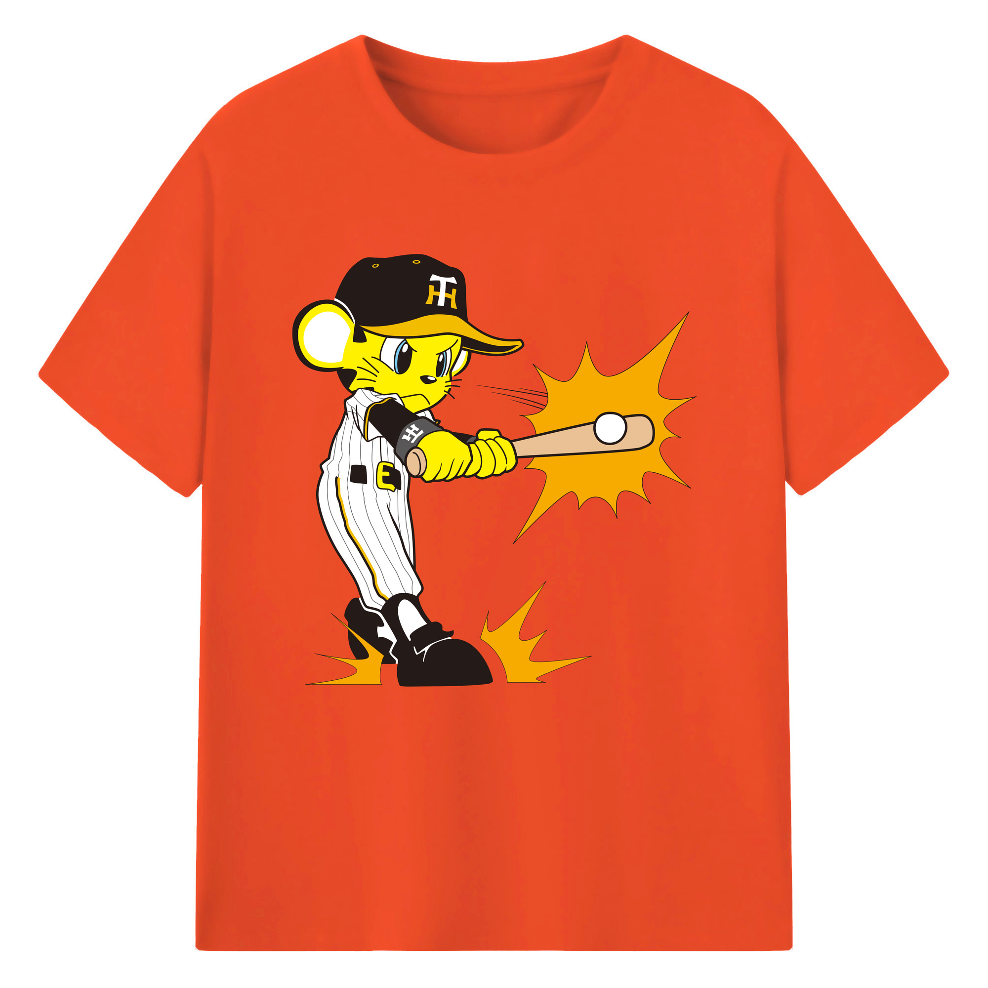 HANSHIN TIGERS MASCOT TO-LUCKY APPLICATION HITTING Logo - 綿100% 半袖Tシャツ ・ フロントプリント ・ 快適 通気性 ・ 日常使い 散歩 スポーツ用
