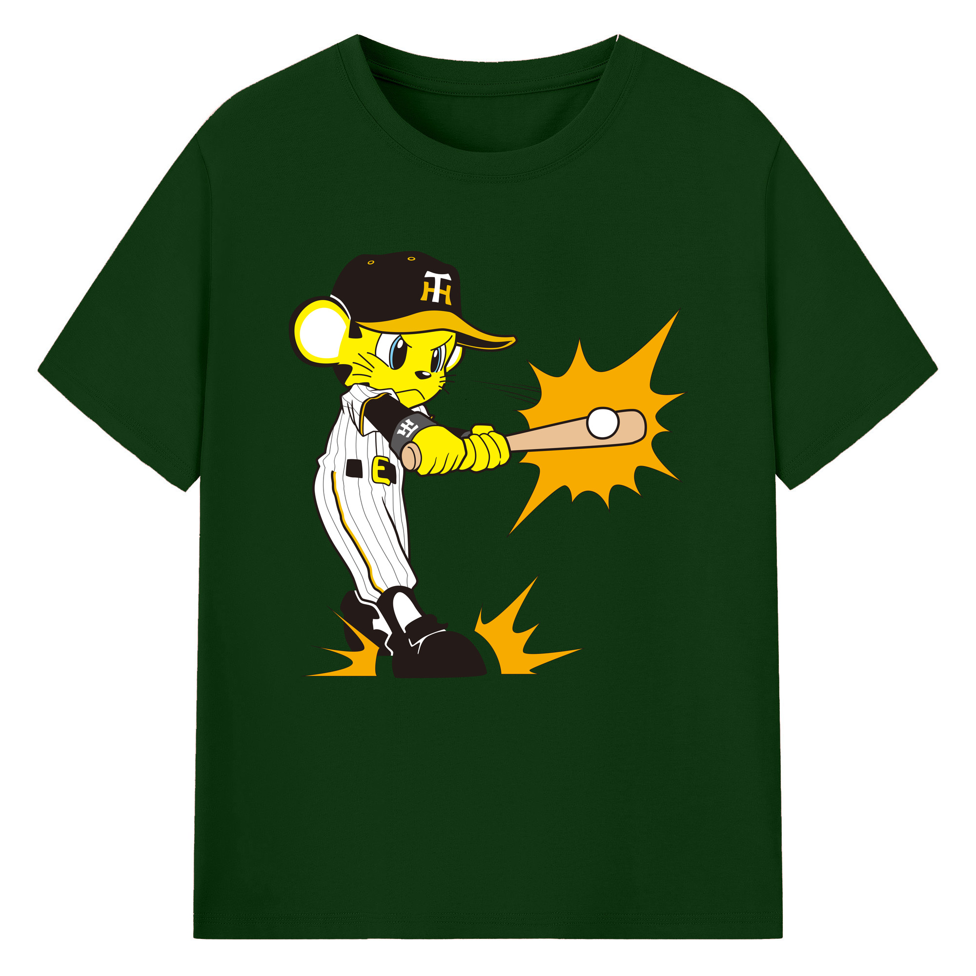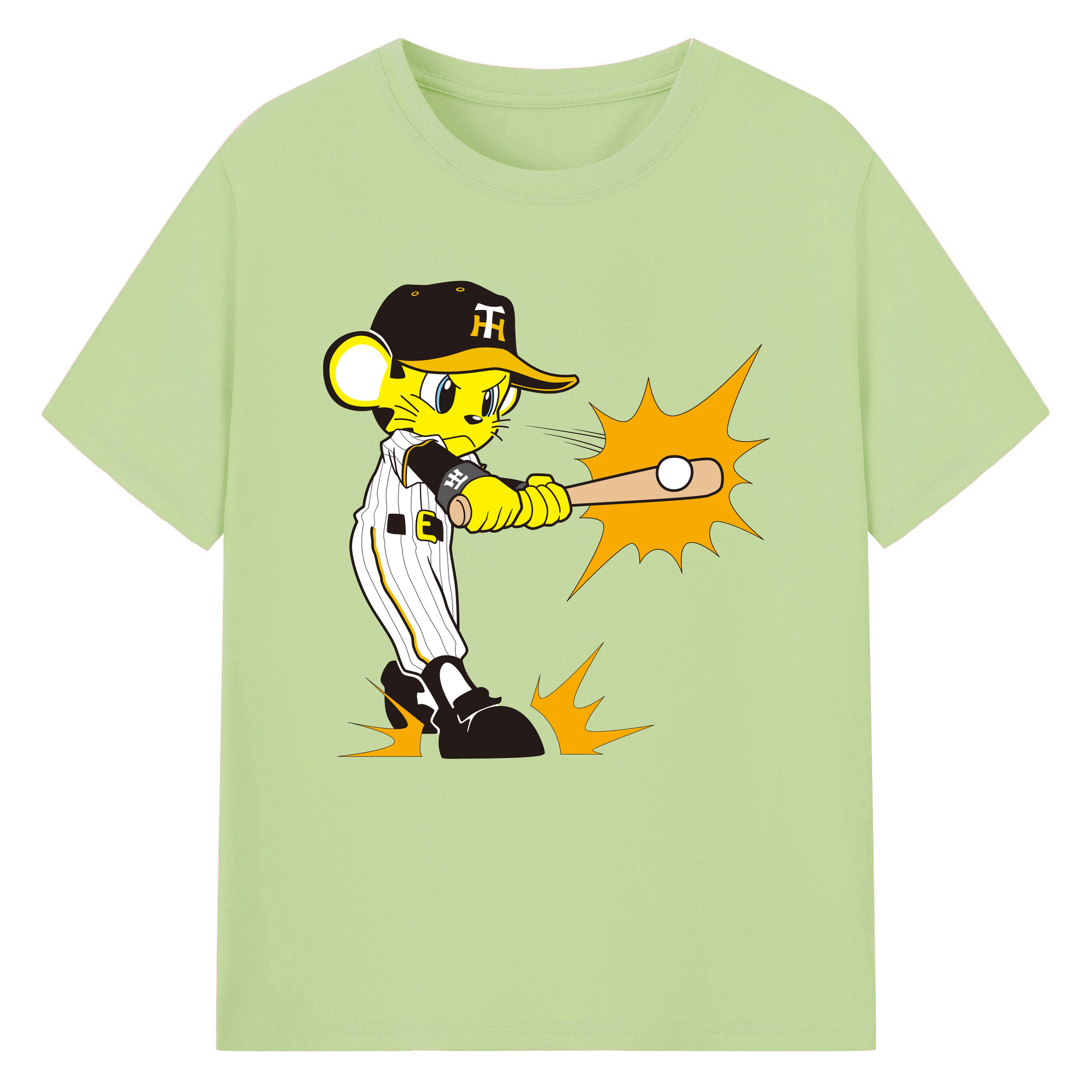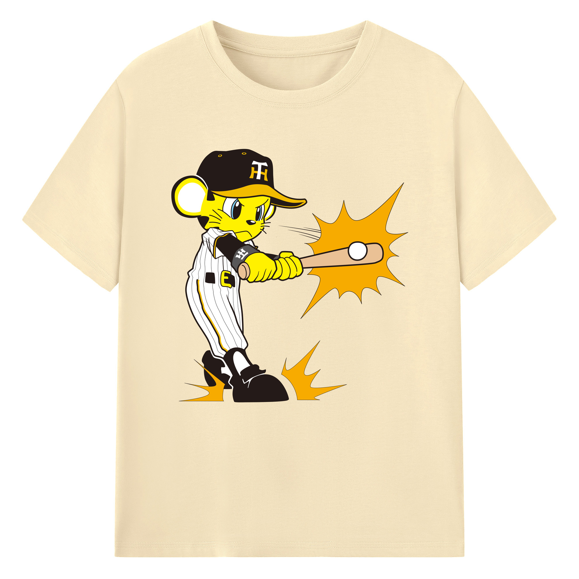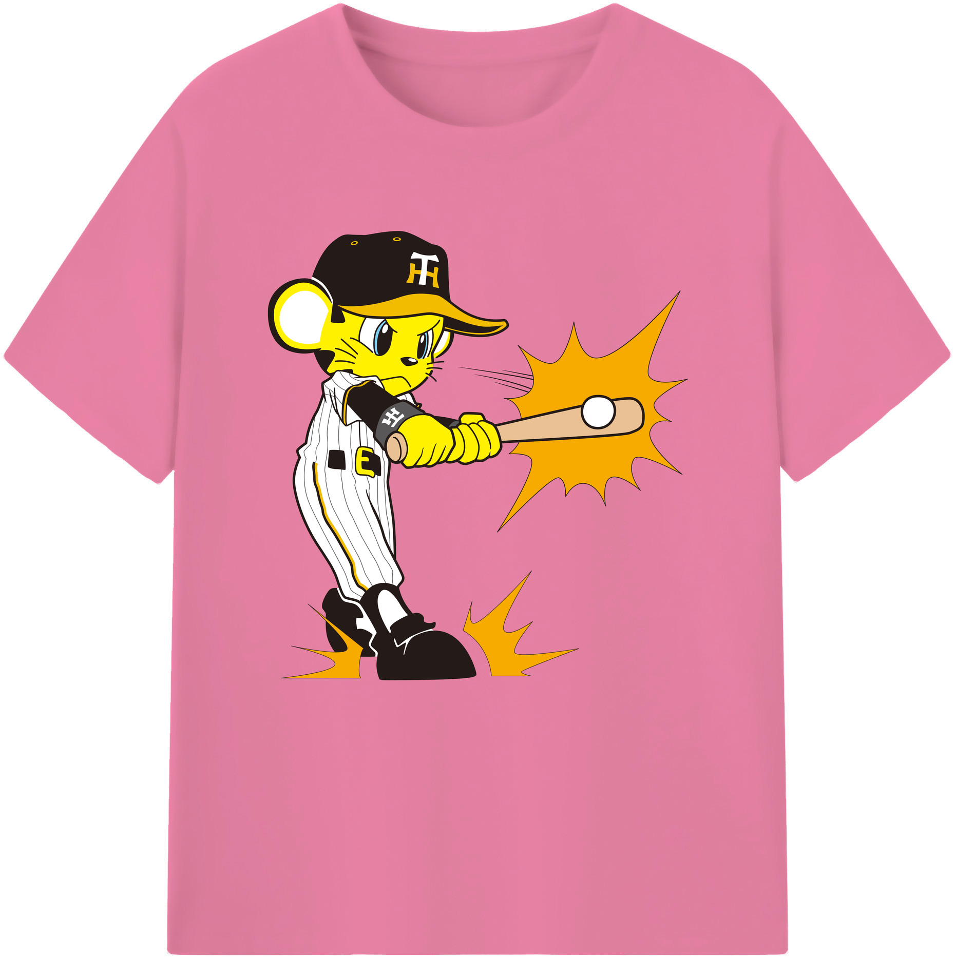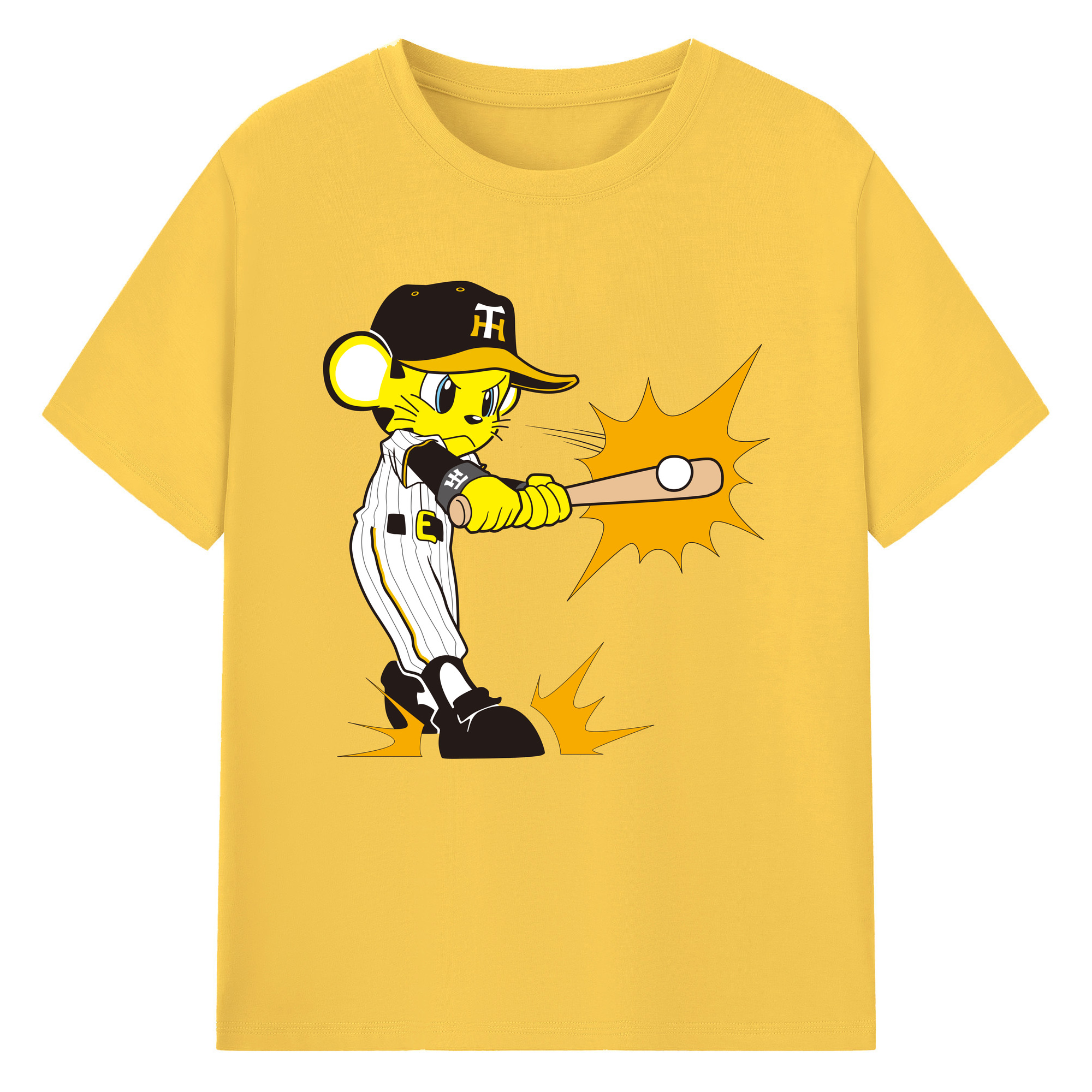 HANSHIN TIGERS MASCOT TO-LUCKY APPLICATION HITTING Logo - 綿100% 半袖Tシャツ ・ フロントプリント ・ 快適 通気性 ・ 日常使い 散歩 スポーツ用