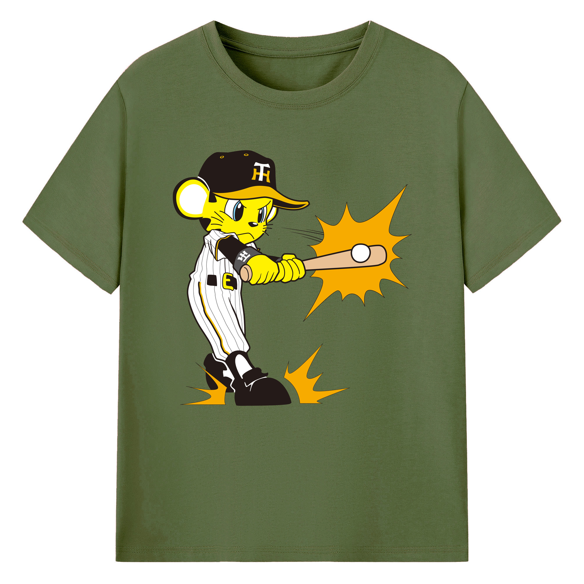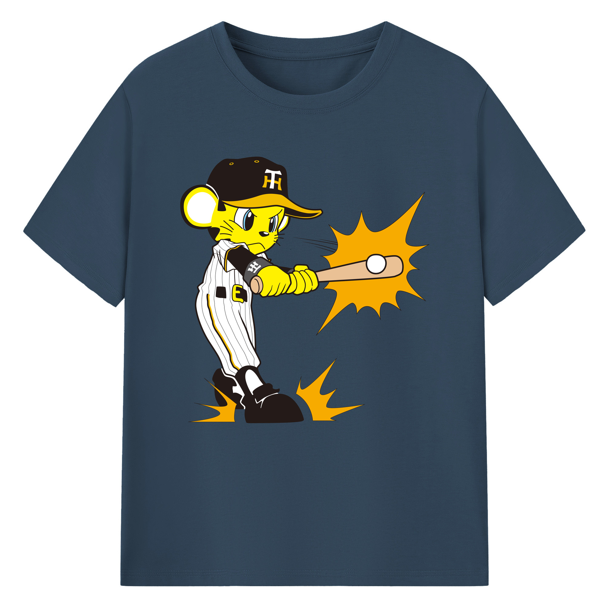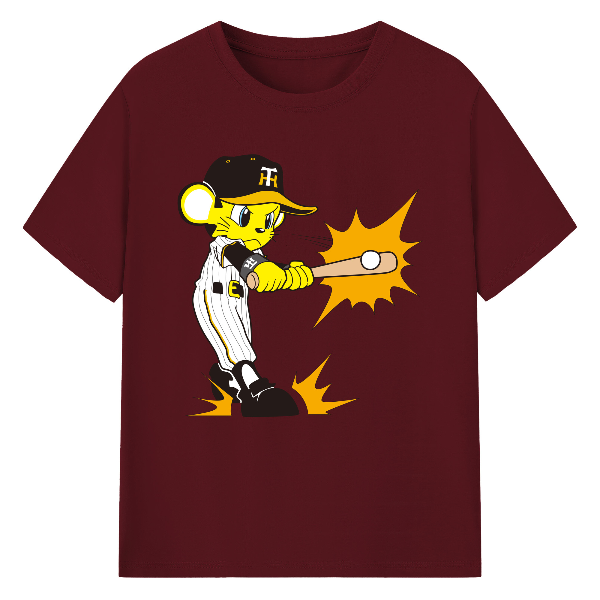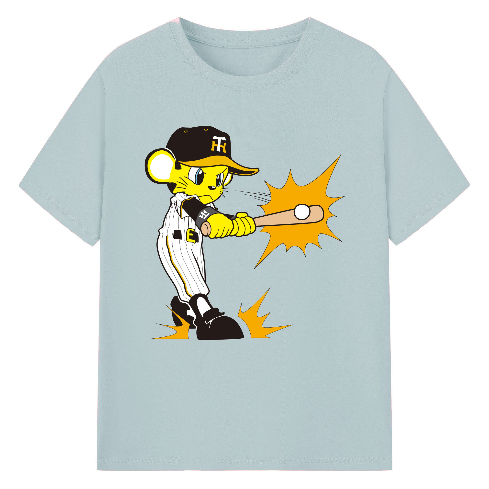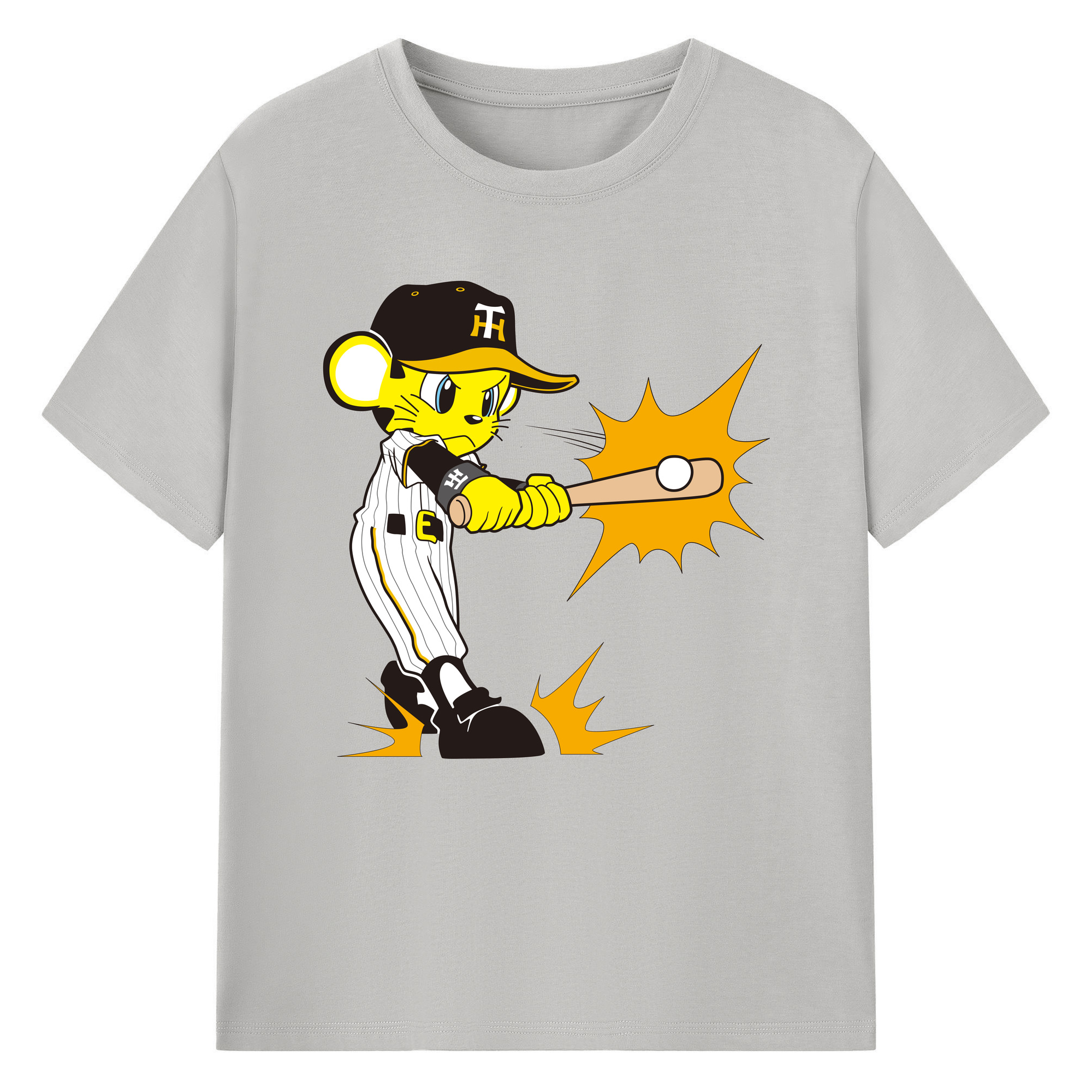 HANSHIN TIGERS MASCOT TO-LUCKY APPLICATION HITTING Logo - 綿100% 半袖Tシャツ ・ フロントプリント ・ 快適 通気性 ・ 日常使い 散歩 スポーツ用