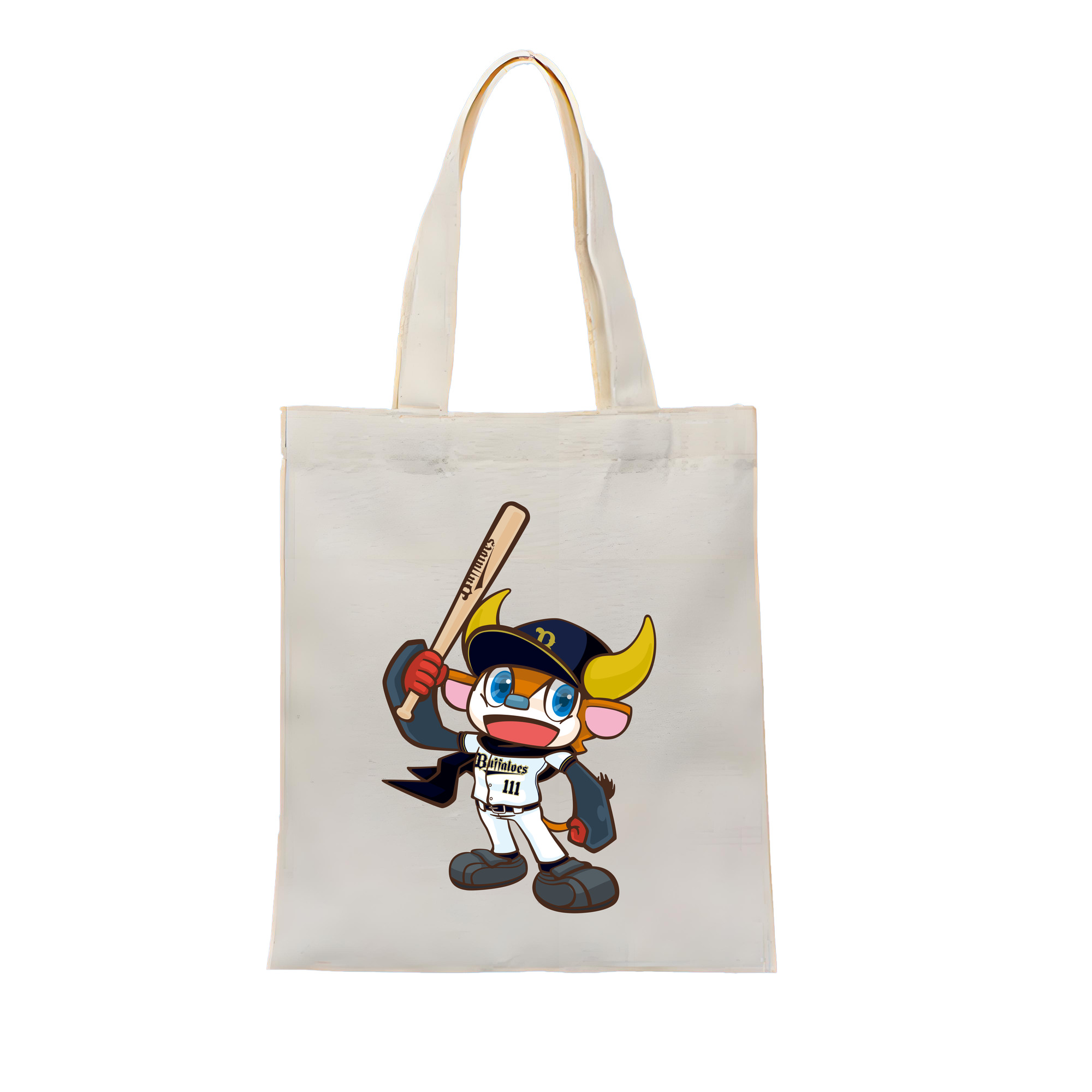 ORIX BUFFALOES MASCOT BUFFALO BULL APPLICATION BAT SYMBOL 2019 - 縦型キャンバス手提げバッグ(トートバッグ) ・ キャンバス素材 ・ ショッピング用 ・ 軽量 丈夫 お手入れ簡単
