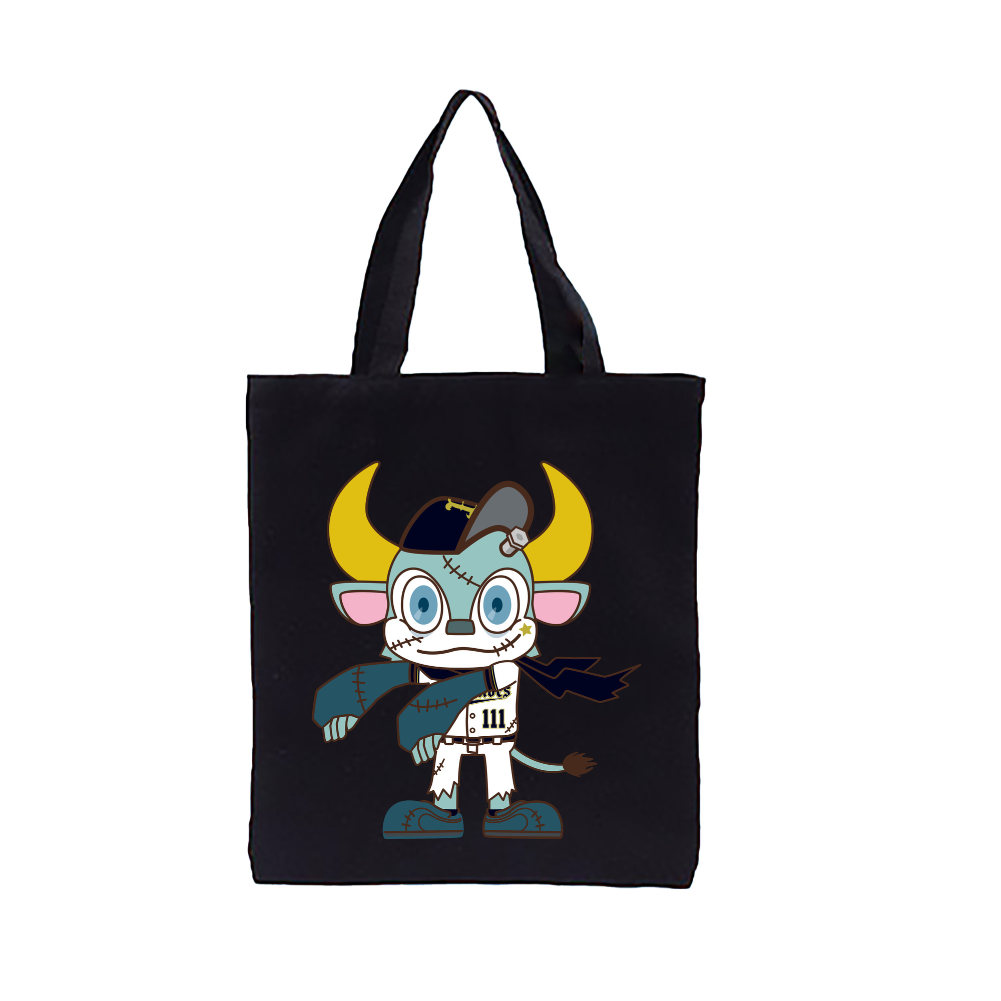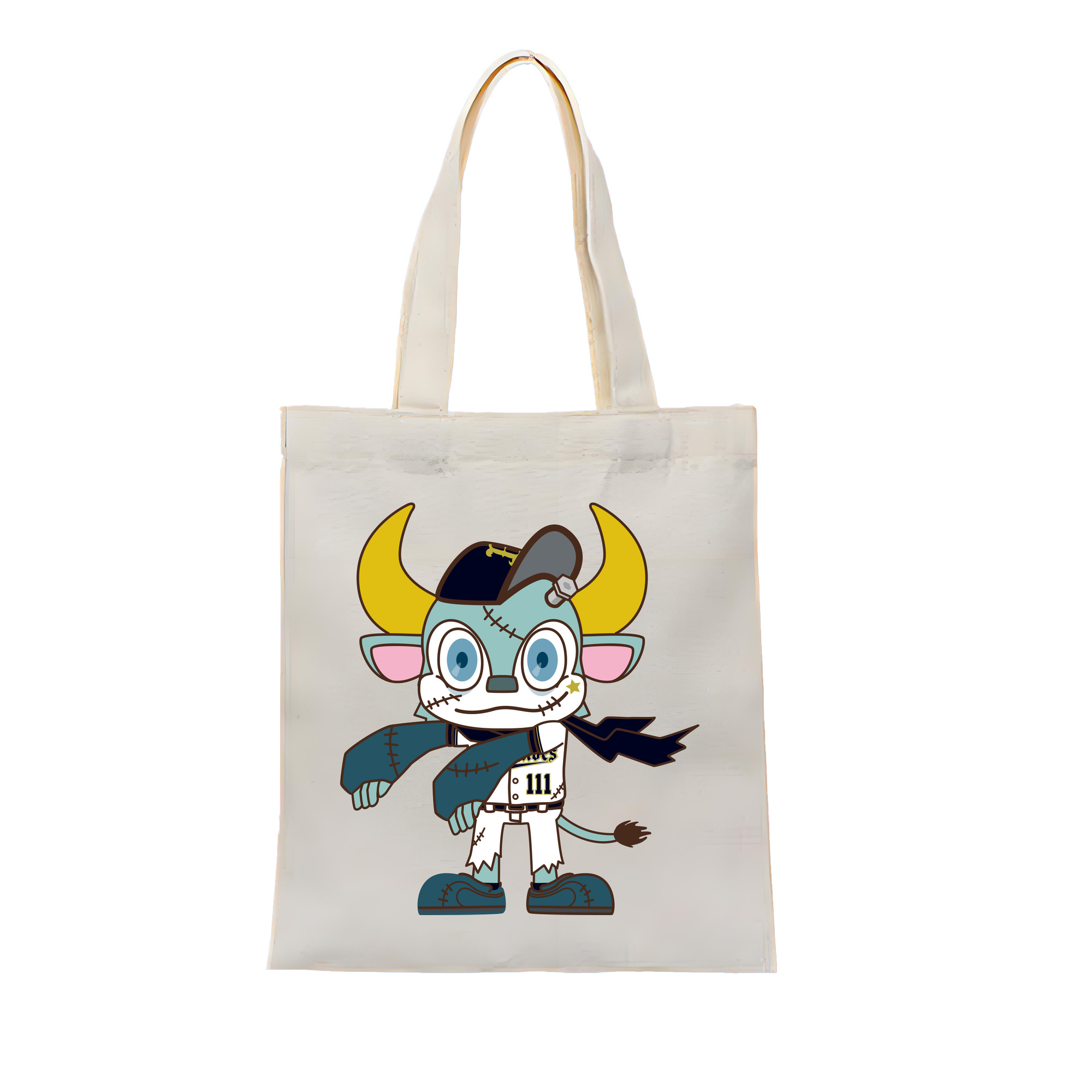 ORIX BUFFALOES MASCOT BUFFALO BULL APPLICATION HALLOWEEN Logo - 縦型キャンバス手提げバッグ(トートバッグ) ・ キャンバス素材 ・ ショッピング用 ・ 軽量 丈夫 お手入れ簡単