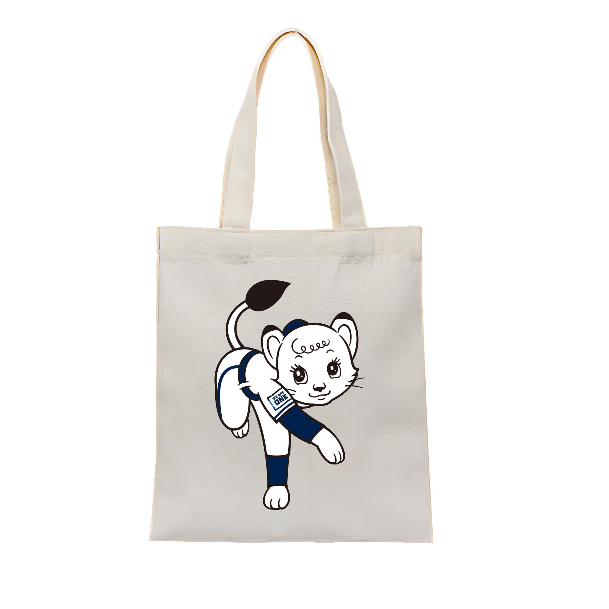 SAITAMA SEIBU LIONS MASCOT LINA APPLICATION PITCHING WE ARE THE ONE Logo - 縦型キャンバス手提げバッグ(トートバッグ) ・ キャンバス素材 ・ ショッピング用 ・ 軽量 丈夫 お手入れ簡単