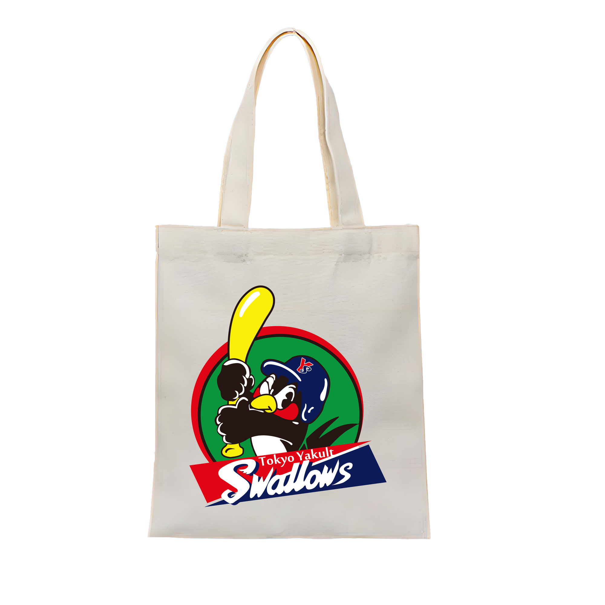 TOKYO YAKULT SWALLOWS EMBLEM APPLICATION BACKGROUND COLOR Logo - 縦型キャンバス手提げバッグ(トートバッグ) ・ キャンバス素材 ・ ショッピング用 ・ 軽量 丈夫 お手入れ簡単