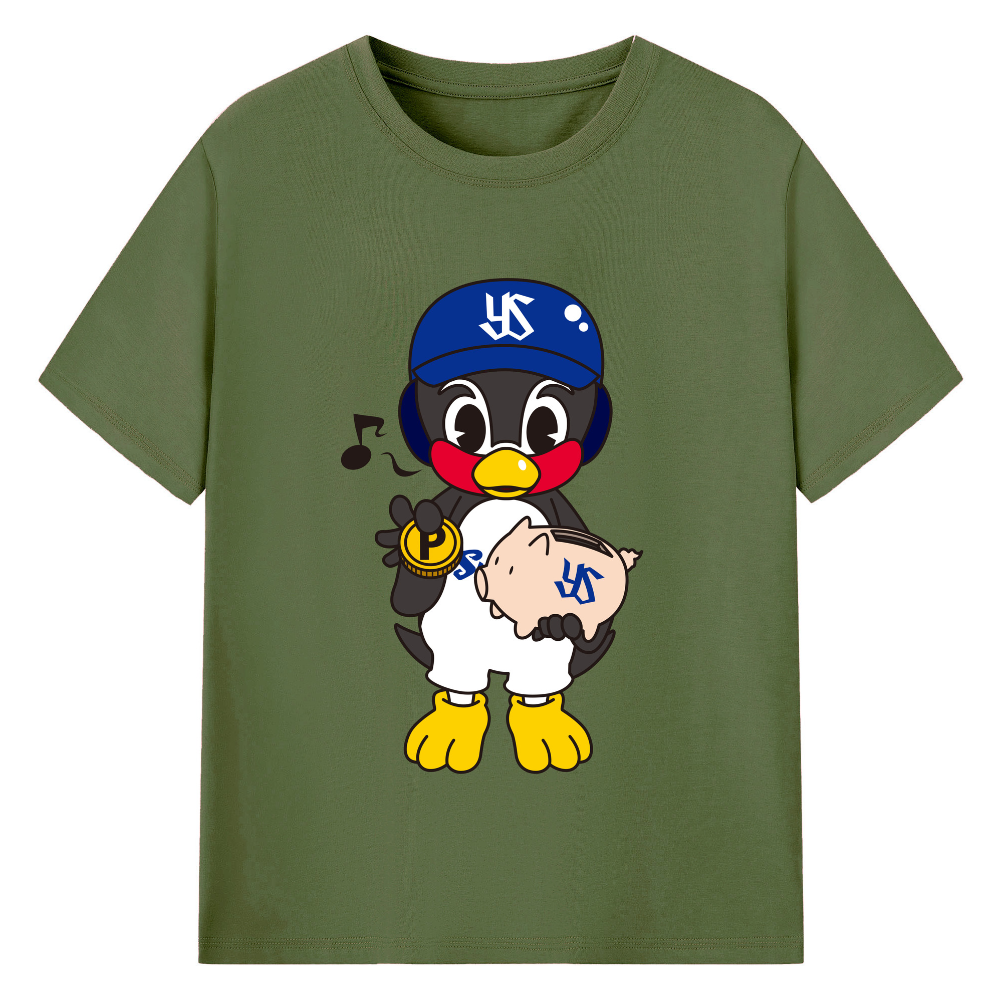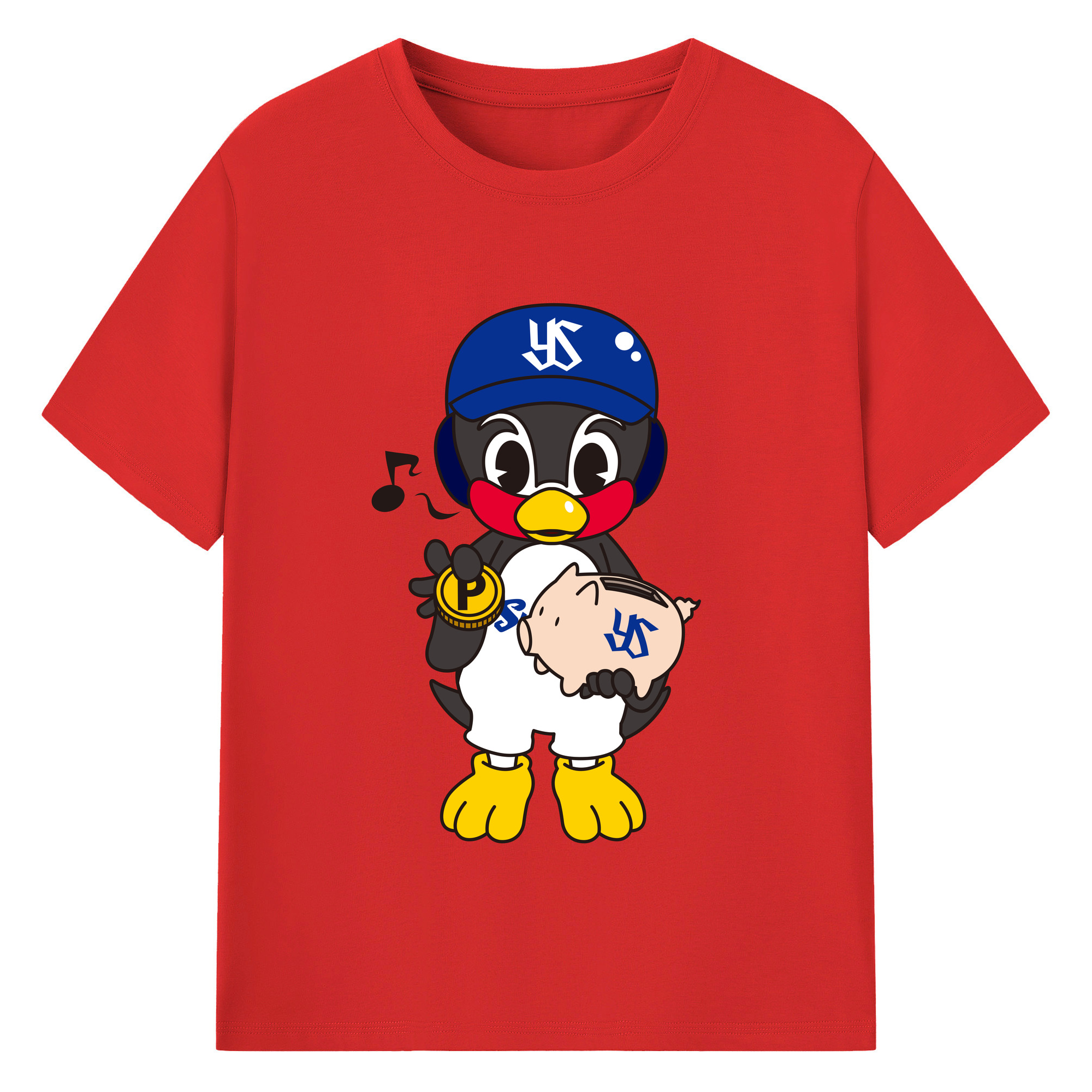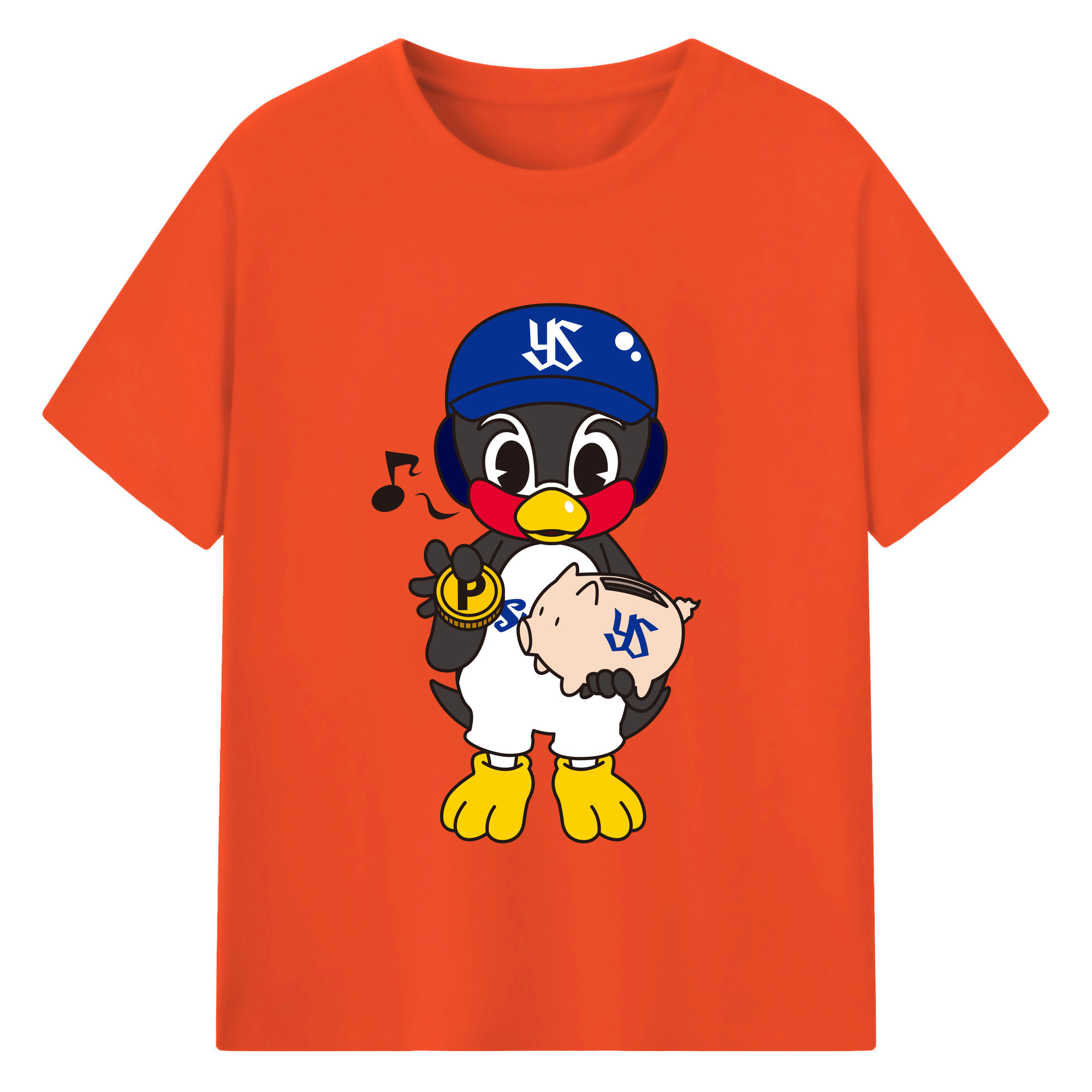 TOKYO YAKULT SWALLOWS MASCOT ENTARO EMBLEM Logo - 綿100% 半袖Tシャツ ・ フロントプリント ・ 快適 通気性 ・ 日常使い 散歩 スポーツ用