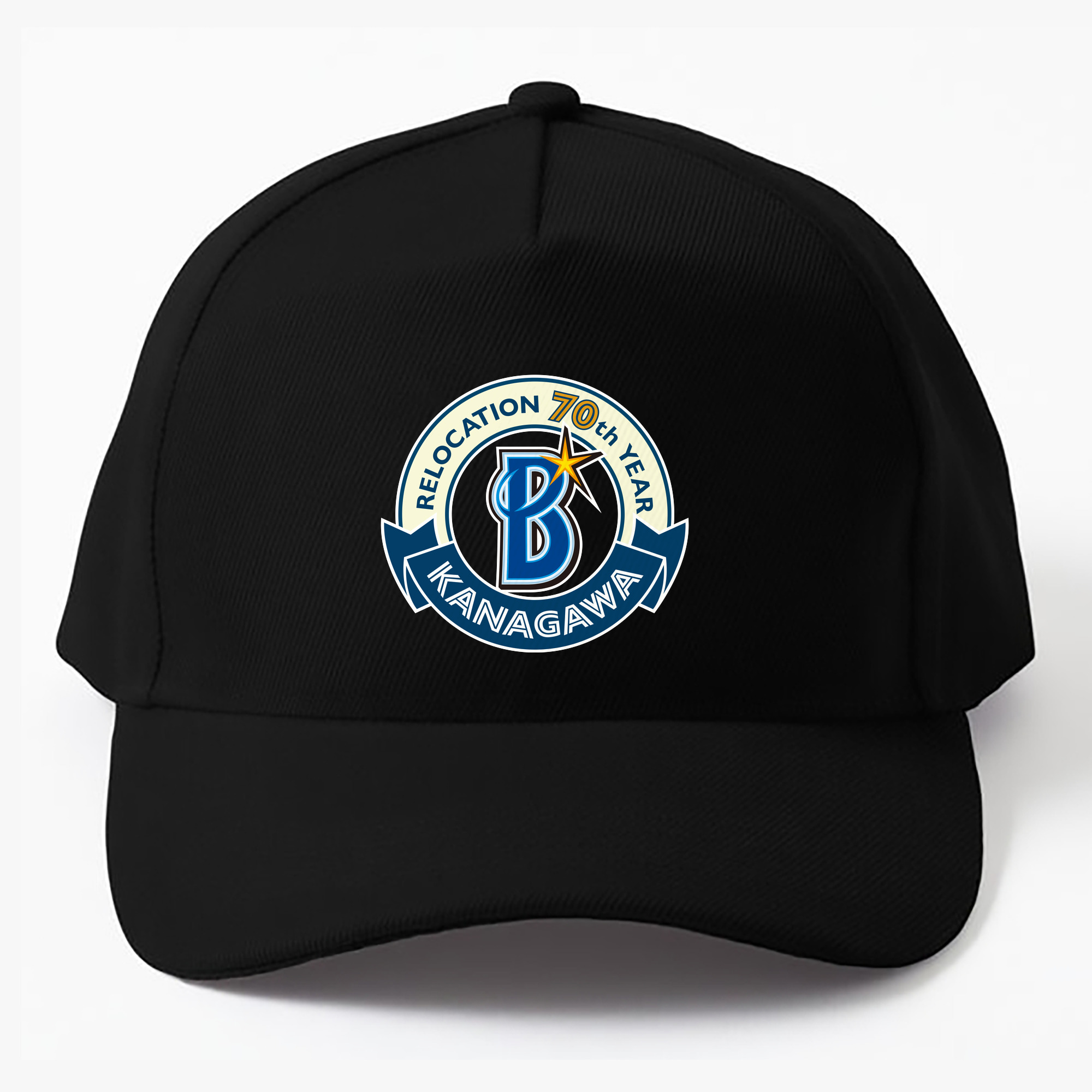YOKOHAMA DeNA BAYSTARS KANAGAWA RELOCATION 70TH YEAR EMBLEM APPLICATION BACKGROUND Logo - ベースボールキャップ ・ 綿100% ・ 男女兼用 ・ スポーツ 帽子 ・ 日常使い 散歩 アウトドア 旅行用
