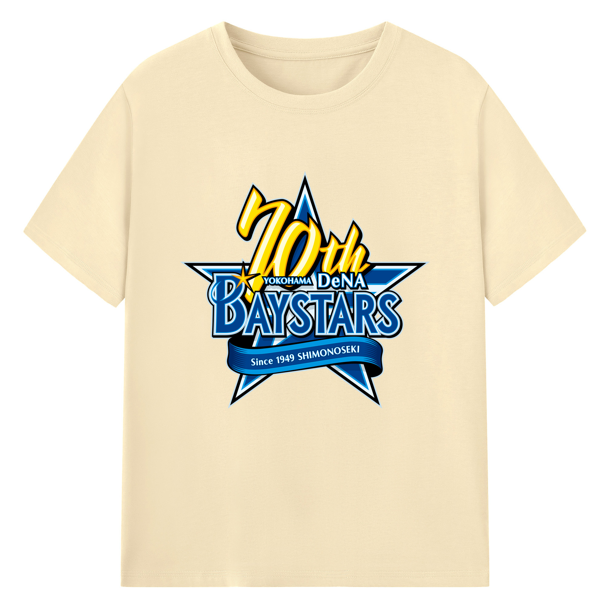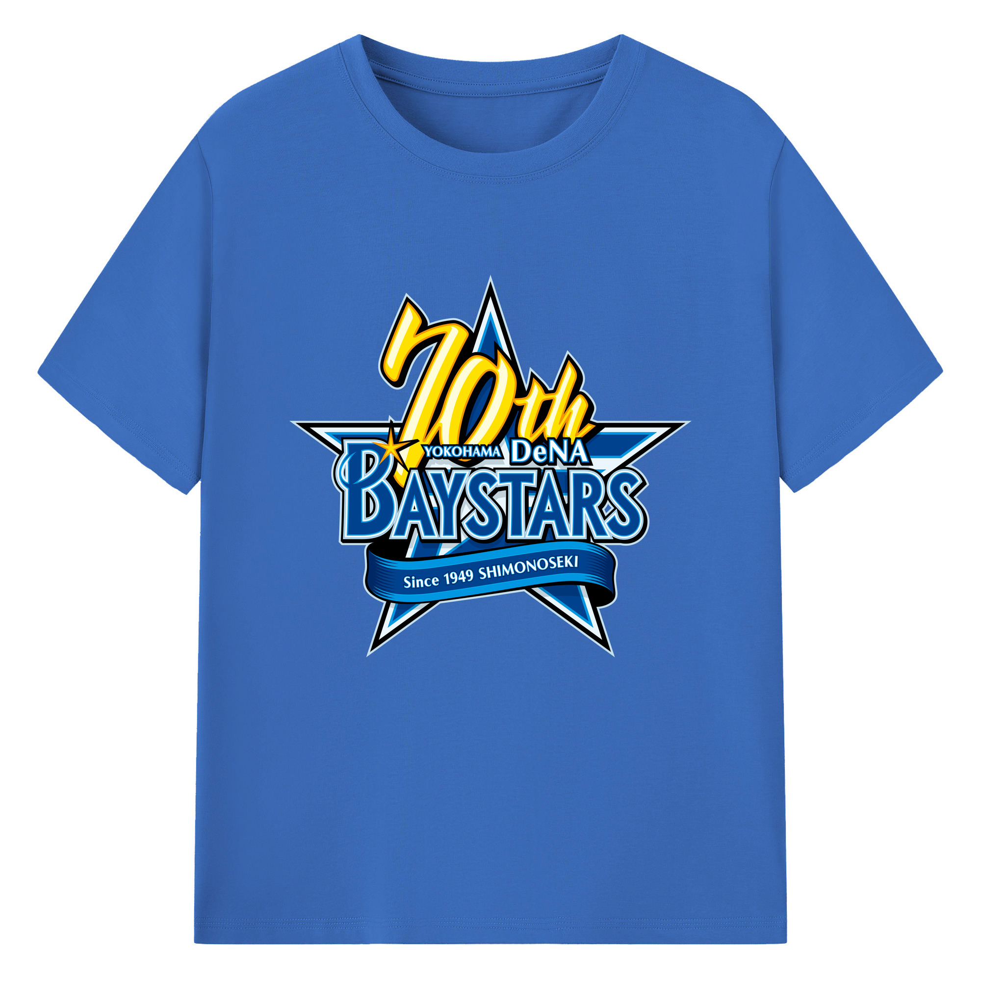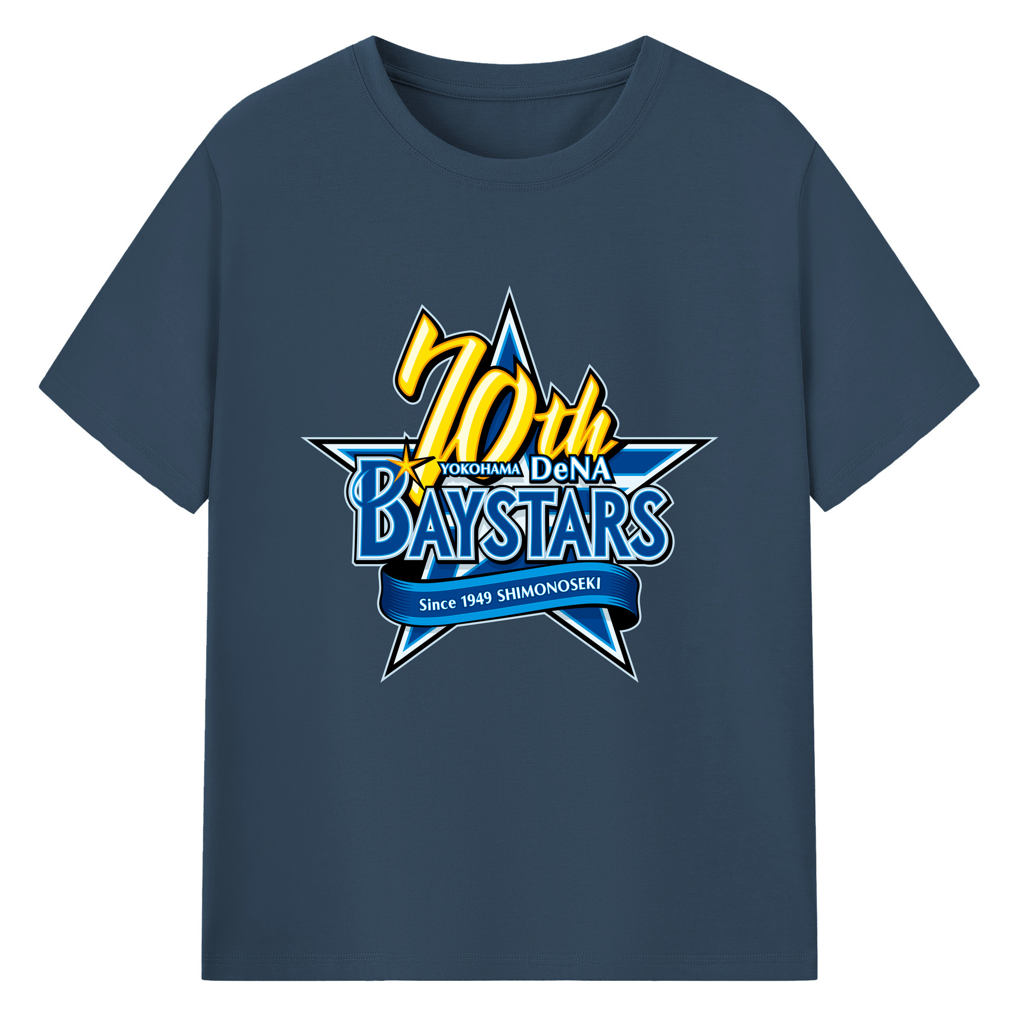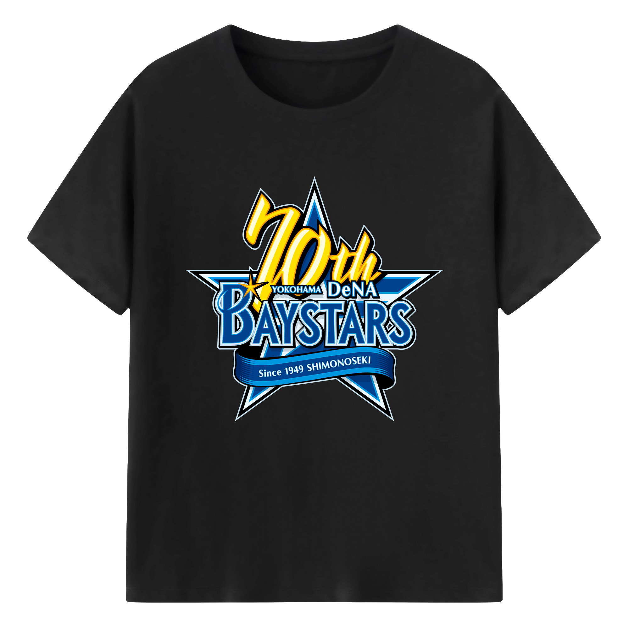 YOKOHAMA DeNA BAYSTARS 10TH ANNIVERSARY SYMBOL Logo - 綿100% 半袖Tシャツ ・ フロントプリント ・ 快適 通気性 ・ 日常使い 散歩 スポーツ用