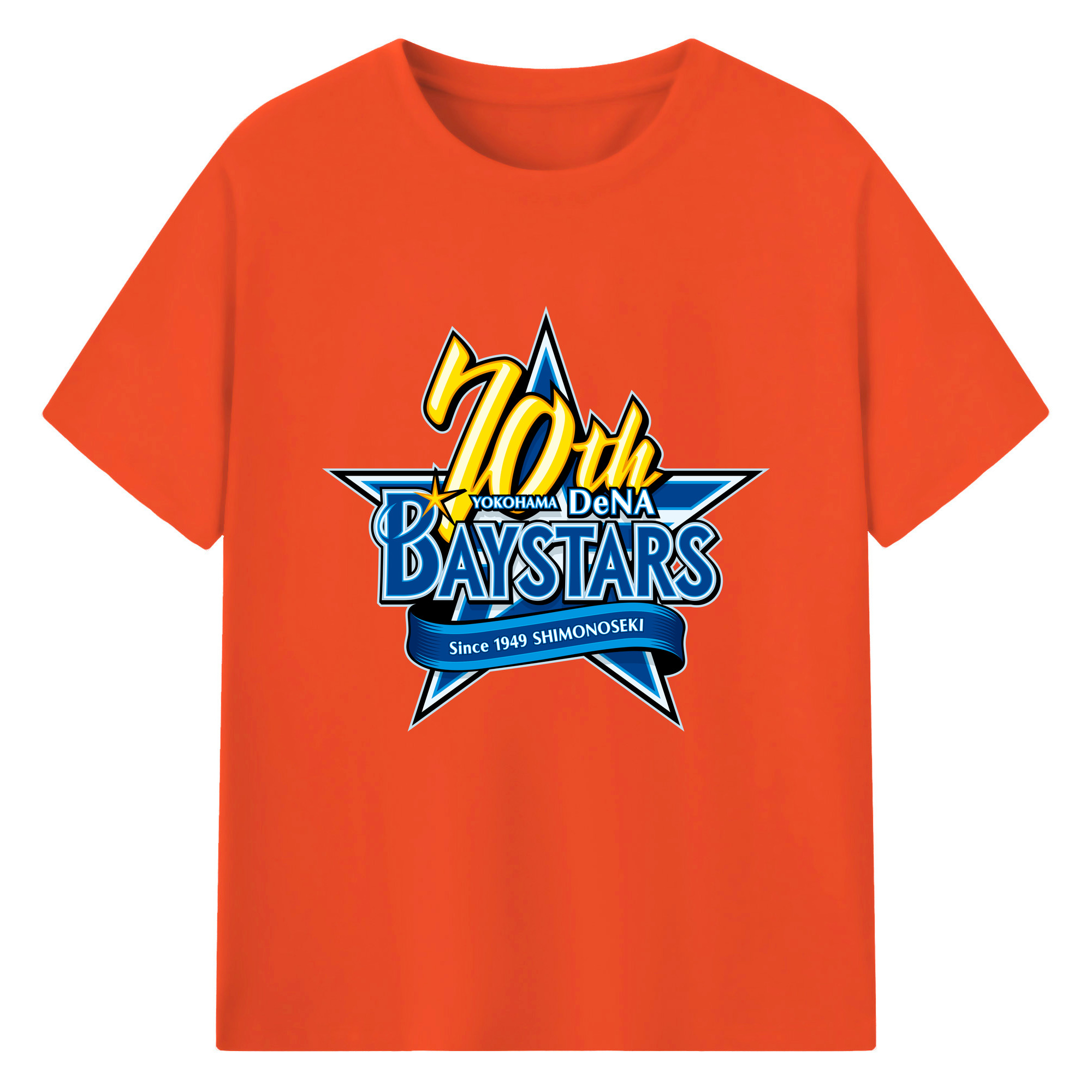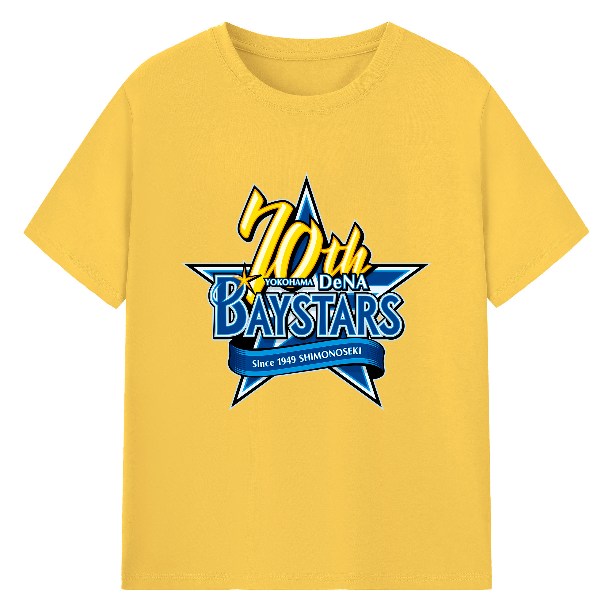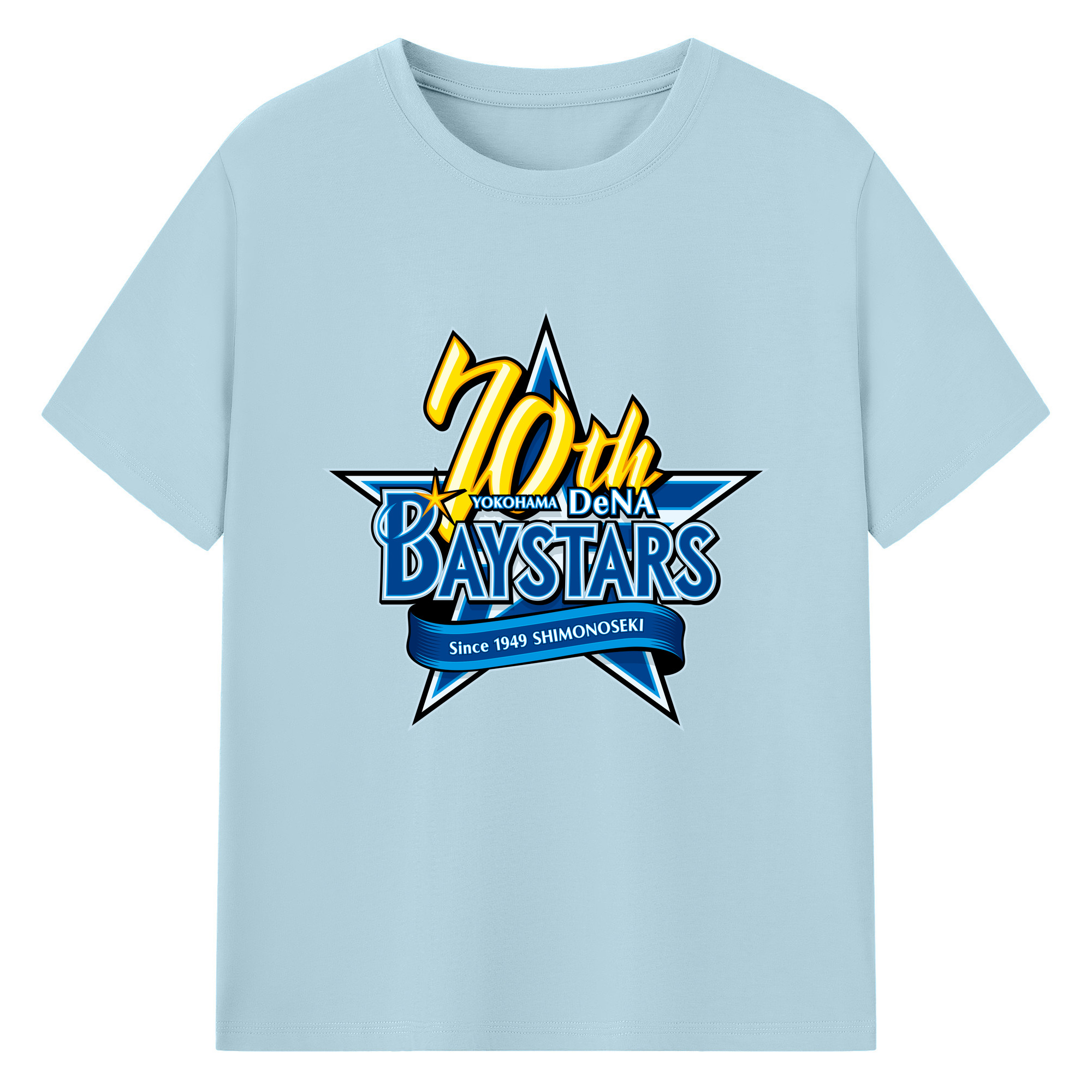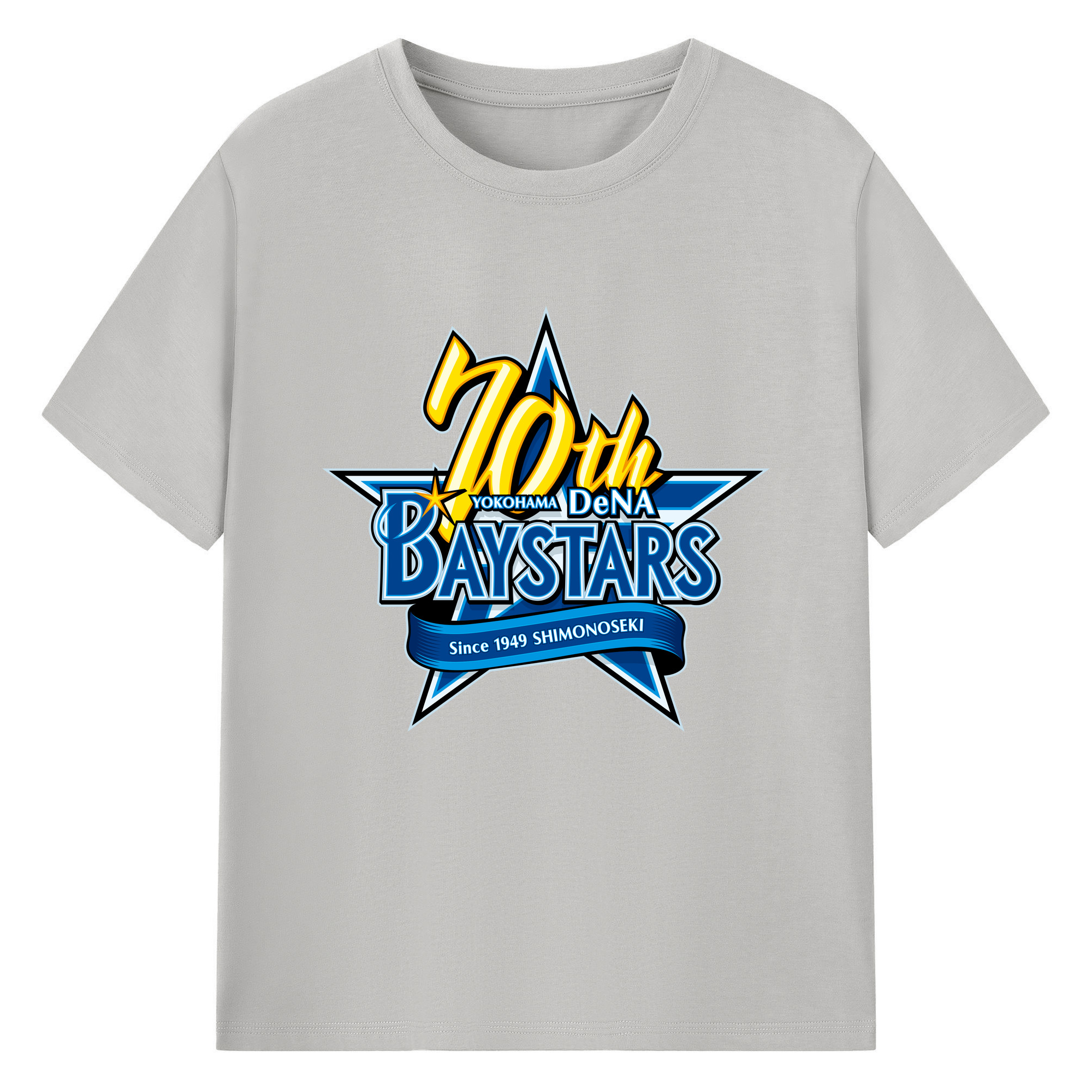 YOKOHAMA DeNA BAYSTARS 10TH ANNIVERSARY SYMBOL Logo - 綿100% 半袖Tシャツ ・ フロントプリント ・ 快適 通気性 ・ 日常使い 散歩 スポーツ用