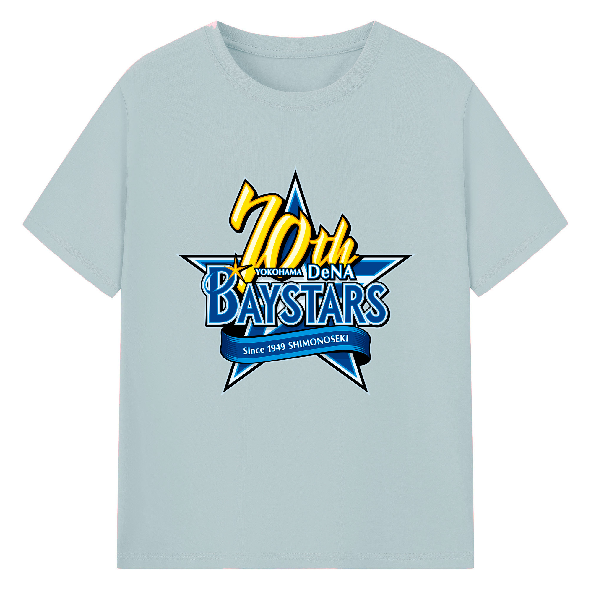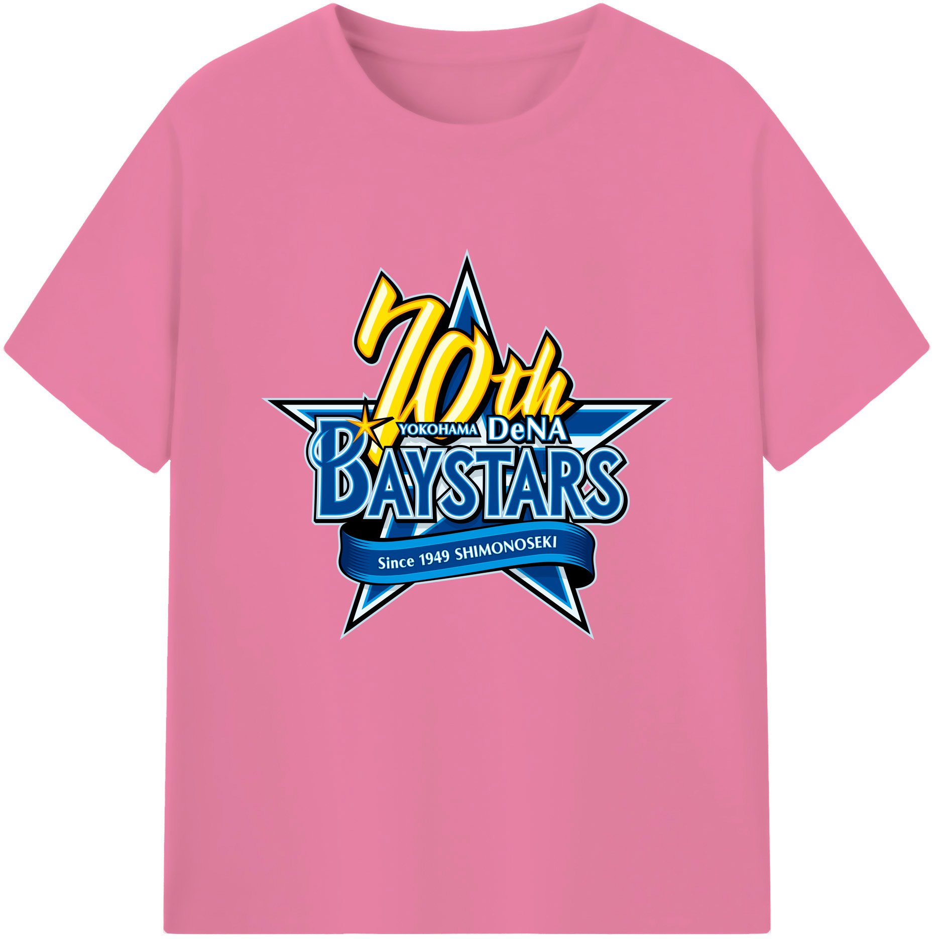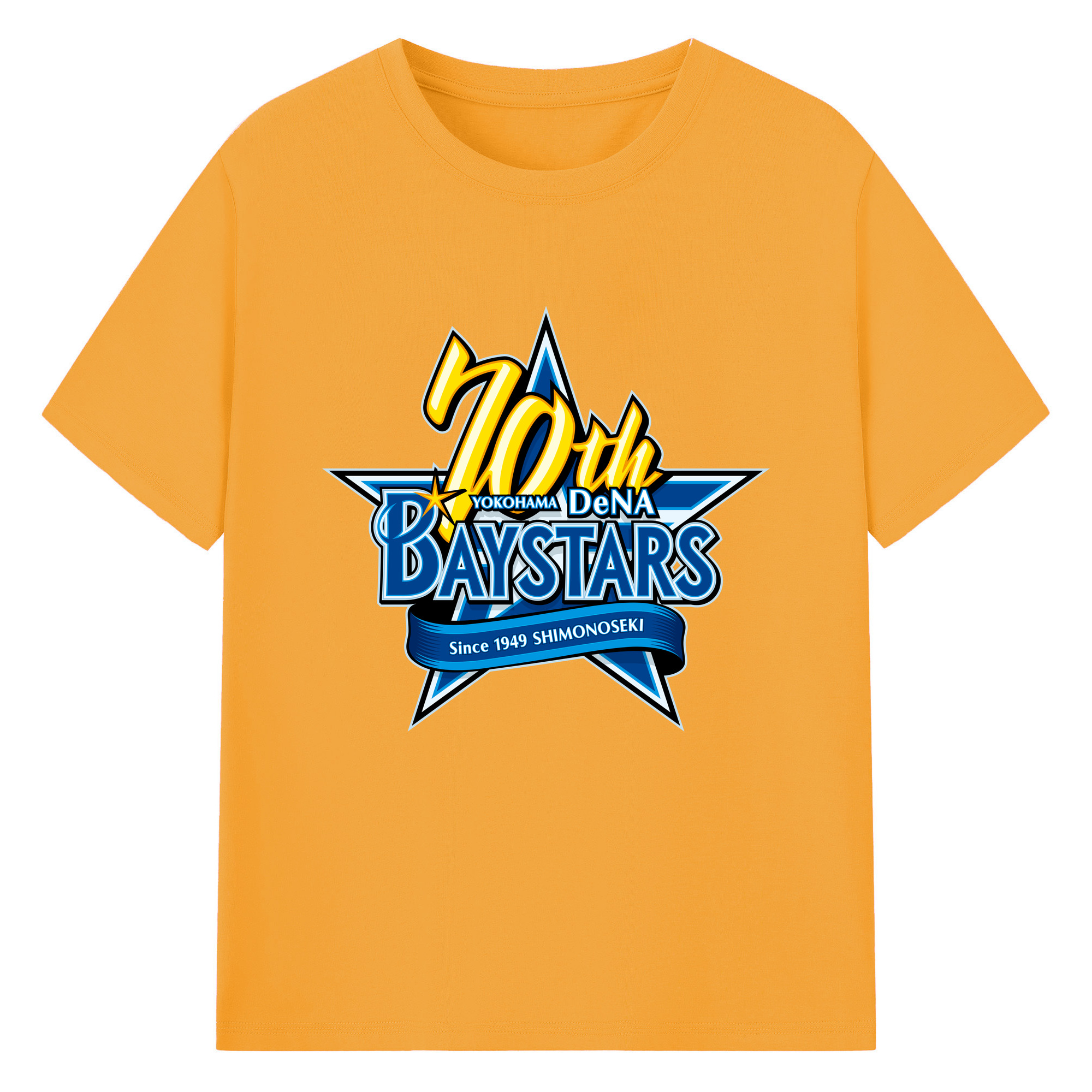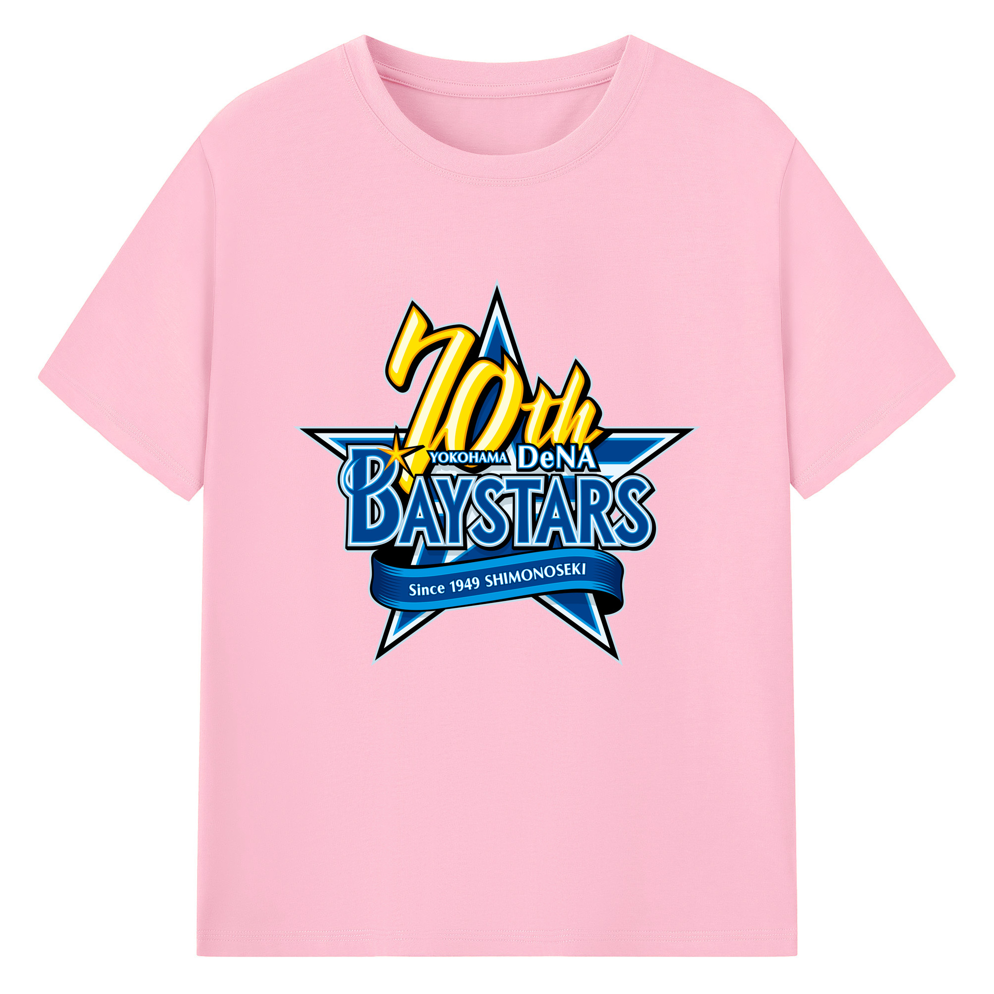 YOKOHAMA DeNA BAYSTARS 10TH ANNIVERSARY SYMBOL Logo - 綿100% 半袖Tシャツ ・ フロントプリント ・ 快適 通気性 ・ 日常使い 散歩 スポーツ用