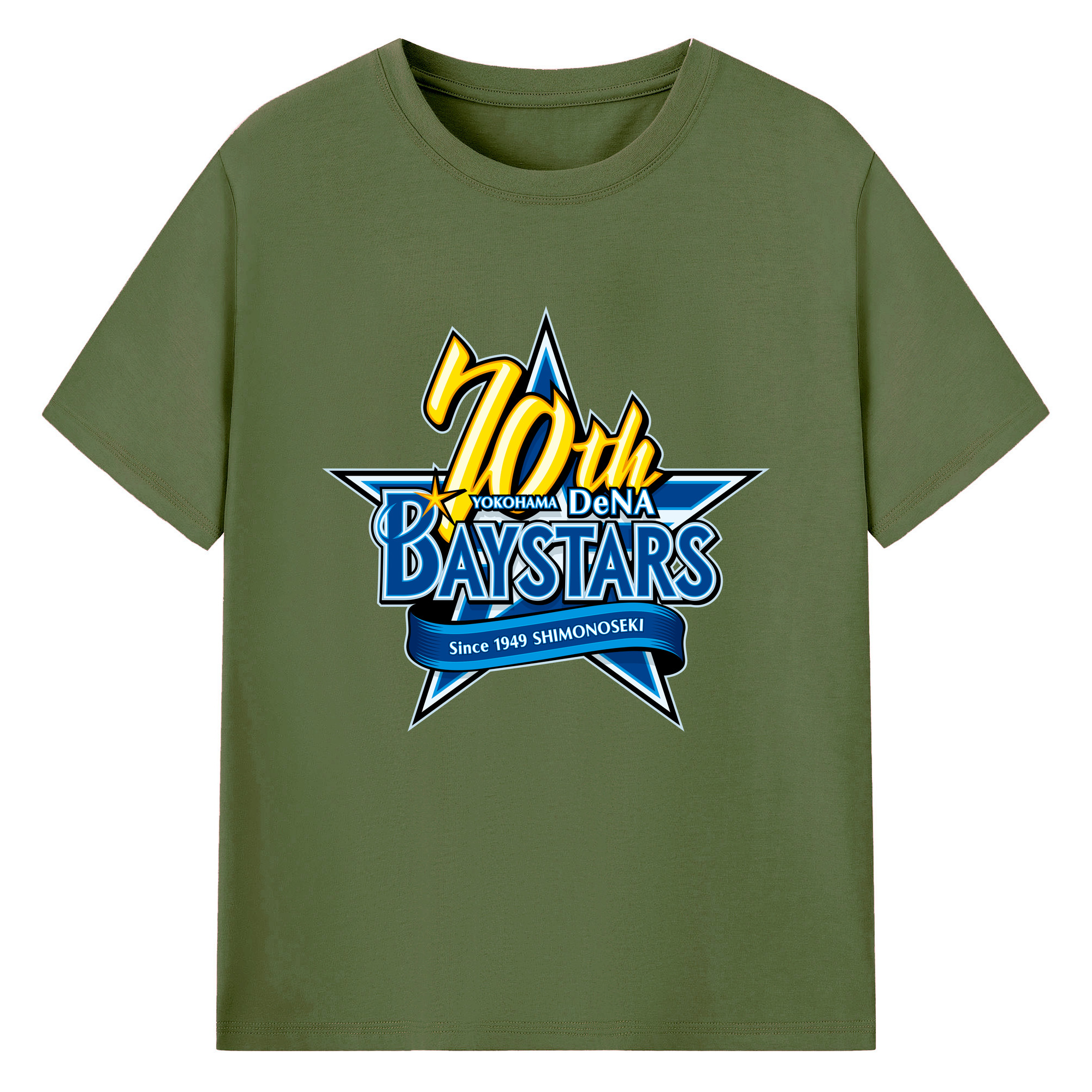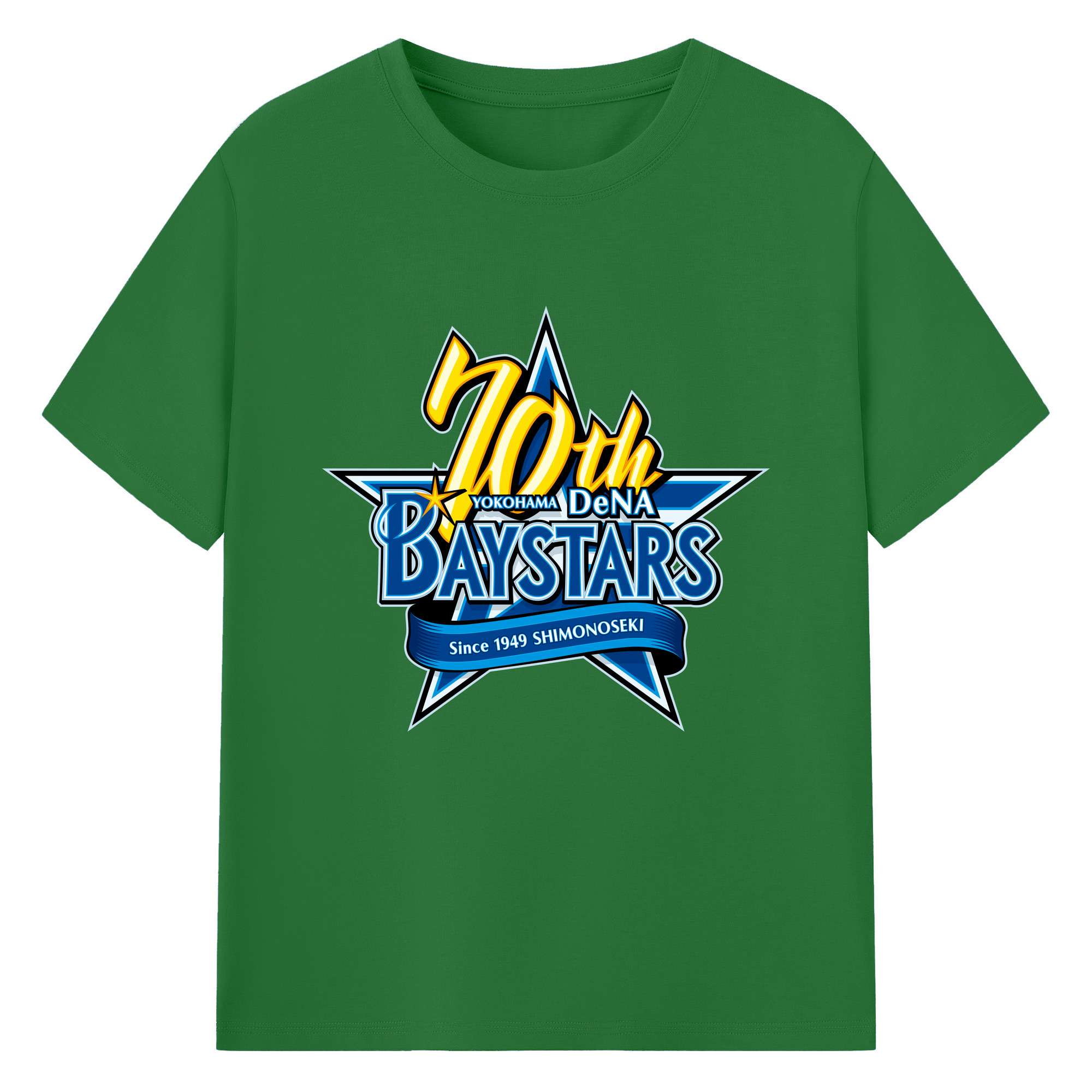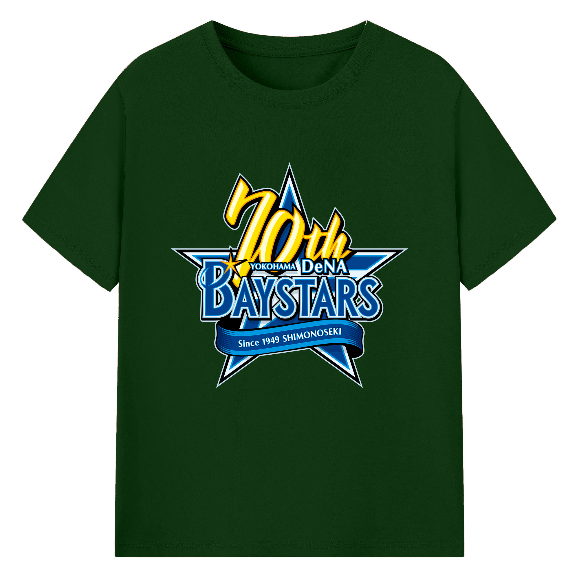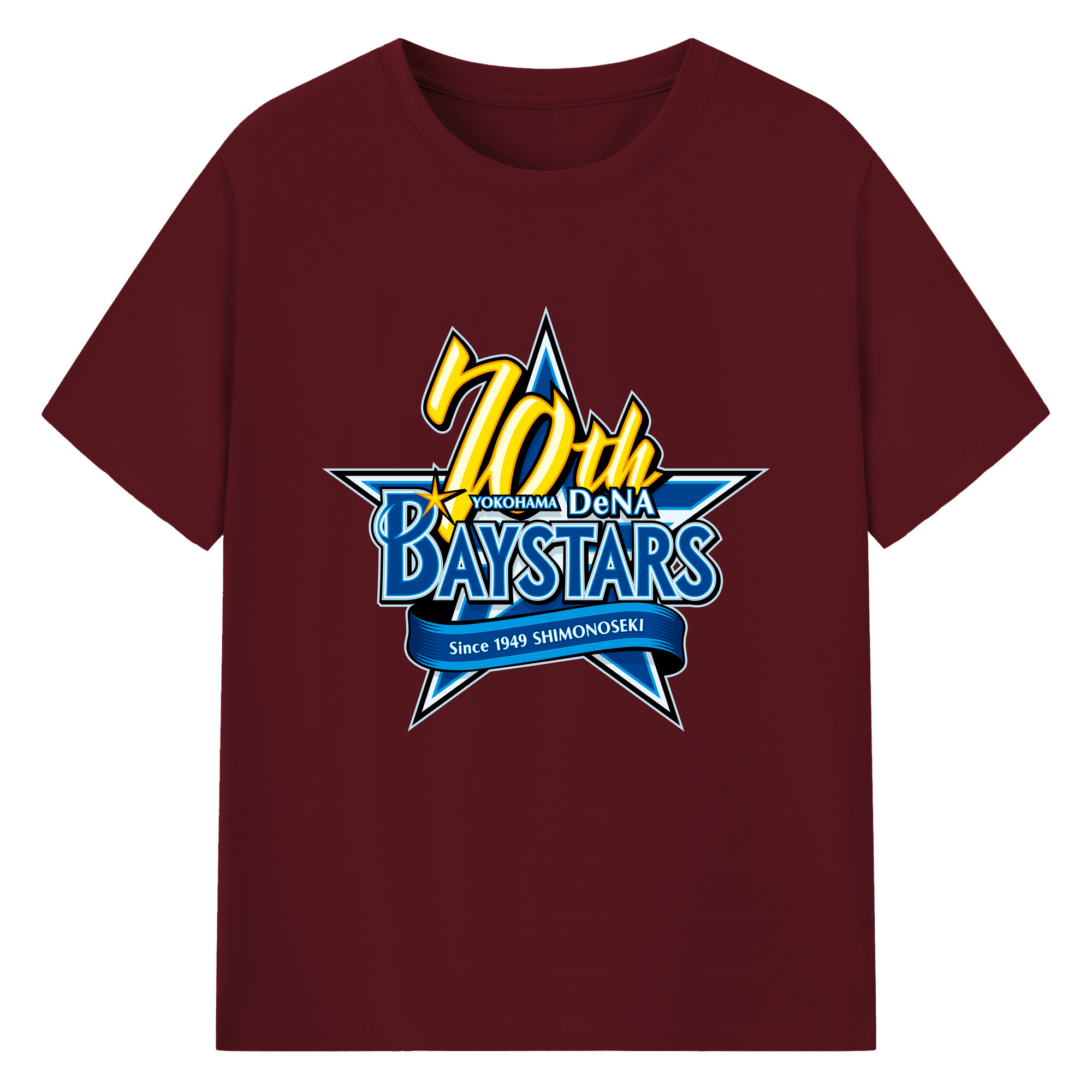 YOKOHAMA DeNA BAYSTARS 10TH ANNIVERSARY SYMBOL Logo - 綿100% 半袖Tシャツ ・ フロントプリント ・ 快適 通気性 ・ 日常使い 散歩 スポーツ用